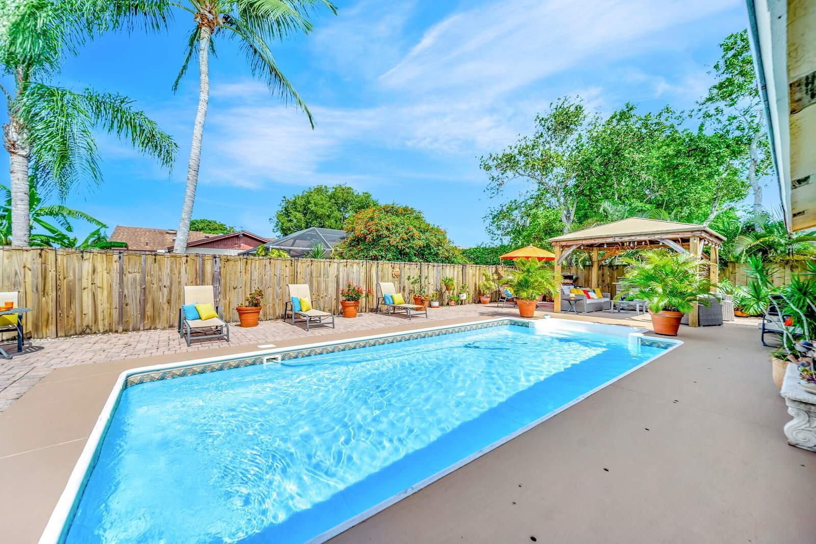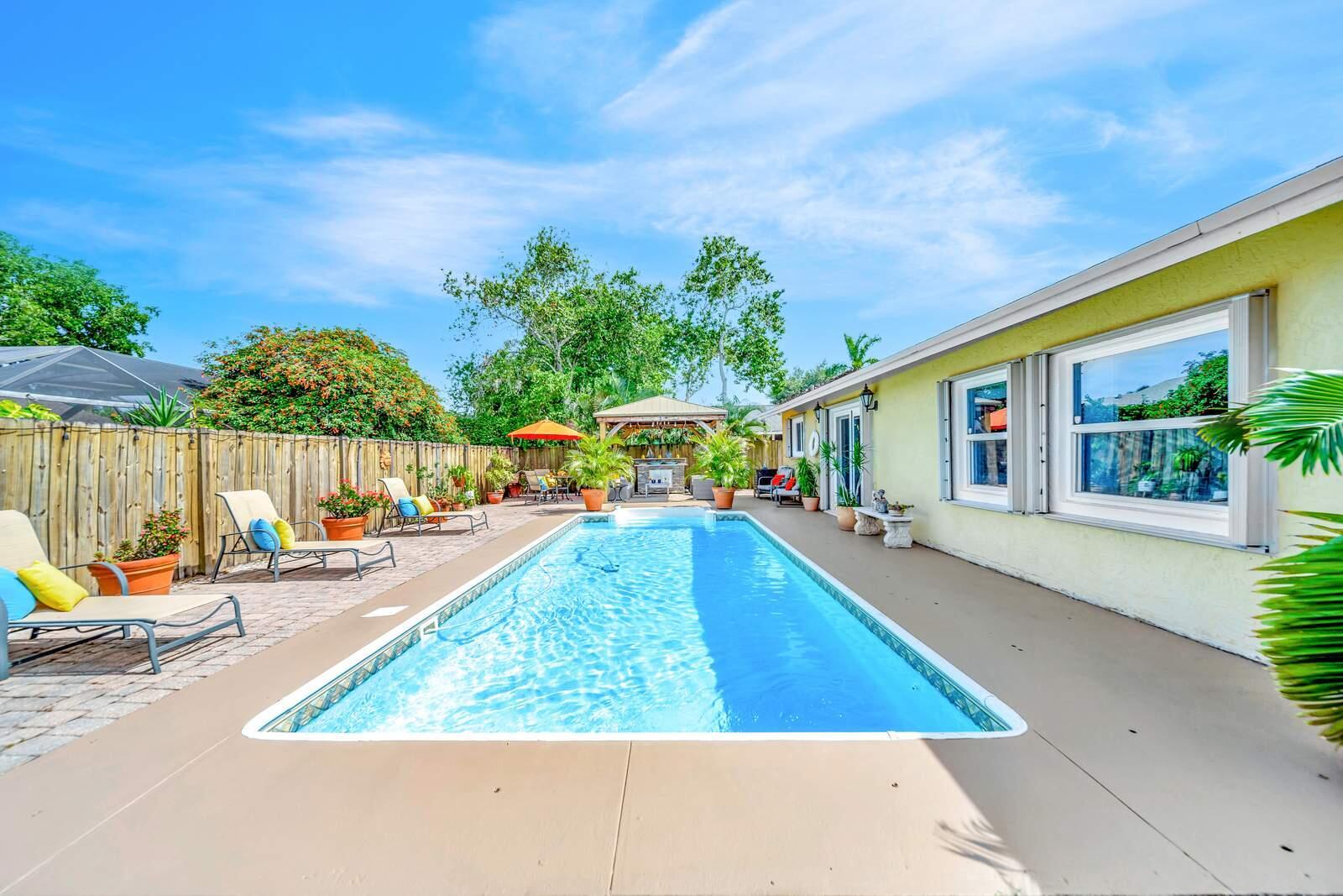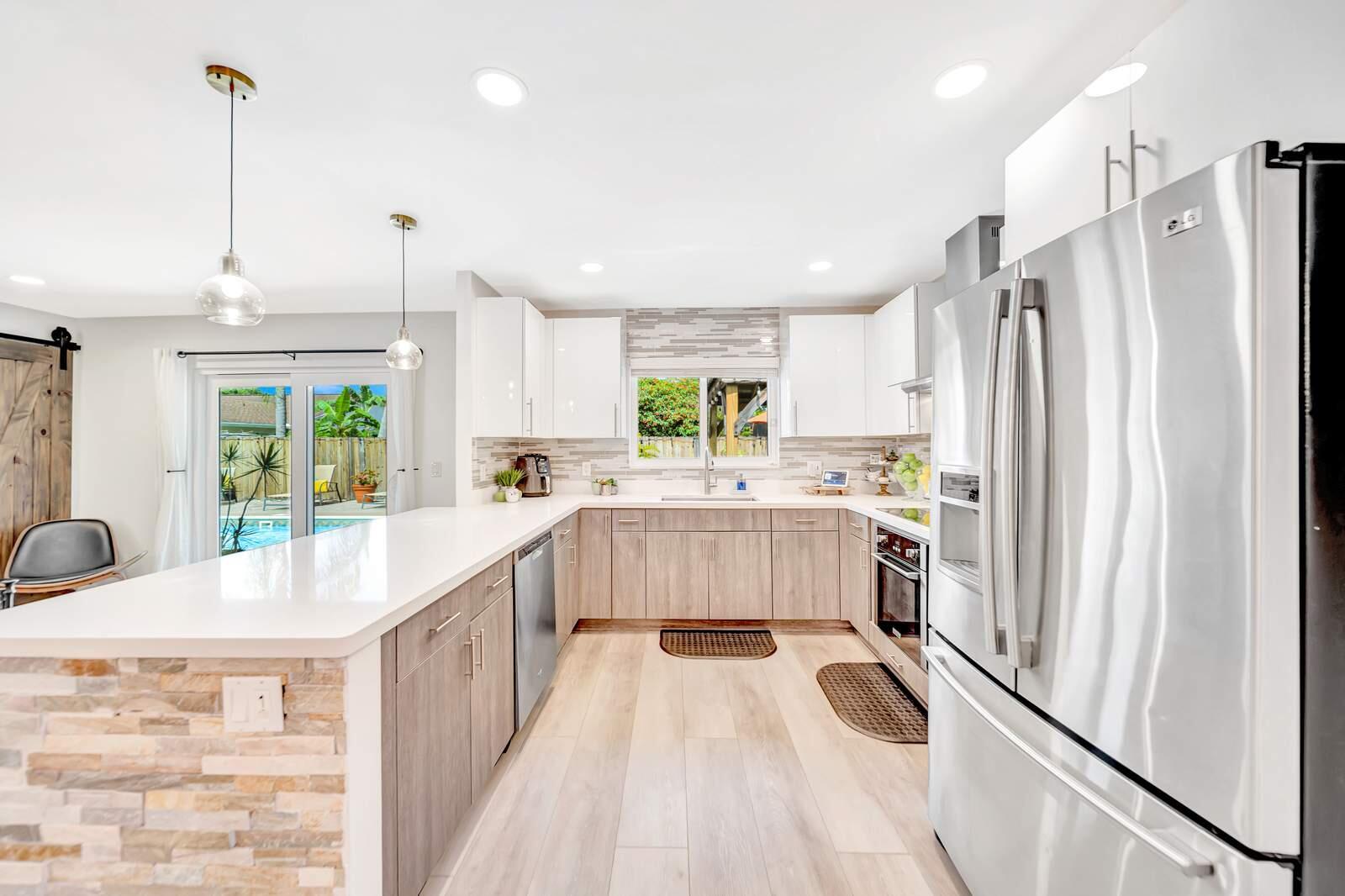 WOW! Super Spacious Single Family Home Features 3 Bedrooms, 2 Bathrooms, a 2 Car Garage, Huge Sparkling POOL and amazing backyard located in Saddlebrook/Spanish Isles! Impact glass windows plus accordion shutters for an extra layer of protection. Roof 2016 . BRAND NEW A/C & WATER HEATER!! In process of being installed this week. This Home Has Been Updated from Floor to Ceiling as You Find from Designers on HGTV! Modern cohesive design with high end luxury finishes throughout including an expansive gourmet kitchen that features quartz counter tops, wall to ceiling glass tile backsplash, stainless appliances including a French door refrigerator, deep stainless farmers sink, sleek solid wood cabinetry with custom built in spice shelves, lazy Susan,