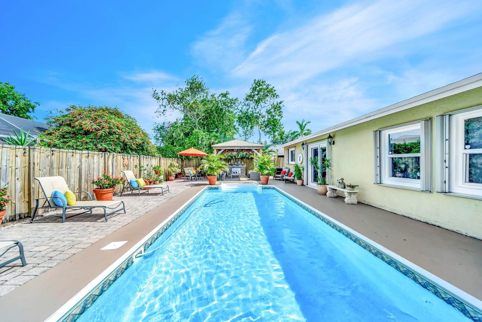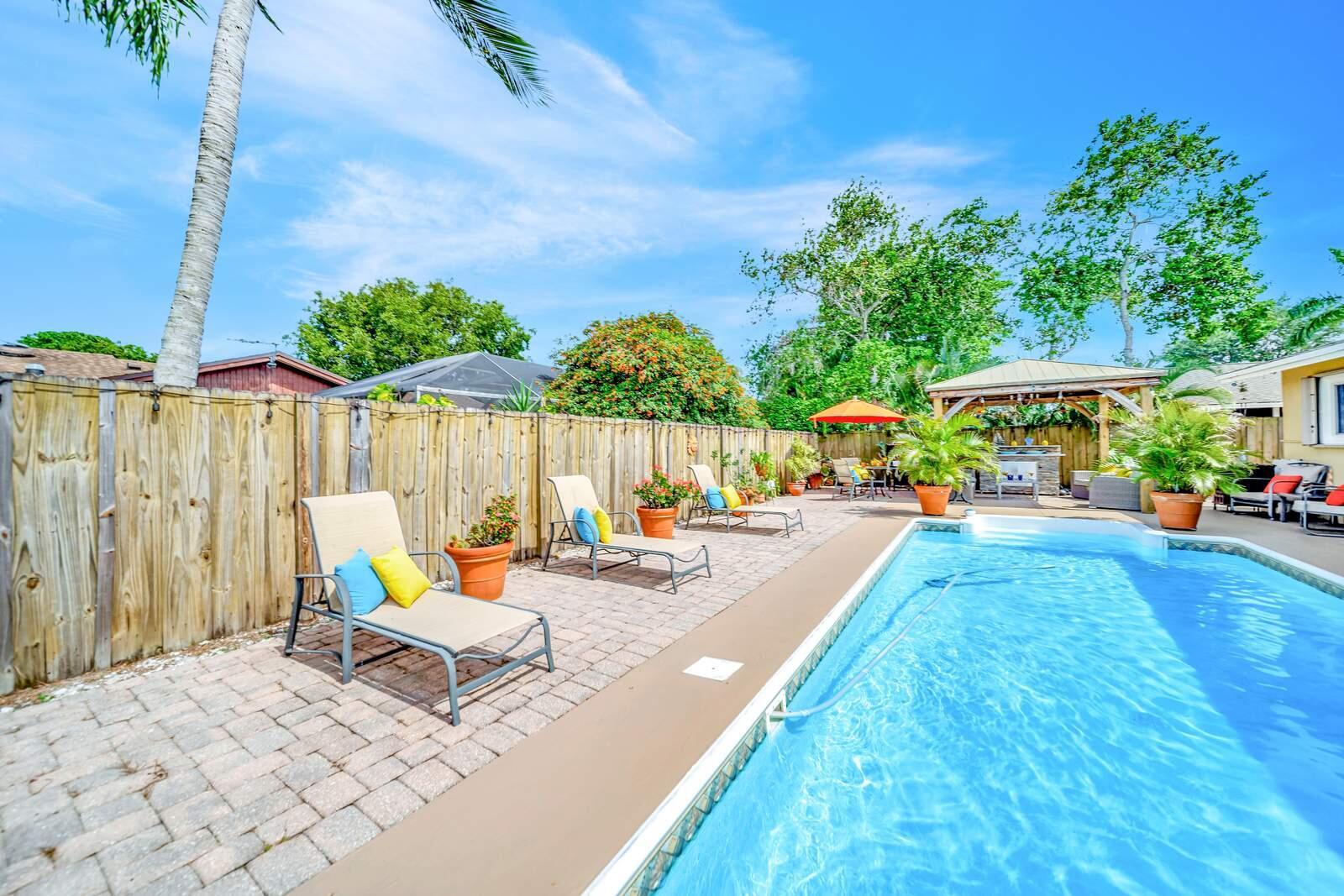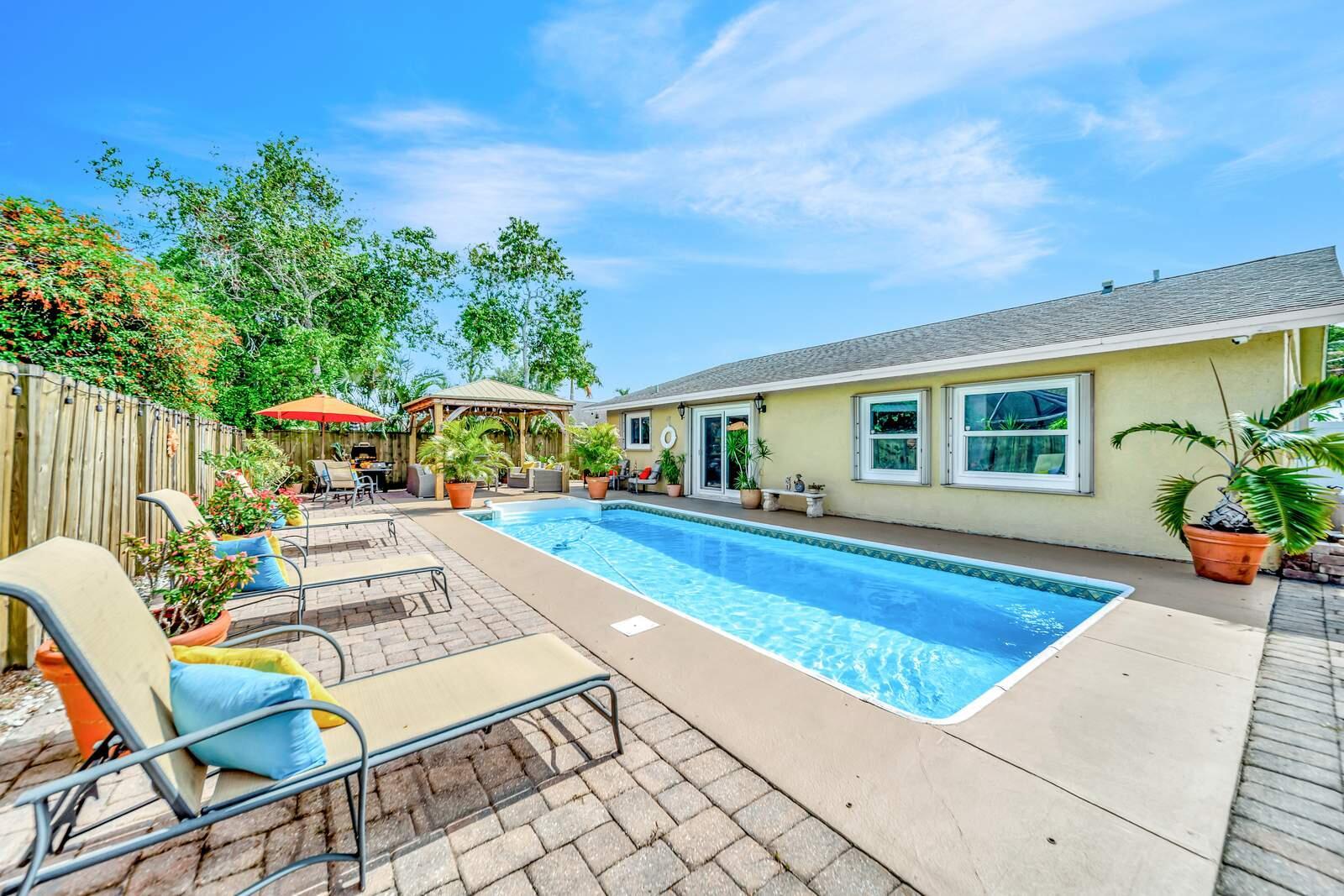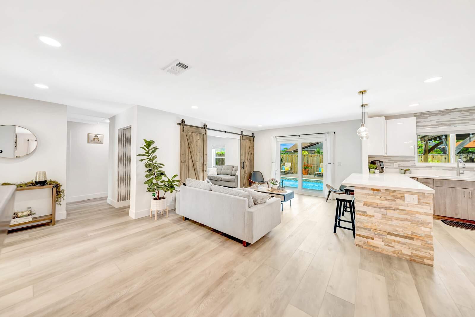 WOW! Super Spacious Single Family Home Features 3 Bedrooms, 2 Bathrooms, a 2 Car Garage, Huge Sparkling POOL and amazing backyard located in Saddlebrook/Spanish Isles! Impact glass windows plus accordion shutters for an extra layer of protection. Roof 2016 . BRAND NEW A/C & WATER HEATER!! In process of being installed this week. This Home Has Been Updated from Floor to Ceiling as You Find from Designers on HGTV! Modern cohesive design with high end luxury finishes throughout including an expansive gourmet kitchen that features quartz counter tops, wall to ceiling glass tile backsplash, stainless appliances including a French door refrigerator, deep stainless farmers sink, sleek solid wood cabinetry with custom built in spice shelves, lazy Susan,