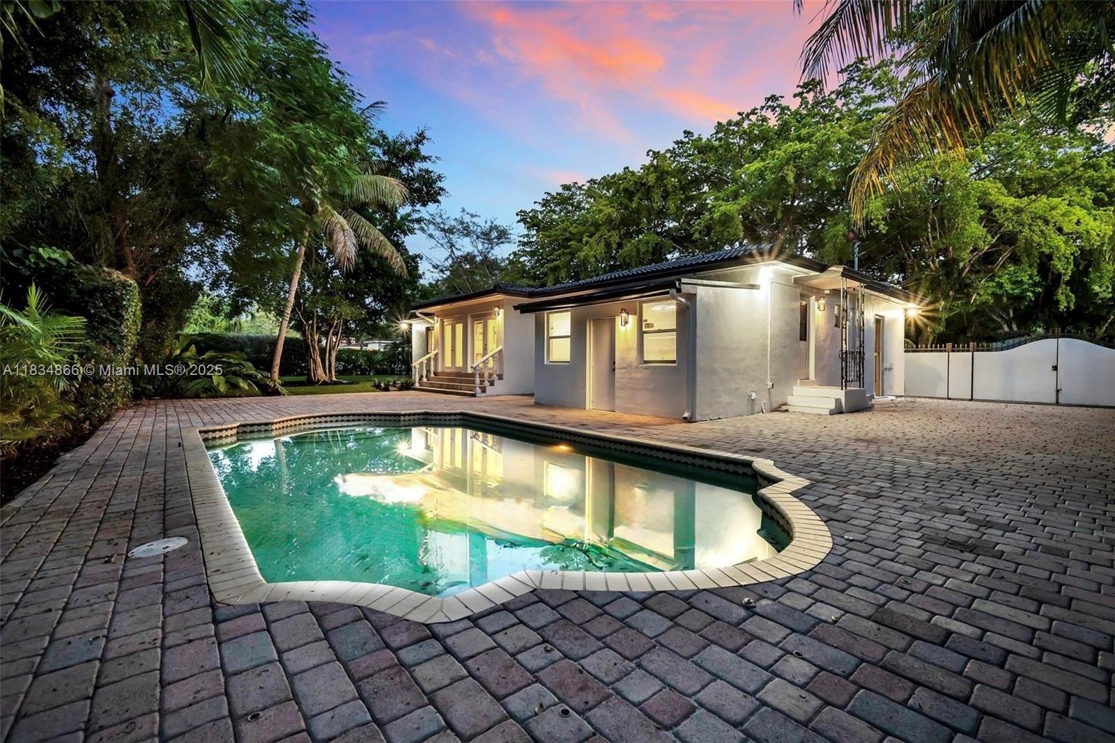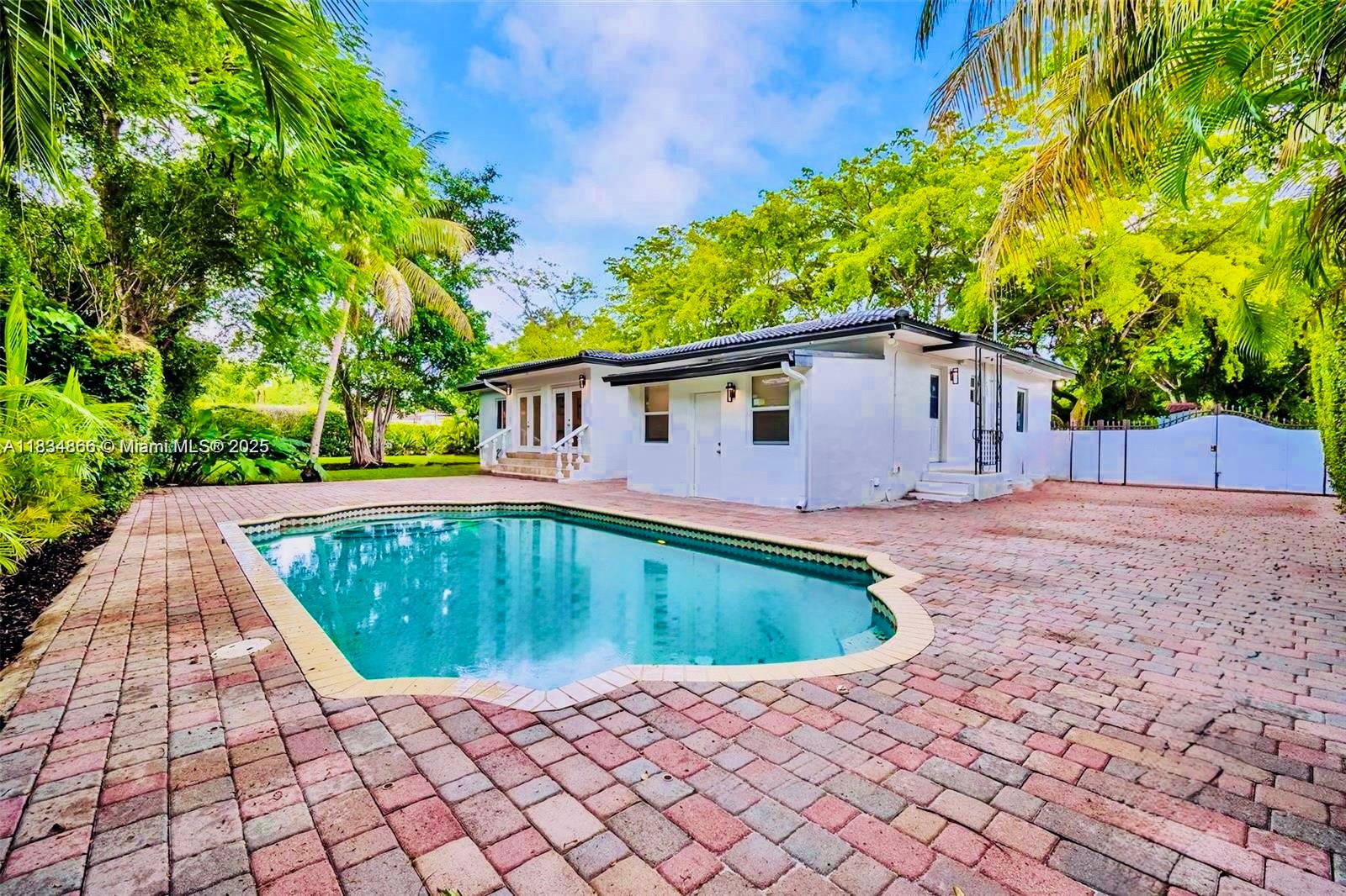 Spanish-Mediterranean home situated on a 12,000 SF double Lot (red road & 33 St), 1 mile from University of Miami & the Biltmore Hotel. This 4 bedroom/2 bath residence+1 Cabana Bath features soaring ceilings & abundant natural light. A brand new Italian style kitchen boasts Calacatta Quartz countertops, sleek cabinetry & new GE-Cafe appliances. Updated PVC plumbing & electric, wood & porcelain flooring throughout, the French doors open to a gated & fenced huge backyard oasis & a pool, surrounded by large oak trees. A semi-circular paver driveway provides ample off-street parking space for up to 8 cars +1 boat. This home has the old elegance & charm of Schenley Park/Coral Gables combined with all the modern upgrades in an unbeatable location. A-rated schools. Excellent income potential.
