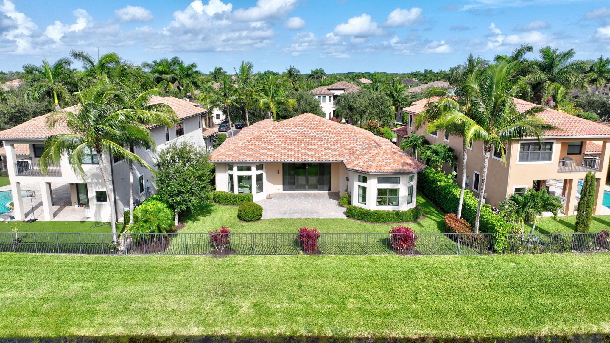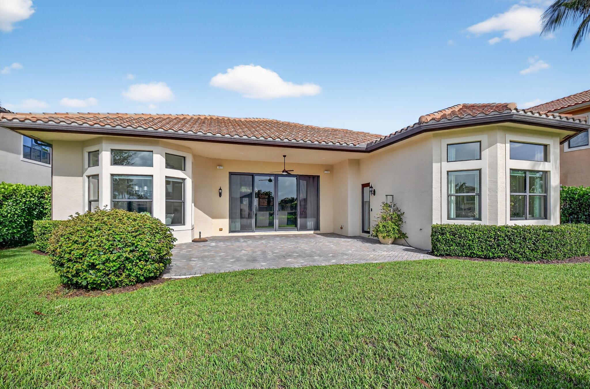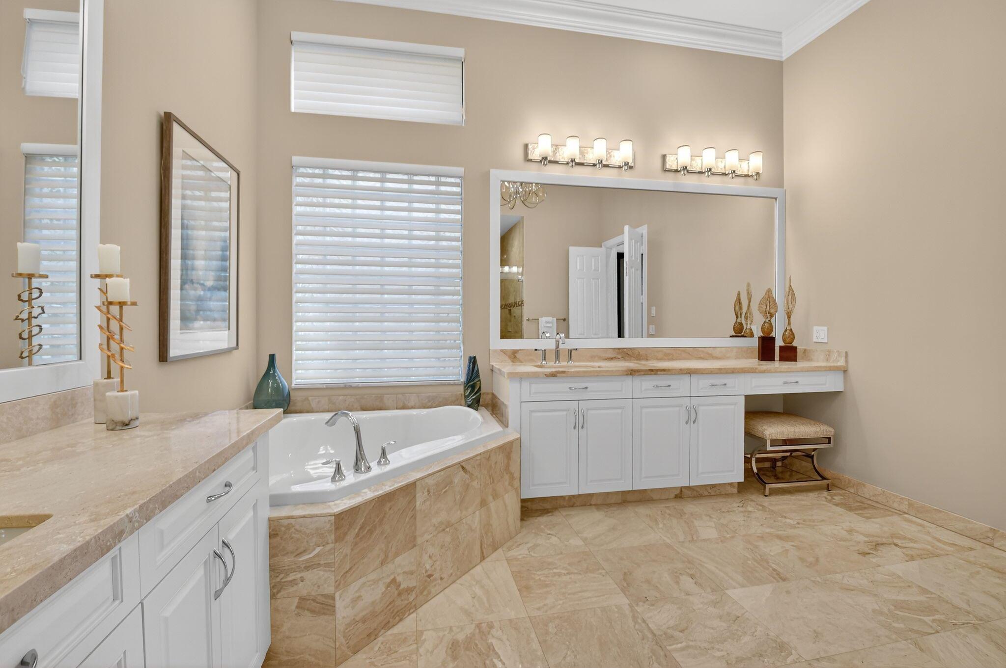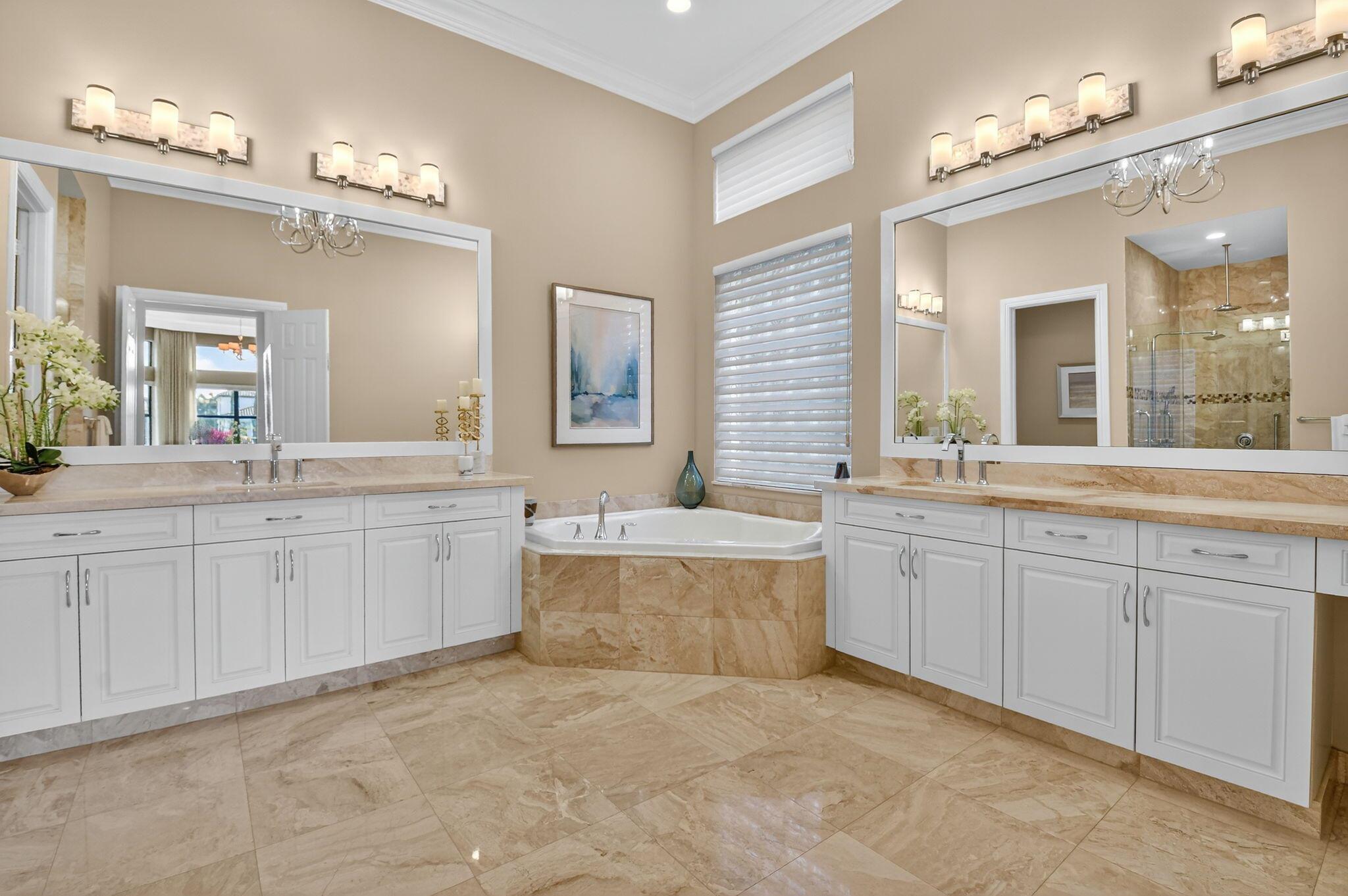 Step into refined luxury in this fully furnished, custom-furnished, designer-upgraded residence located in the prestigious community of The Bridges. Offering 3 bedrooms, 3.5 bathrooms, and a custom clubroom/office, this exceptional home seamlessly blends sophisticated style with modern convenience. A private courtyard entry with etched glass double doors leads to a welcoming foyer, setting the tone for the elegance found throughout. Step into a grand living area featuring gleaming marble floors, impact windows and doors, soaring coffered ceilings, surround sound, and crown molding throughout. The living room is enhanced by a custom wet bar and striking white stone columns, while newly installed oversized sliding glass doors with transom glass panels bathe the space in natural light.