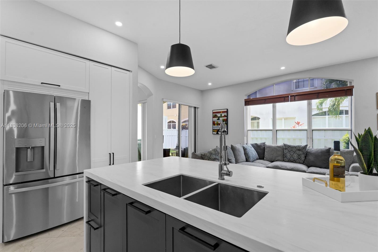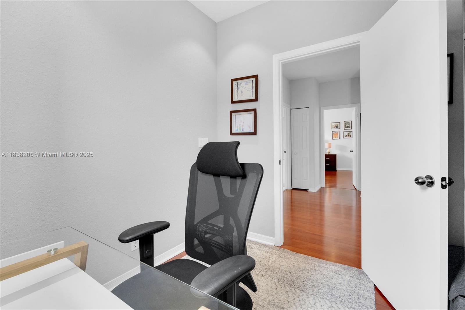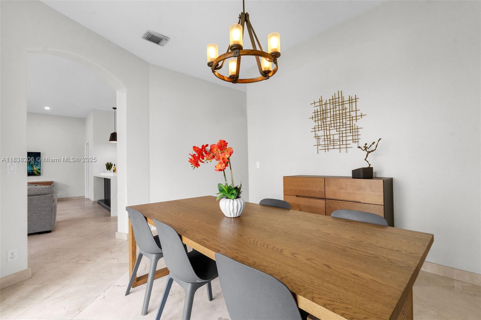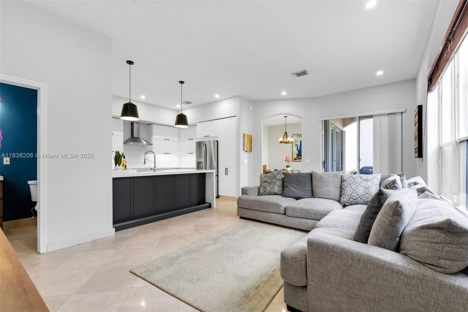 Nestled in the gated community of Maple Ridge, this elegant two-story residence offers 3 expansive bedrooms, 2.5 baths, a dedicated home office, spacious loft, and refined formal living and dining rooms plus a bright and open family room. The gourmet kitchen features a cooking island, sleek stainless steel appliances, and modern cabinetry. Thoughtfully designed with travertine flooring on the main level and laminate flooring upstairs, the home includes a spacious primary suite with dual vanities, soaking tub, and separate shower. Enjoy a covered patio, large fenced-in backyard, and 2-car garage with private driveway. The family orientated gated community features a pool and playground. Ideally situated just minutes from the expressway; perfectly positioned between Miami and Ft Lauderdale.