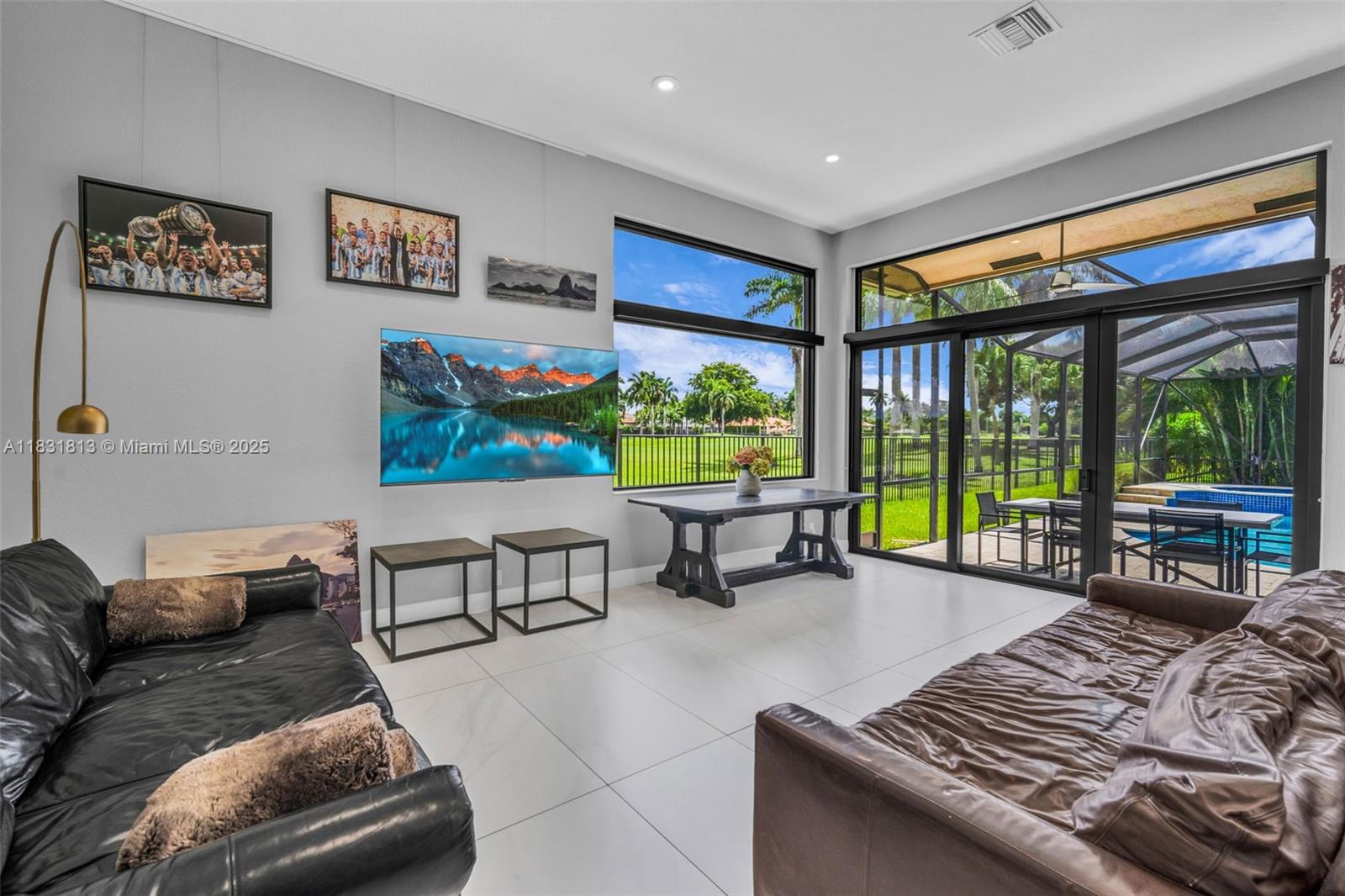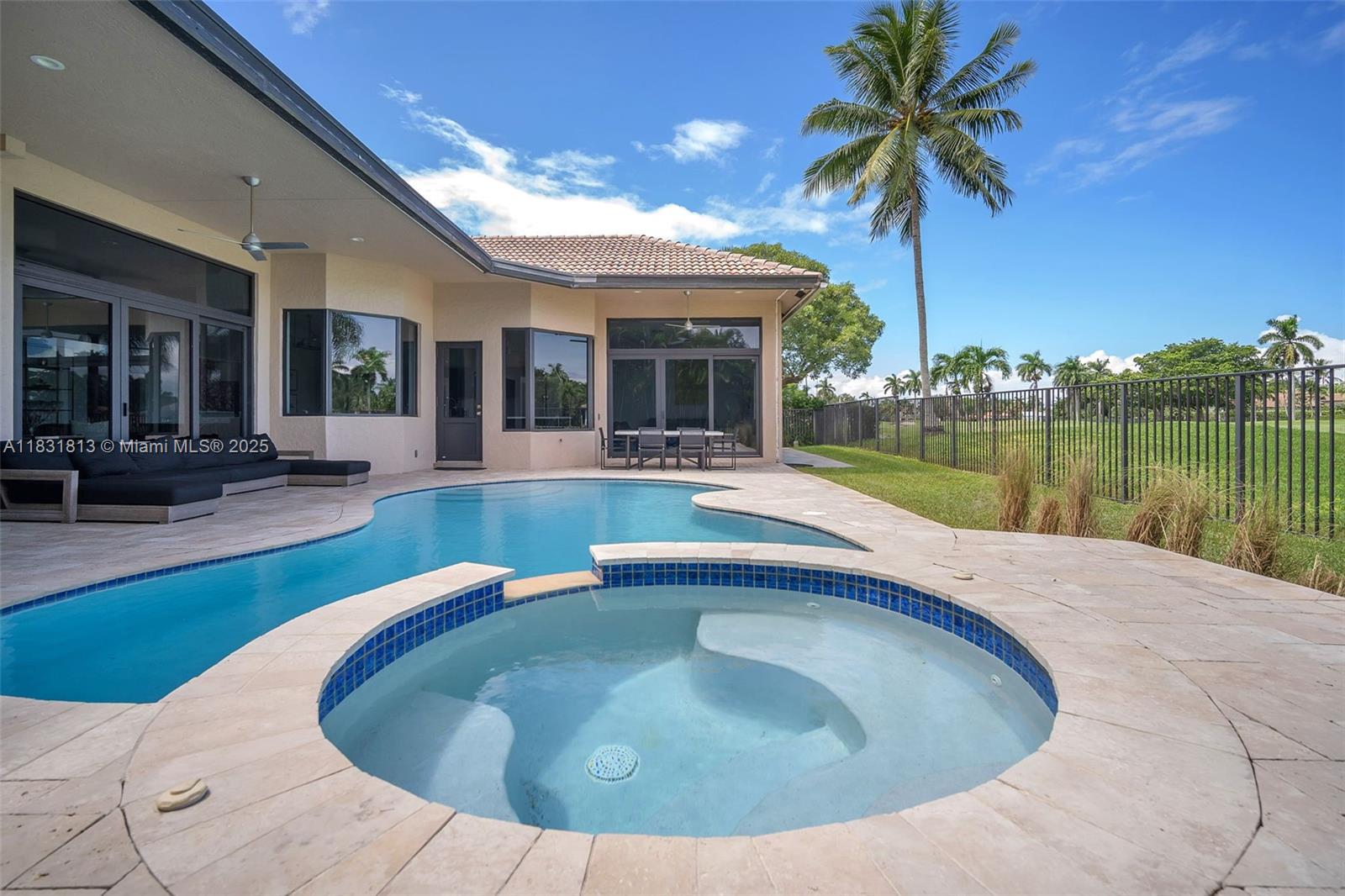 Welcome to this stunning 5-bedroom, 4-bathroom, fully rebuilt one-story home on the golf course in Weston Hills Country Club, offering unobstructed views, premium finishes, and sleek modern design. Move in and enjoy resort-style living from day one! Highlights: Fully Rebuilt; roof, impact windows/doors, Porcelanosa and Iberia Tiles flooring, kitchen & baths Expansive Open Layout; perfect for entertaining Chef’s Kitchen; double oversized matching islands, Thermador appliances, wine cooler, custom natural wood bar Grand Primary Suite; Golf views, spa-style bath, custom walk-in closet, and full custom interior closets Waterdrop Reverse Osmosis System; Pure, high-quality drinking water. Heated Pool, 3-Car Air conditioned Garage, new Garage doors, Tesla charger