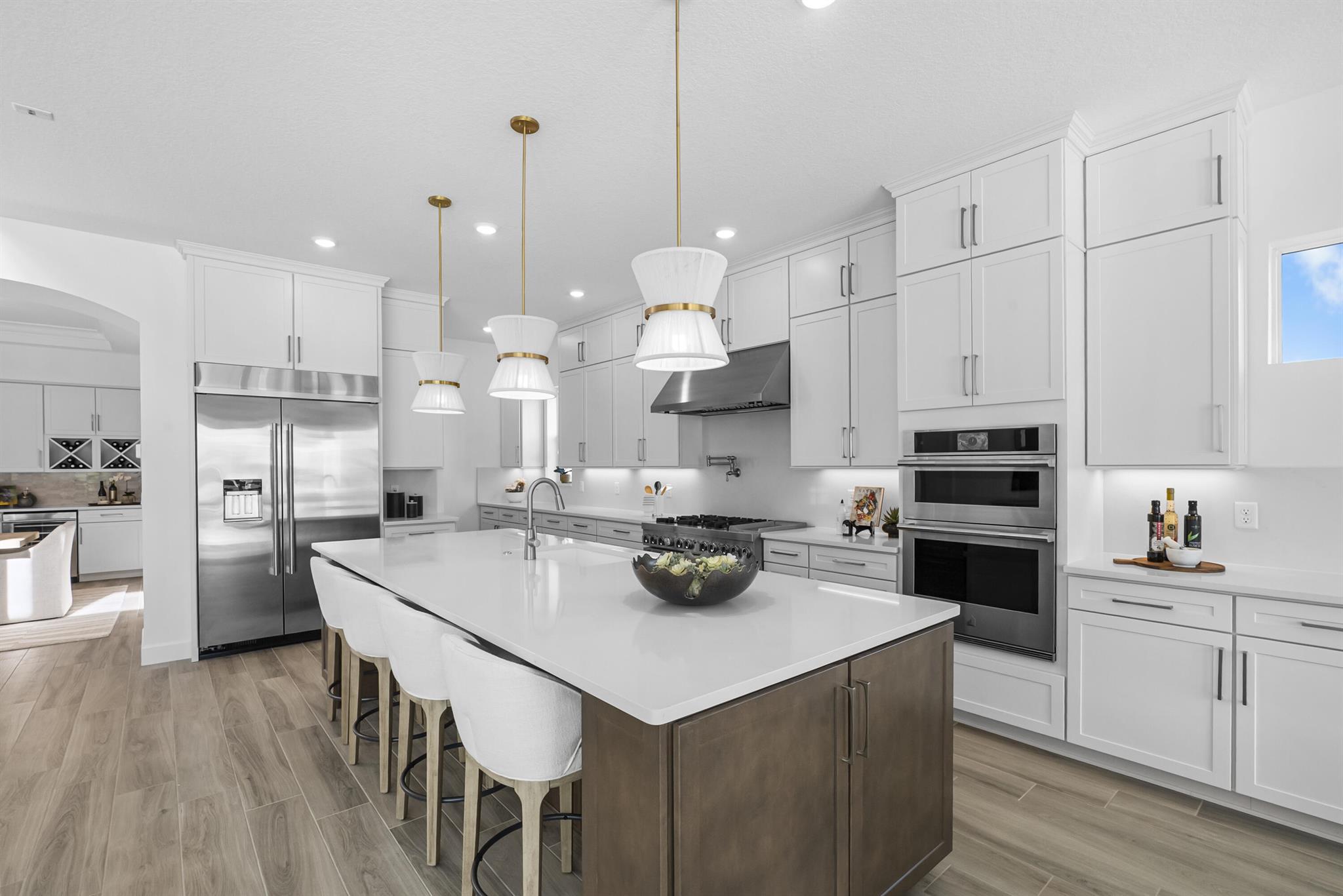 BRAND NEW, NEVER LIVED IN & PROFESSIONALLY DESIGNED is this gorgeous Livingston model POOL home nestled in the gated new Divosta community ''Bridgewater'' offering THE BEST LAKE & PRESERVE VIEWS! Sitting on a premium private 1-acre lot, this home offers 5 bedrooms PLUS a Den/Office, a Theater/Game Room & a large Loft! With 6.1 baths, a spacious 4 car garage & a separate Guest House which includes a spacious bedroom, walk in closet & full bathroom your guests may never want to leave. Step inside to find many features & upgrades which include; circular driveway, impact glass double front door entry, wood look tile floors on the main level, double doors @ 1st floor den/flex room, upgraded white shaker style wood kitchen cabinetry, Jenn Air SS appliances, DOUBLE dishwasher,