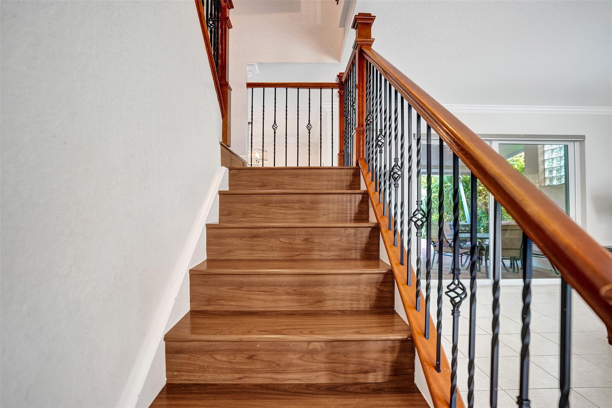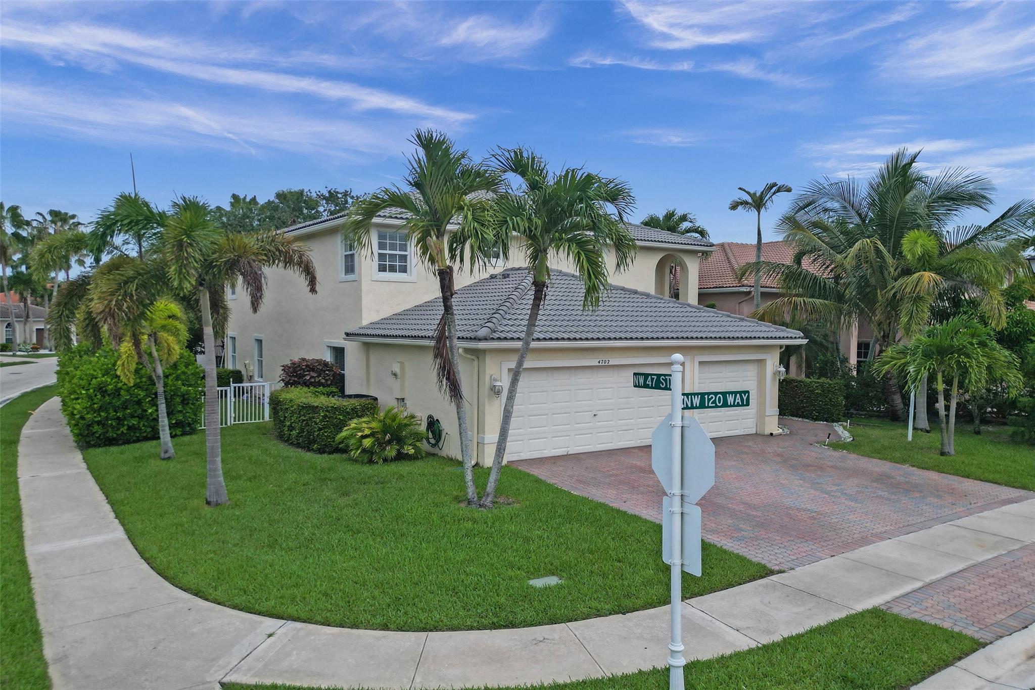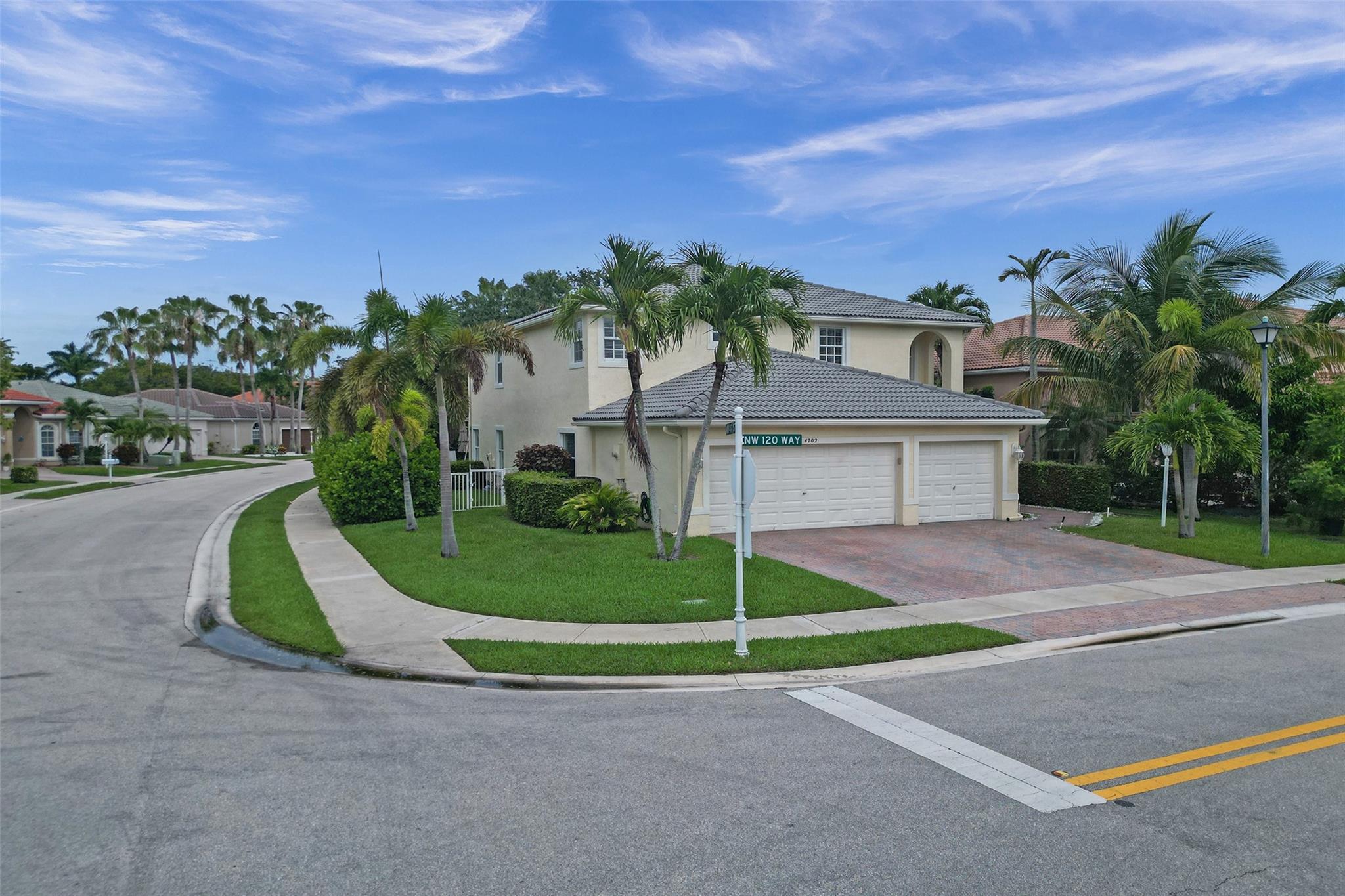 Best value!!! Welcome Home to gated Pelican Trails in Wyndham Lakes in desirable North West Coral Springs and very low HOA fees which includes gate access and lawn care. This beautiful 5 bedrooms, 4 bathrooms, 3 car garage, pool home is situated on a corner lot. The home is just shy of 3,000 sq feet, double frosted glass front doors greets you, one bedroom and bath is located on the first floor, back door sliders are hurricane rated. Oversized primary suite with sitting area, laminate floors upstairs all of the bathrooms has been updated. The tranquil private back yard with a large pool with child fence and grassy area with tropical fruit trees, lush hedges for extra privacy. Close proximity to highways, shopping, excellent A schools and parks. Four point inspection attached to MLS.