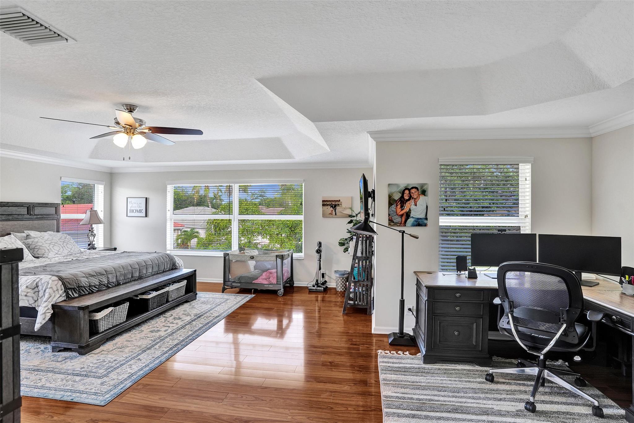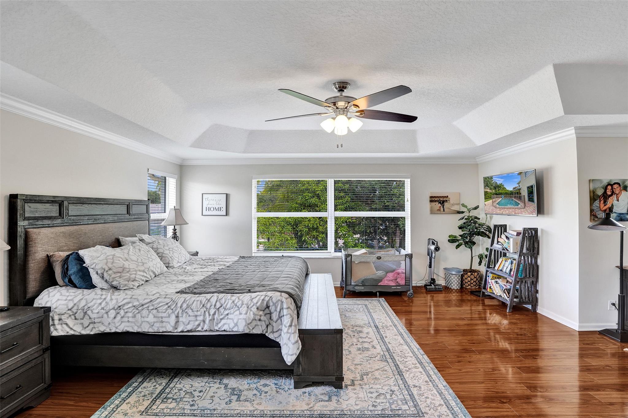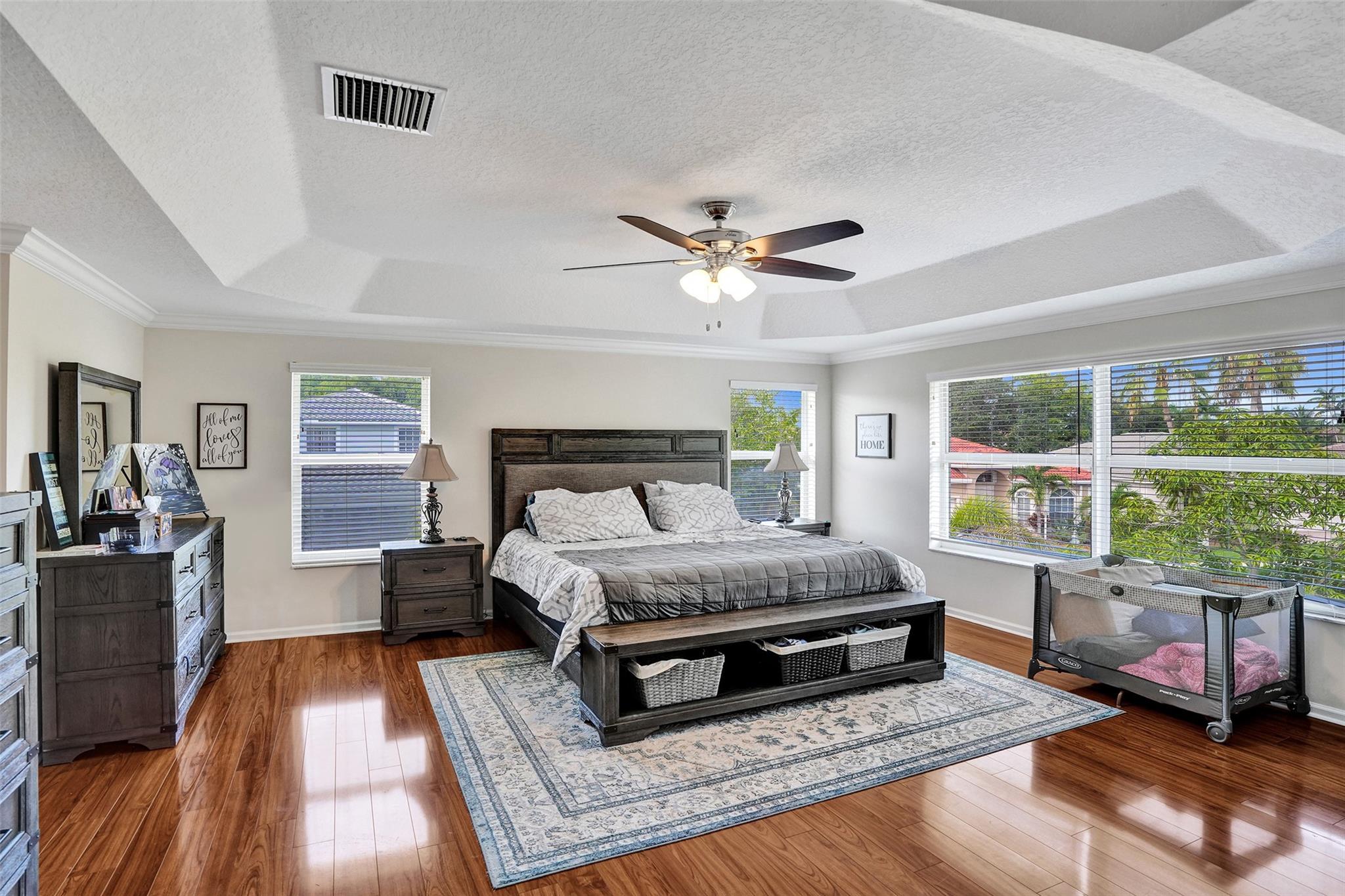 Best value!!! Welcome Home to gated Pelican Trails in Wyndham Lakes in desirable North West Coral Springs and very low HOA fees which includes gate access and lawn care. This beautiful 5 bedrooms, 4 bathrooms, 3 car garage, pool home is situated on a corner lot. The home is just shy of 3,000 sq feet, double frosted glass front doors greets you, one bedroom and bath is located on the first floor, back door sliders are hurricane rated. Oversized primary suite with sitting area, laminate floors upstairs all of the bathrooms has been updated. The tranquil private back yard with a large pool with child fence and grassy area with tropical fruit trees, lush hedges for extra privacy. Close proximity to highways, shopping, excellent A schools and parks. Four point inspection attached to MLS.