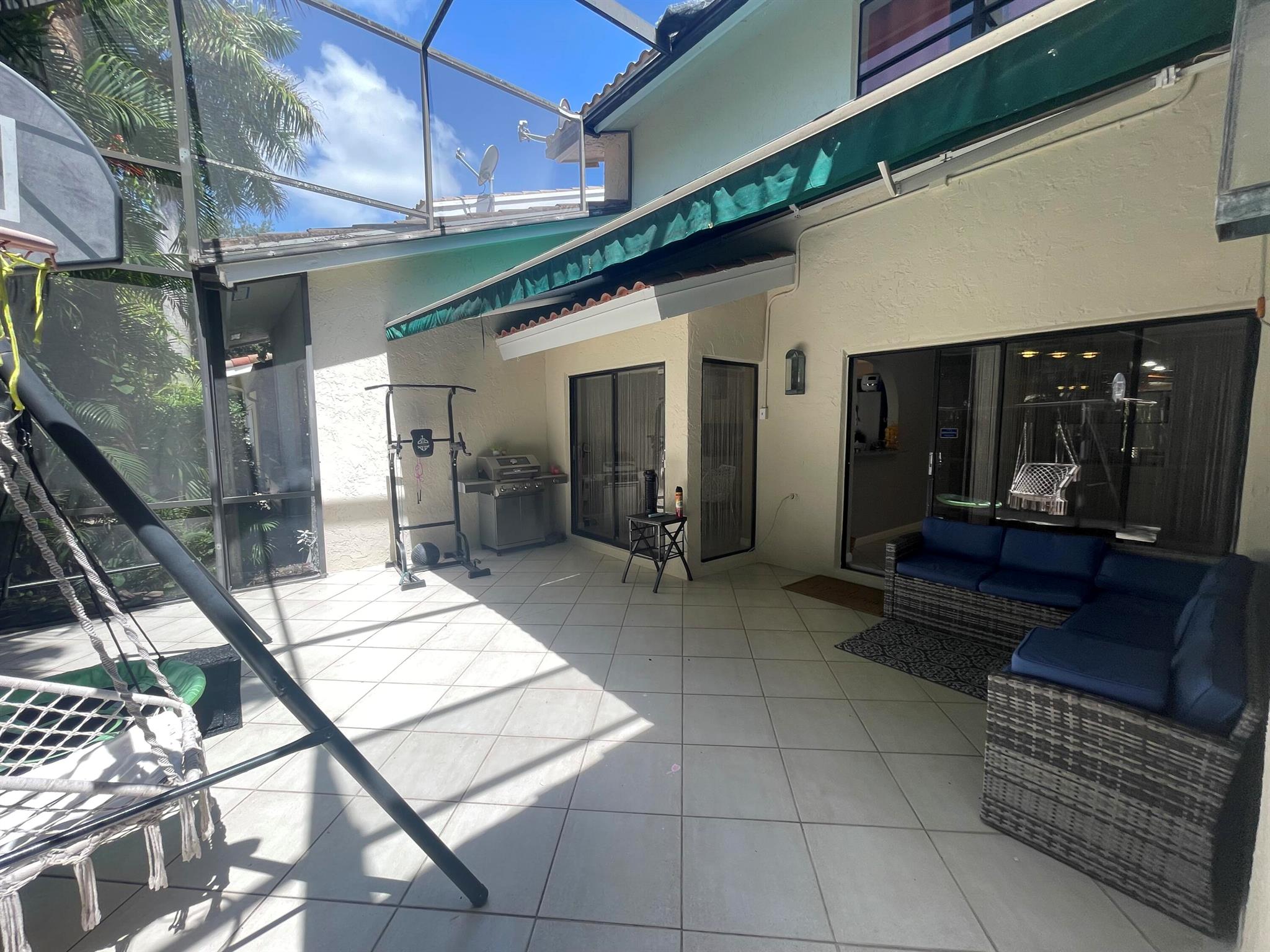 Priced To Sell! Hurry Rarely Available Townhome in Estada. New roof in 2022, New ac in 2023, New Fresh Exterior Painting in 2025. 3 bedrm, 3 full baths, tile floors, high ceilings. Light and bright interior with multiple glass sliders overlooking onto the expansive screen-in patio! Built-in bar, One bedrm on first floor with full bath. Guest bedroom upstairs features an ensuite bath. Primary bedroom features large walk-in closet and 2 additional wall closets, Gated Community Entry, Community Pool & Clubhouse, Low Mo Maintenance. Excellent Location & School District!