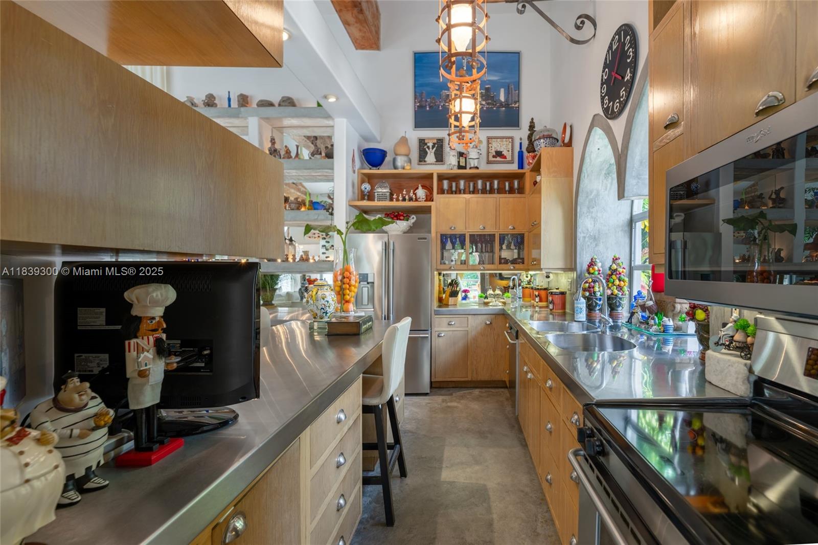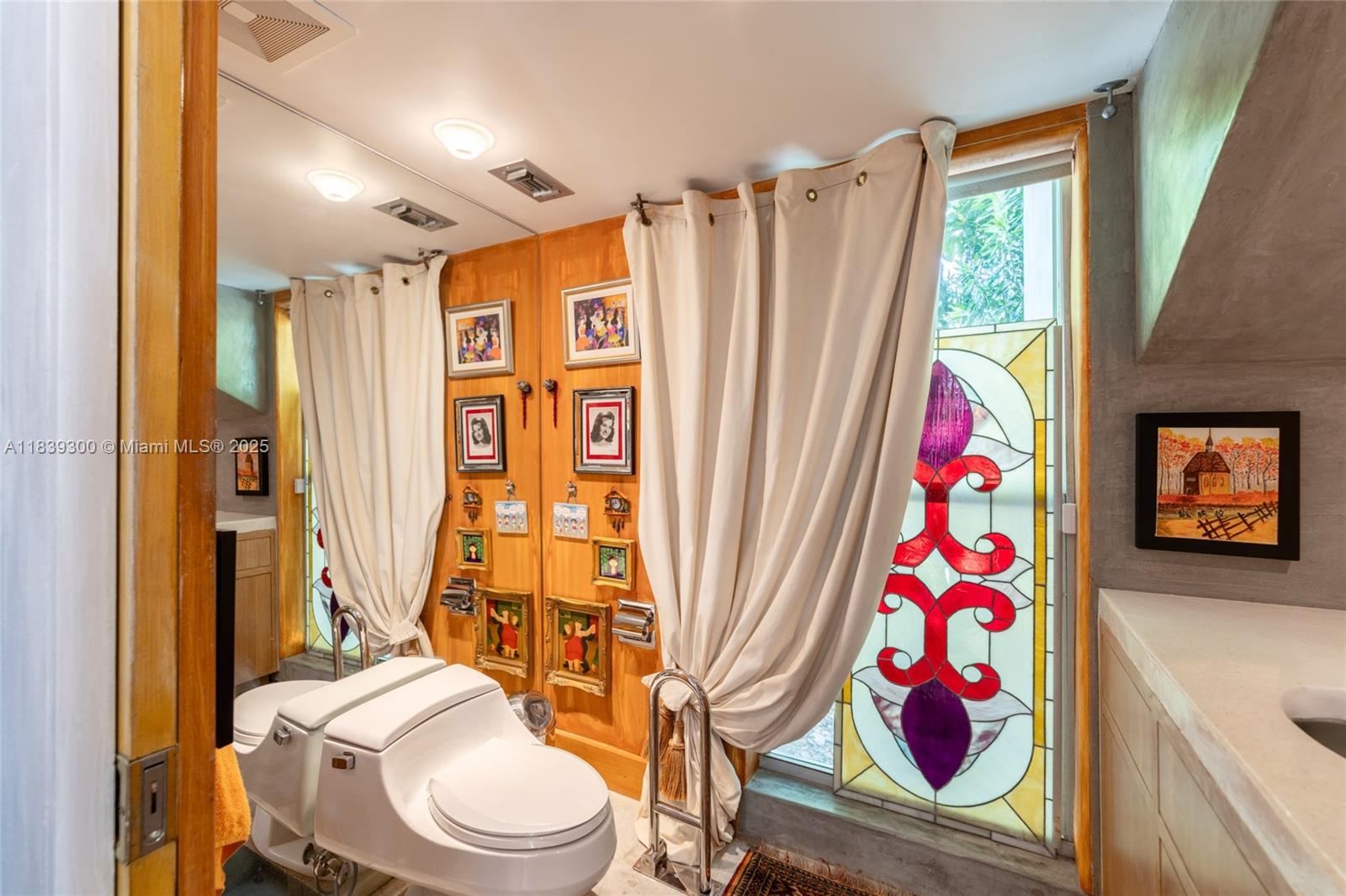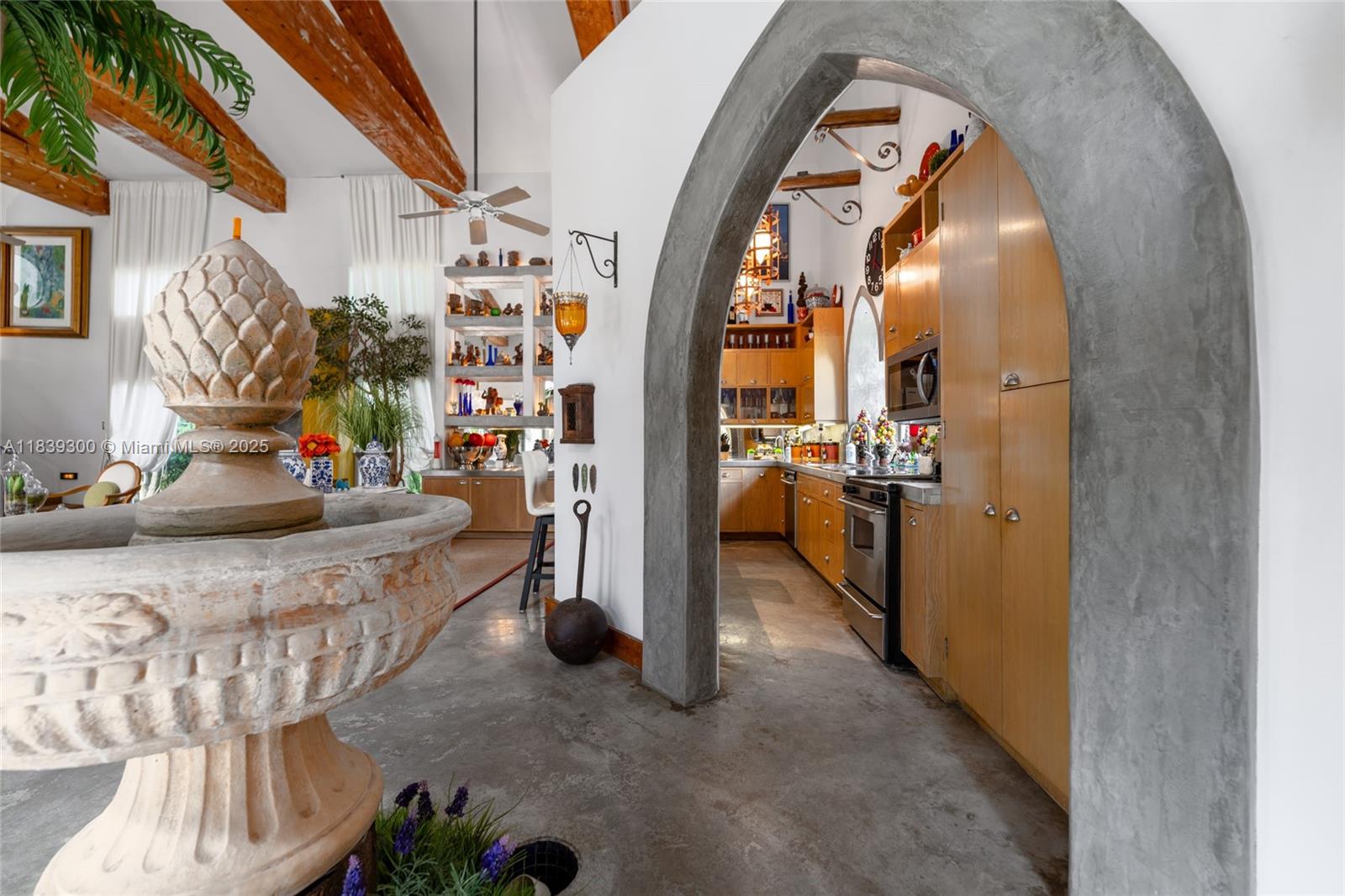 Nestled in the heart of South Miami, this Mediterranean gem is a true architectural masterpiece designed by architect Jose Anthony Enriquez. This one-of-a-kind home stands out in the community with its unique design and exquisite craftsmanship. Every door is handmade from wood, adding a touch of artisanal elegance. The grand vaulted ceilings are adorned with hand-stamped wood beam accents, evoking the grandeur of a majestic palace. The polished cement flooring throughout enhances the home's modern yet timeless appeal. This home is not just a place to live, but a work of art that exudes luxury and sophistication. The newly updated white exterior enhances curb appeal and highlights the home’s distinctive lines. Ideal as a private residence or a high-performing short-term rental investment.