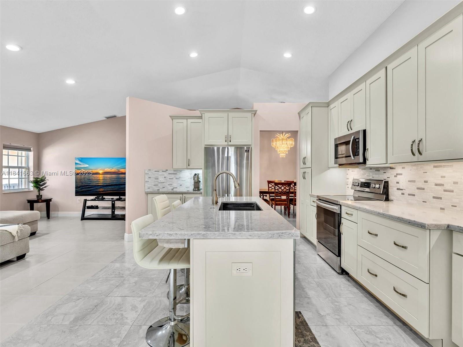 Charming one story 3/2 single family Weston home with many upgrades! Brand NEW ROOF (April 2025), fully remodeled bathrooms, upgraded kitchen with quartz countertops, open concept large living/kitchen area, oversized primary suite and spacious dining! Other amenities include accordion hurricane shutters, epoxy coated two-car garage floor, and meticulous landscape. Supports both gas and electric. Well positioned in the quiet Bonaventure neighborhood of Weston. Bonaventure Town Center Membership included.