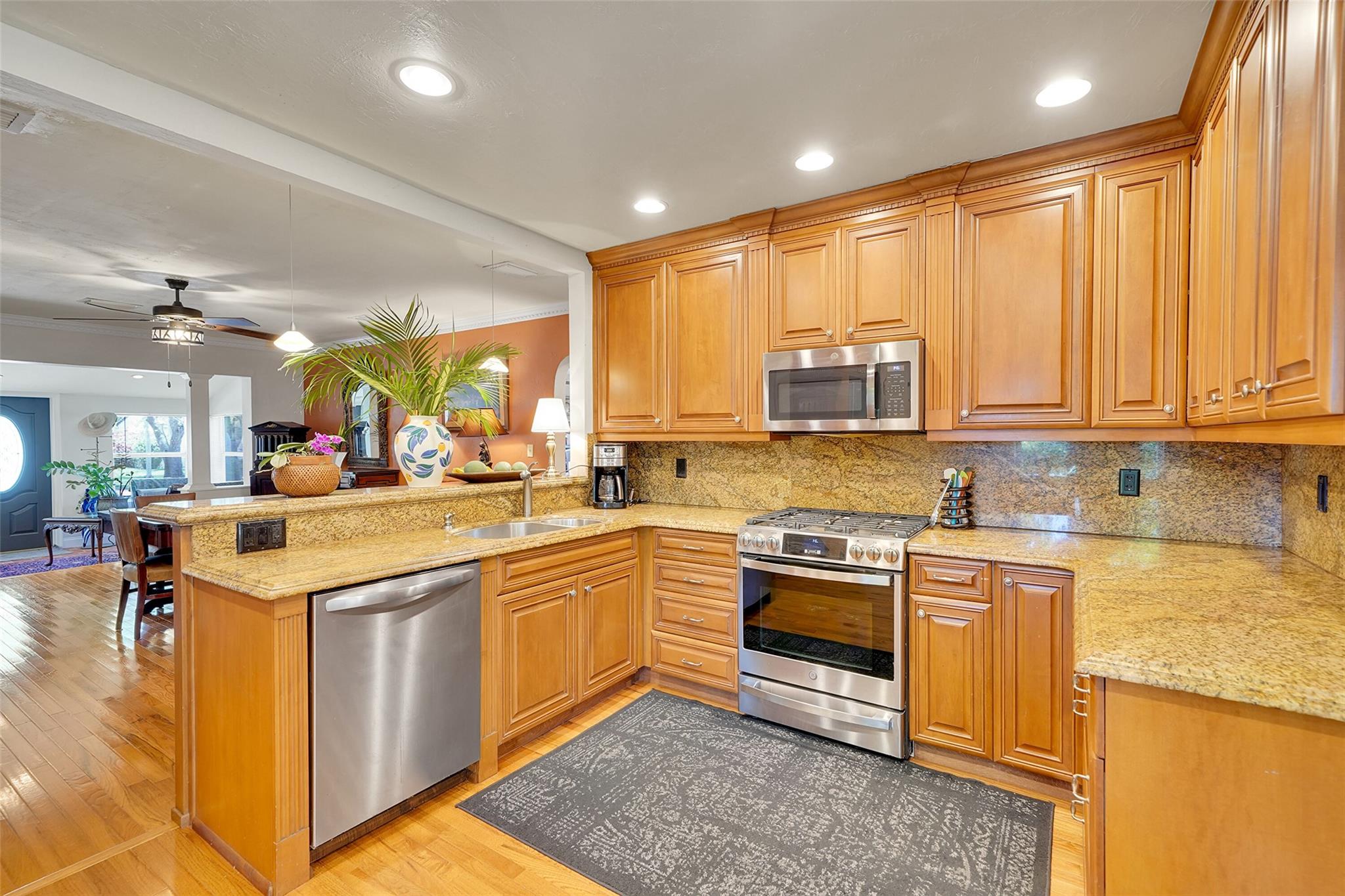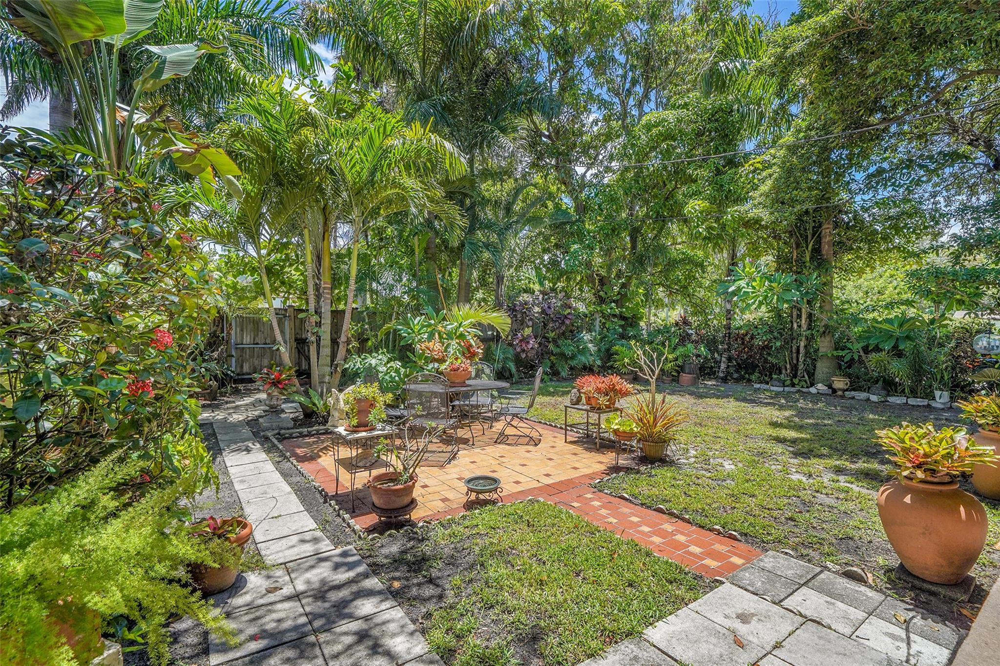 Charming 3 bedroom and 2 1/2 bath home located on a great corner with the most beautiful vegitation and fruit trees! A custom railing invites you to enter this updated treasure that boasts a spacious floorplan! A gourmet kitchen with a gas range, updated bathrooms, an indoor laundry room with wash tub, and so much more that you just have to experience it for yourself. Barrel Tile Glazed Roof 2019, Air Conditioner, 2020, Tankless Hot Water Heater, and Impact Windows and Doors. The backyard boasts a shed for extra storage and a welcoming garden to enjoy the best of South Florida flora and fauna.