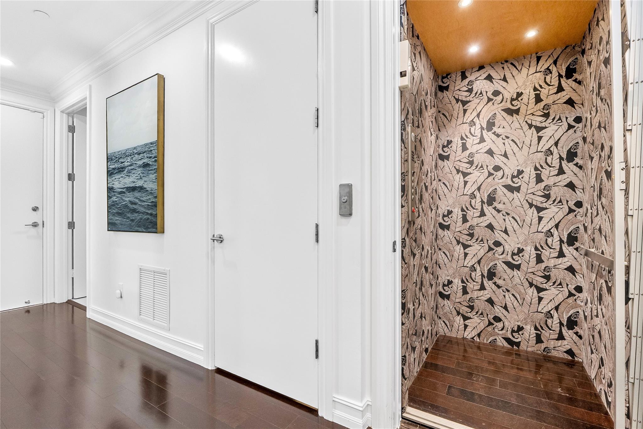 • Интерьер:BreakfastBar, ClosetCabinetry, DiningArea, SeparateFormalDiningRoom, DualSinks, EntranceFoyer, FirstFloorEntry, KitchenIsland, LivingDiningRoom, MainLivingAreaEntryLevel, SittingAreaInPrimary, SeparateShower, UpperLevelPrimary, WalkInClosets, CentralVacuum, Elevator