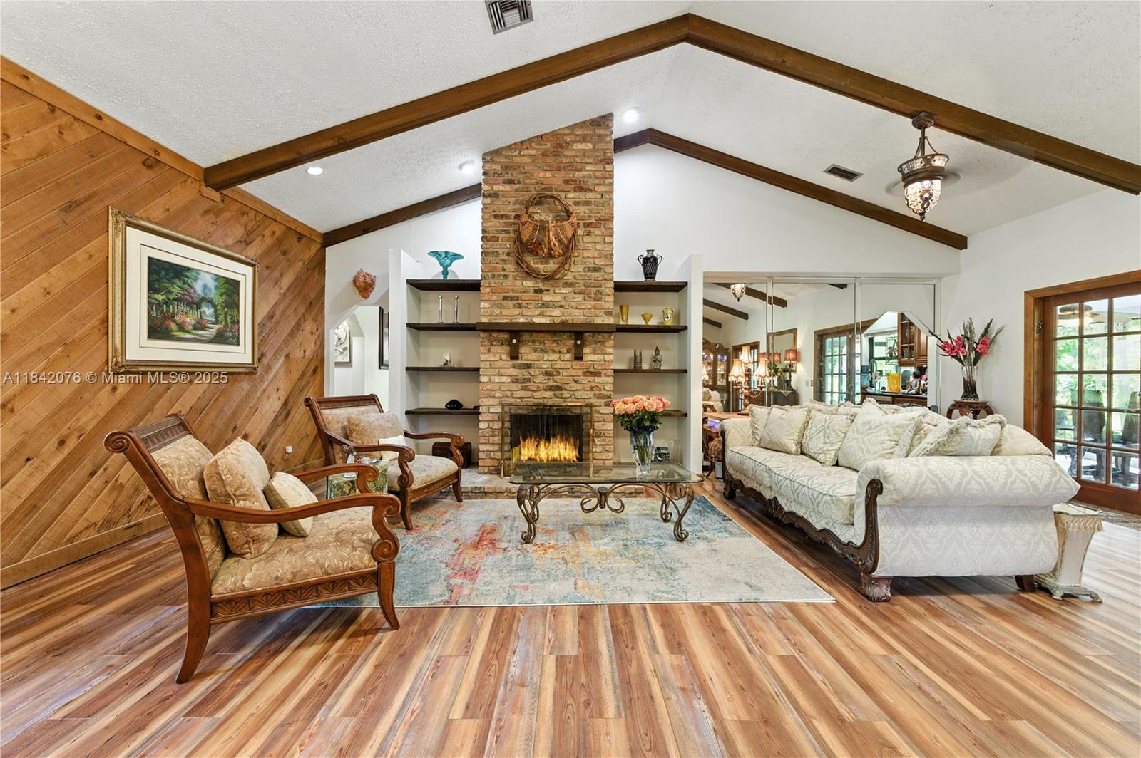 Welcome to this beautifully maintained 3-bedroom, 2-bathroom home offering the perfect blend of rustic charm and modern upgrades. Situated on a spacious lot in one of South Florida’s most desirable equestrian communities, this residence boasts vaulted, beamed ceilings and a classic brick wood-burning fireplace that creates an inviting, cottage style ambiance. Enjoy peace of mind with a new metal roof, impact windows and doors, and a tankless water heater for maximum efficiency. The primary suite features a fully renovated spa-inspired bathroom. With no HOA restrictions, you have the freedom to personalize your lifestyle. This .94-acre lot backs up to a natural preserve ensuring no rear neighbors! All major systems have been updated, leaving you free to move in and enjoy.
