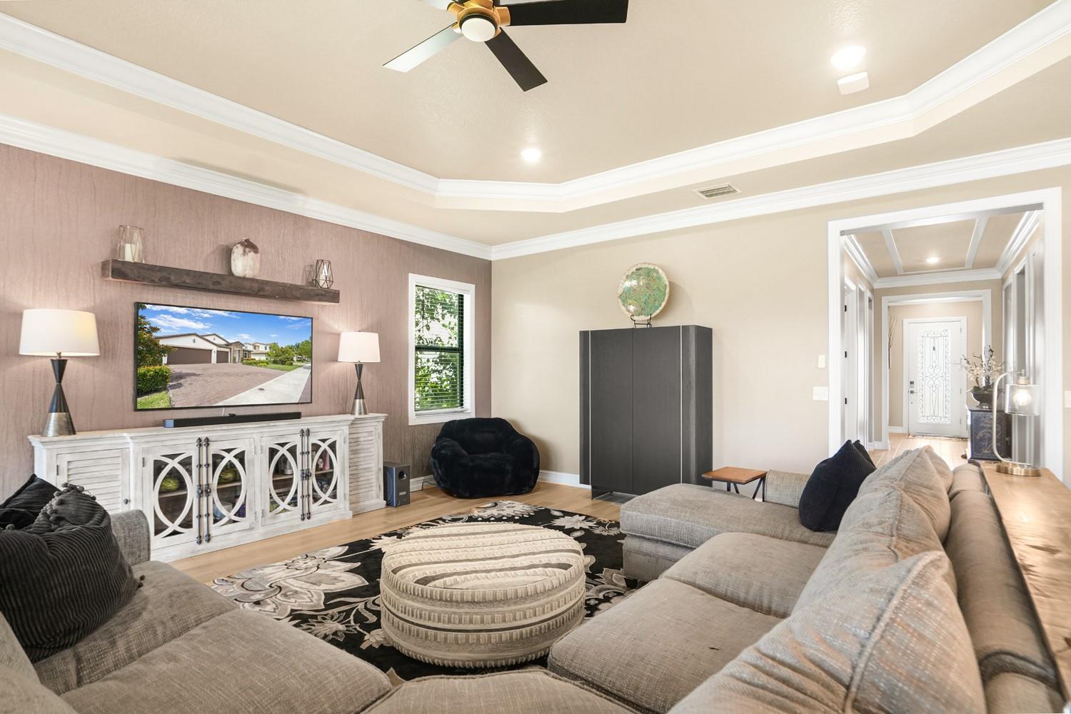 Beautifully upgraded home in desirable Palm Meadows! This meticulously maintained residence features a whole-house generator, gas stove, custom barn doors and cubbies in the laundry room, and a new kitchen island with granite, sink, faucet, and backsplash. All closets and pantry were redesigned by The Closet Factory. Interior has fresh paint, upgraded door and cabinet hardware, stylish wallpaper, and a rock accent wall in the bedroom. Bathrooms include new shower heads, barn-style glass doors, updated faucets, and a renovated guest bath. Enjoy a screened-in porch, new island lighting, ceiling fans, new washer/dryer, new AC unit, EV outlet in garage, and termite warranty. Move-in ready with thoughtful upgrades throughout!