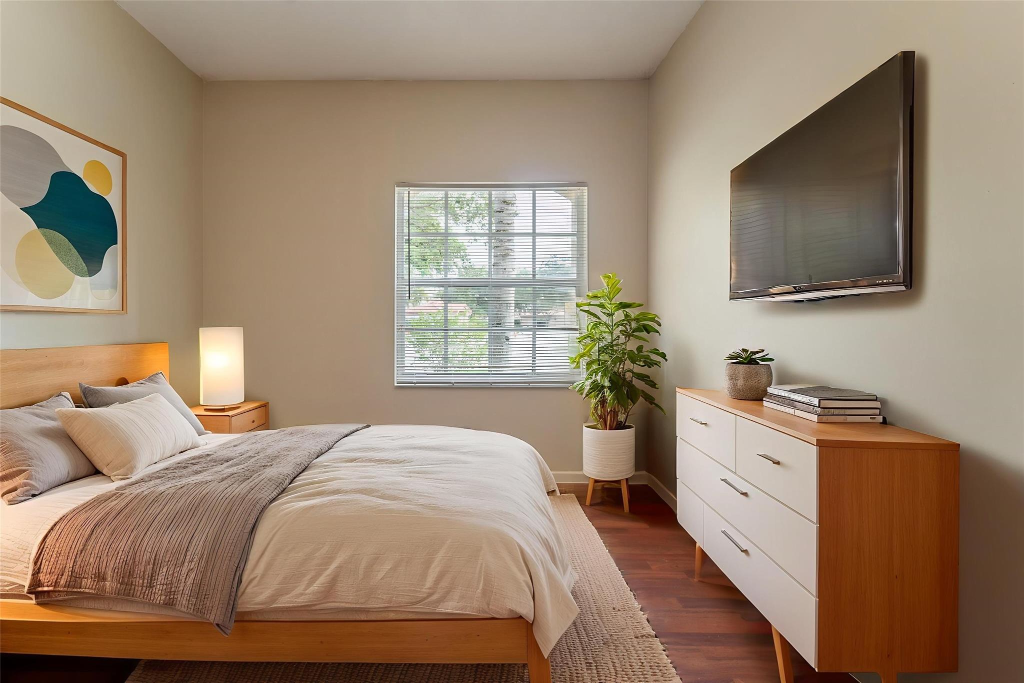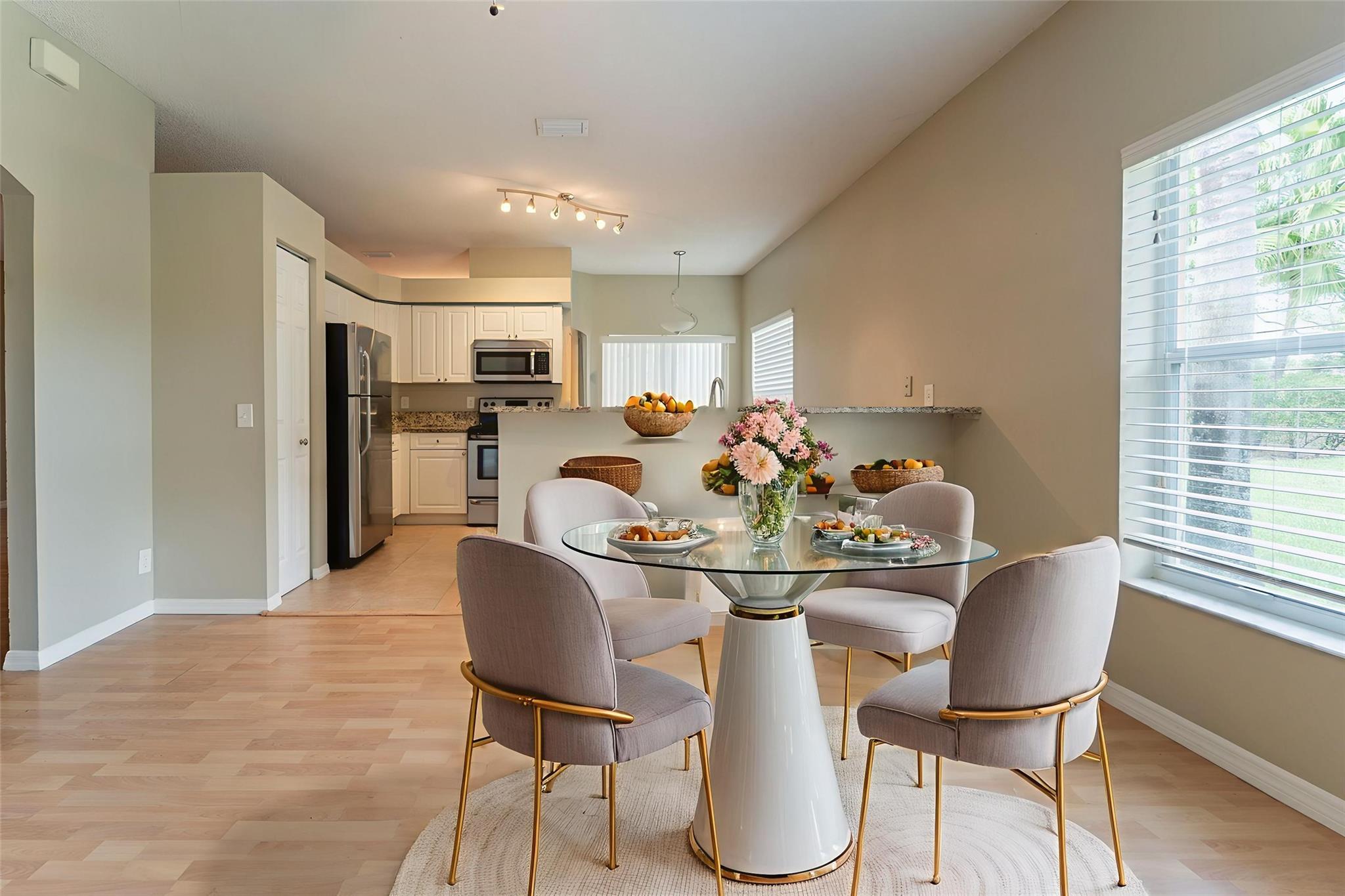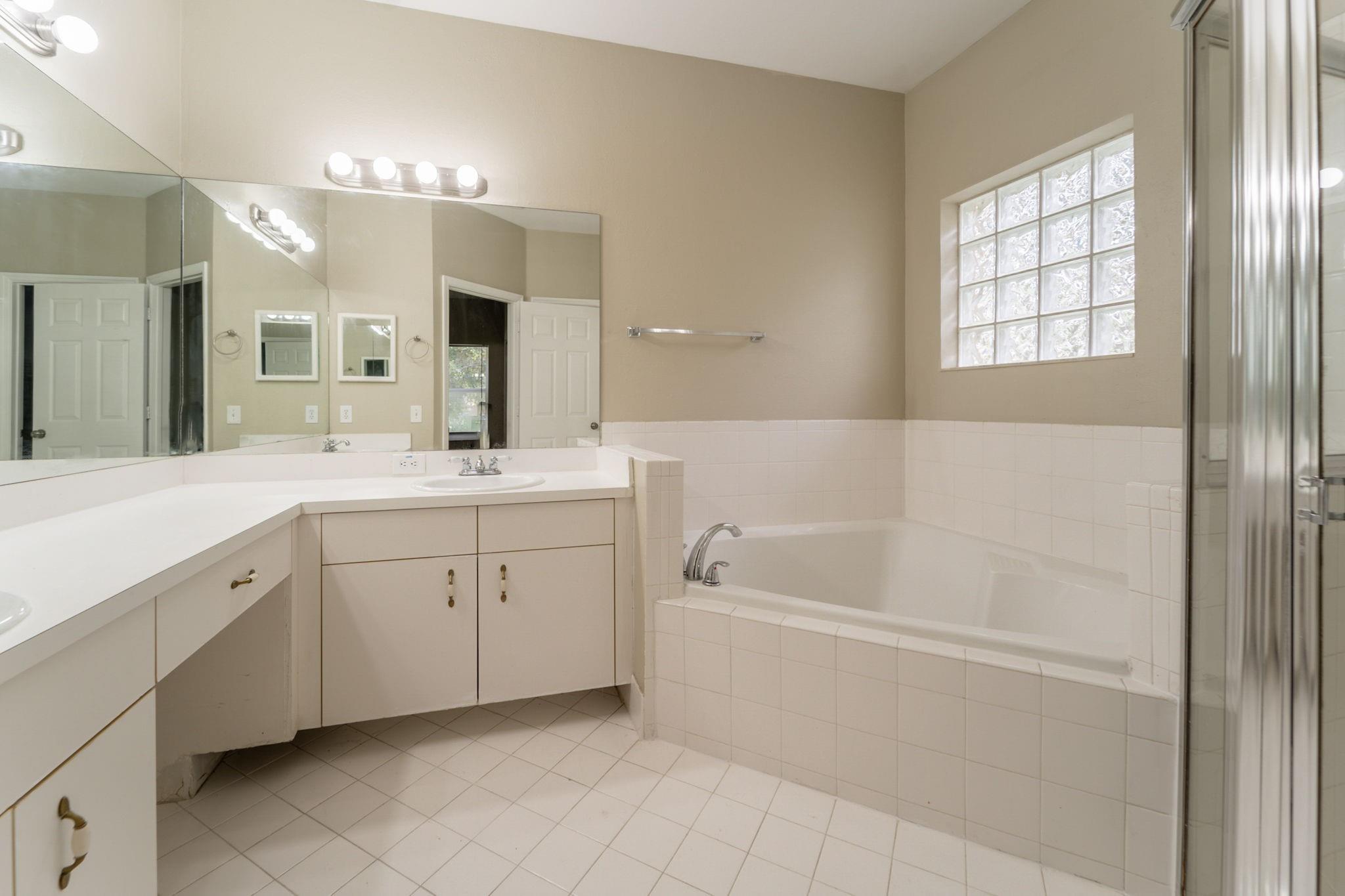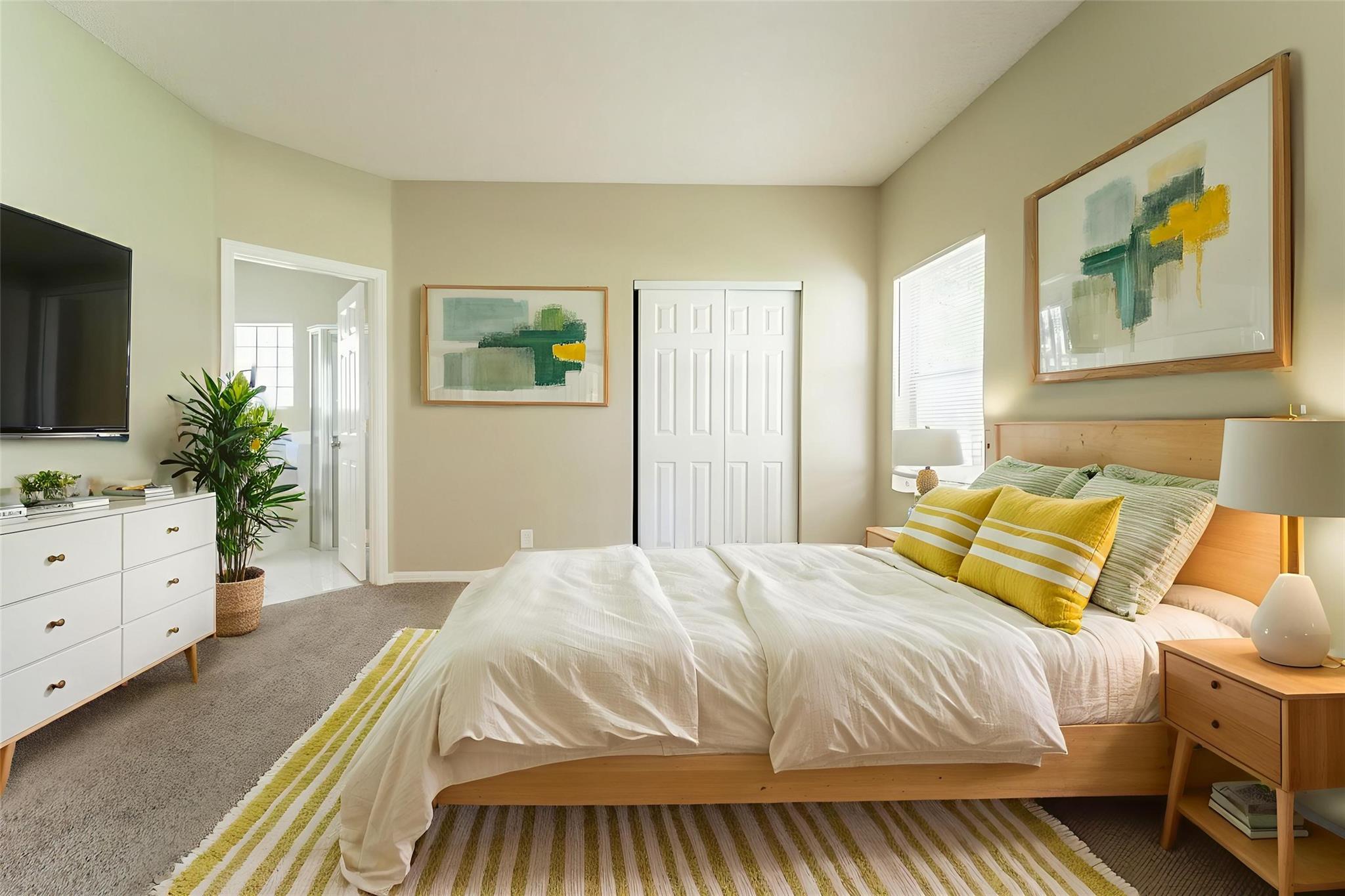 One or more photo(s) was virtually staged. Charming 1-story home featuring 3 bedrooms, 2 bathrooms, and a 1-car garage, perfectly situated with serene lake views. The open kitchen boasts a bar, white cabinets, and sleek stainless steel appliances, offering both style and function. The primary bathroom includes a separate shower and soaking tub for added comfort. Step out onto the back porch or enjoy quiet moments in the small fenced-in patio, all while taking in the peaceful water view. This home offers a relaxing atmosphere with thoughtful finishes throughout. Schedule a showing today!
