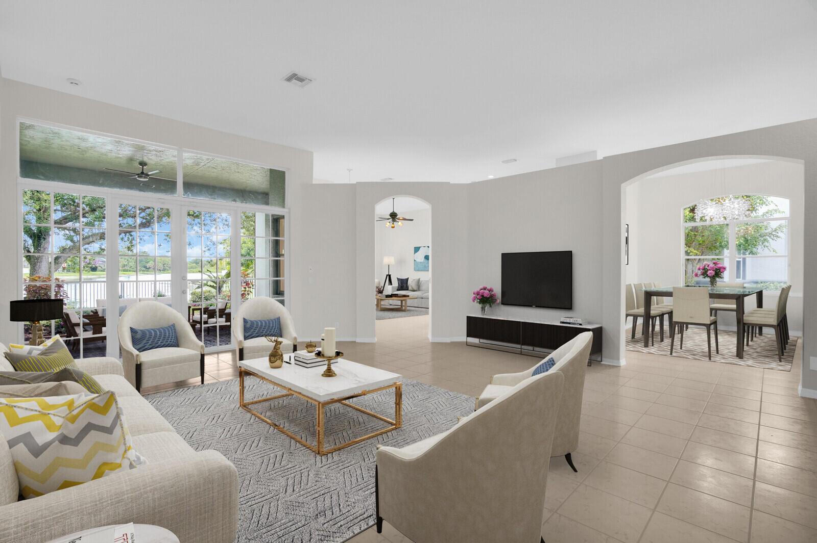 Step into this rare 4-bedroom, 2.5-bathroom home located in the sought after gated community of The Shores at Boca Raton. Situated on one of the best waterfront lots in the community with long lake views, this home offers a rare sense of privacy. Brand new roof installed in 2025! Curb appeal sets the tone with fresh landscaping and a freshly painted exterior inviting you inside to a thoughtfully designed floor plan filled with natural light.Throughout the home, beautiful laminate and tile flooring create a warm, low-maintenance atmosphere. The oversized living room offers 12 foot ceilings and plenty of seating room perfect for soaking in the stunning lake view.