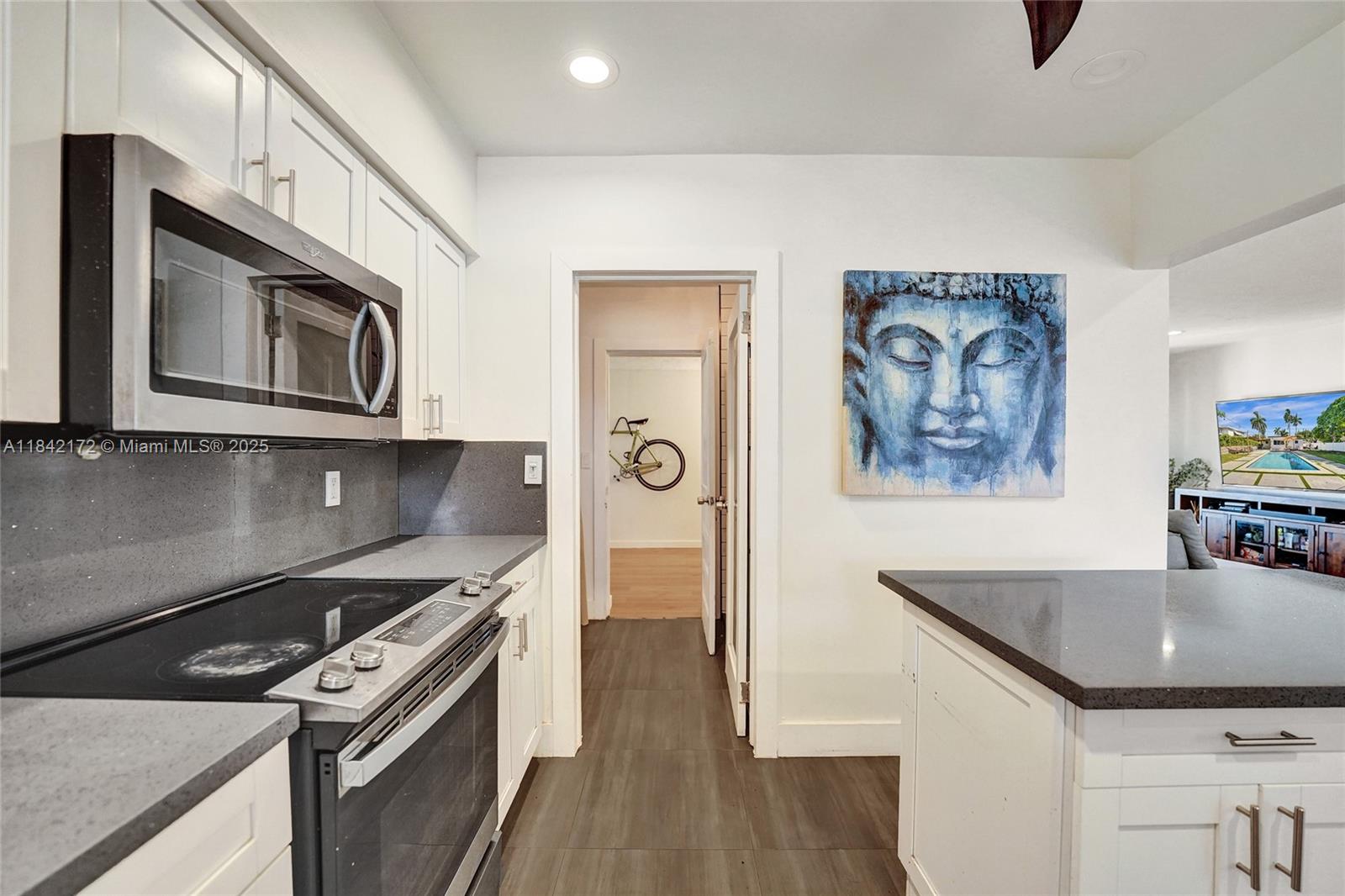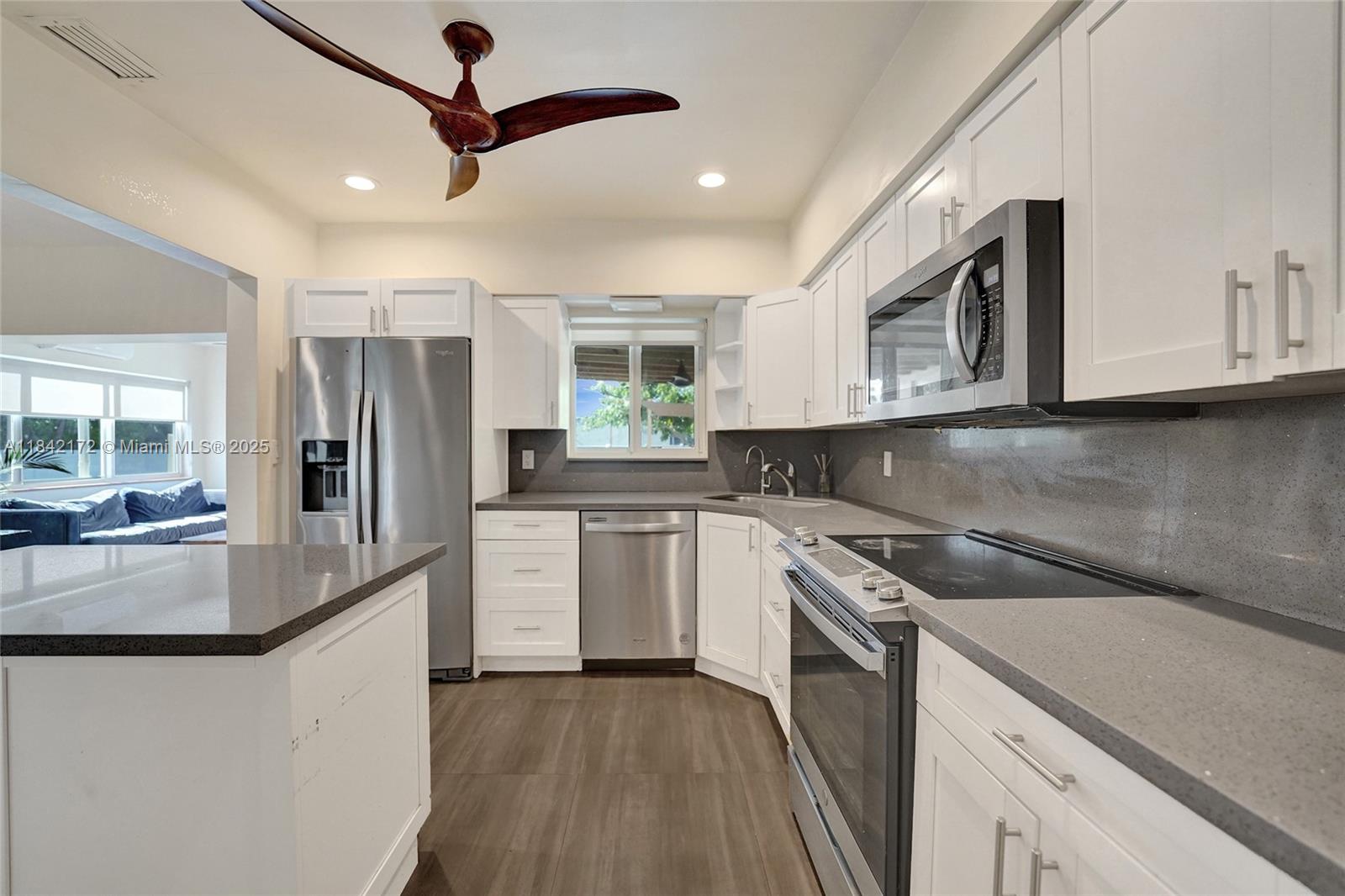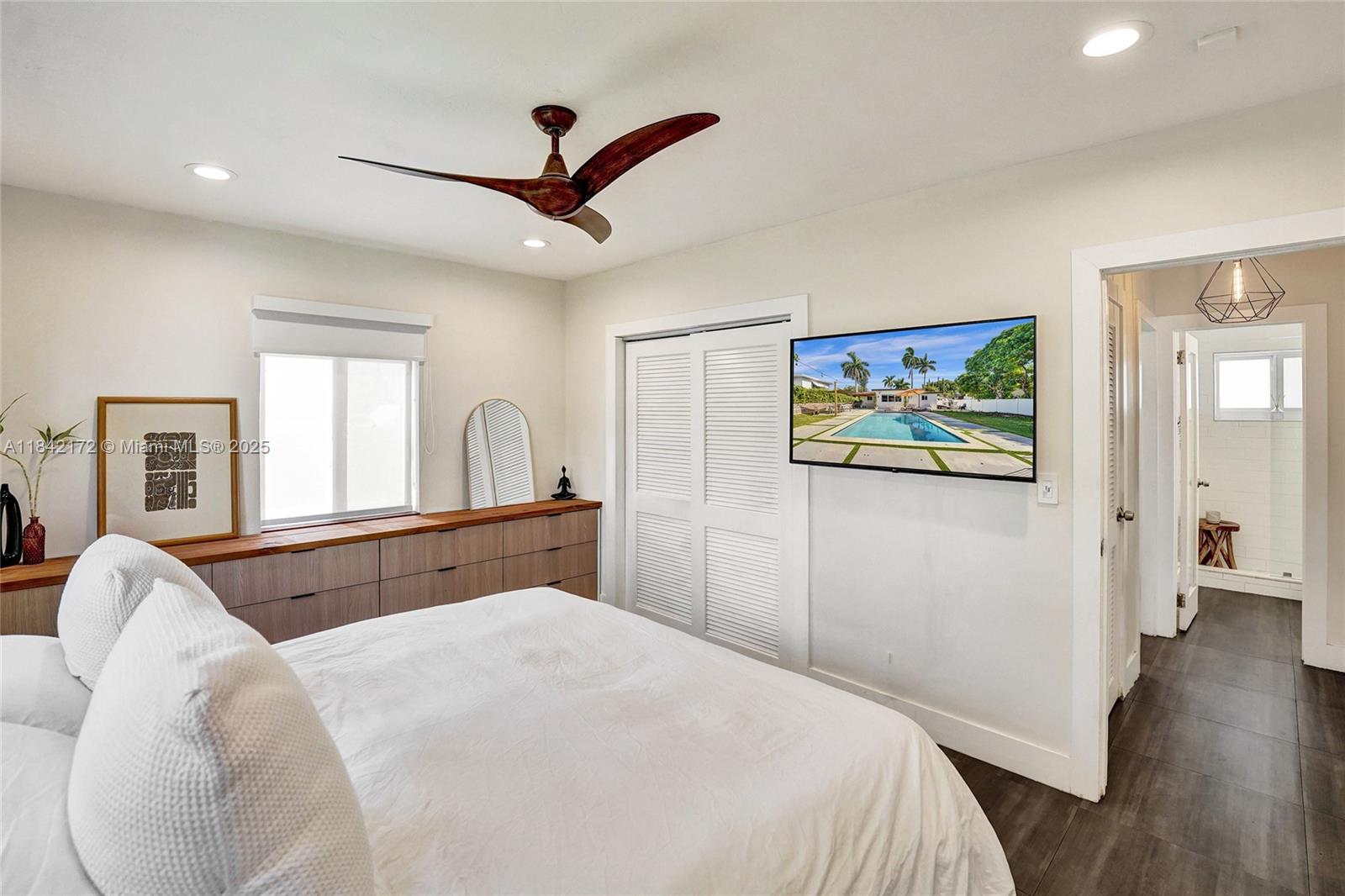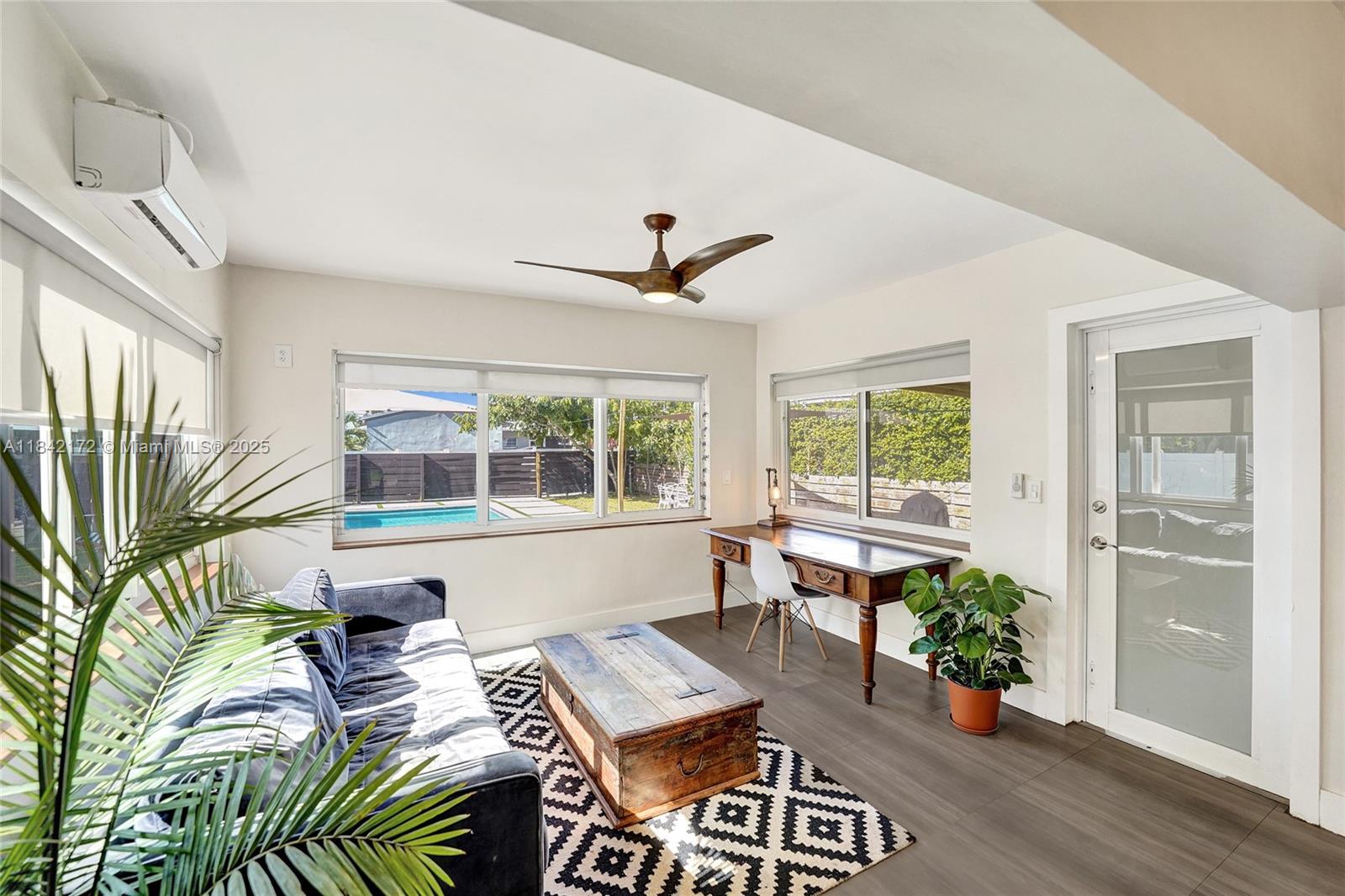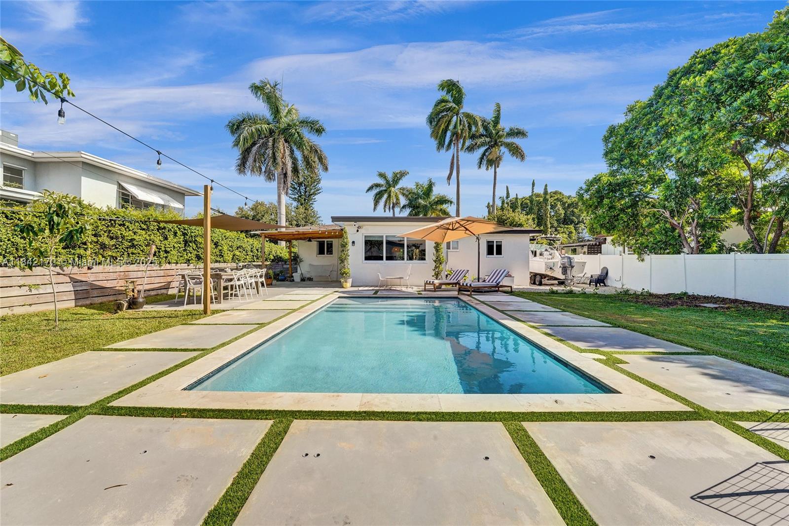 Bright & modern 2-bed, 2-bath pool home on an oversized lot! Updated kitchen w/ gas connection, quartz countertops, stainless appliances & large island—ideal for gatherings. Step outside to a 2023 salt-water pool w/ safety fence, covered patio, fenced yard w/ avocado & cotton candy berry trees. A circular driveway leads to gravel RV/boat space—perfect for recreation—plus electric car hookup, newer roof, tankless water heater & 3-ton A/C (˜1-yr). Inside, a decorative fireplace, water filtration, laundry, & 2 storage sheds. The partial garage conversion creates a flexible office space while leaving room for a golf cart. Located near Holland Park & Hollywood Beach Marina boat ramps, two golf courses & within walking and biking distance to the Hollywood Broadwalk & downtown!