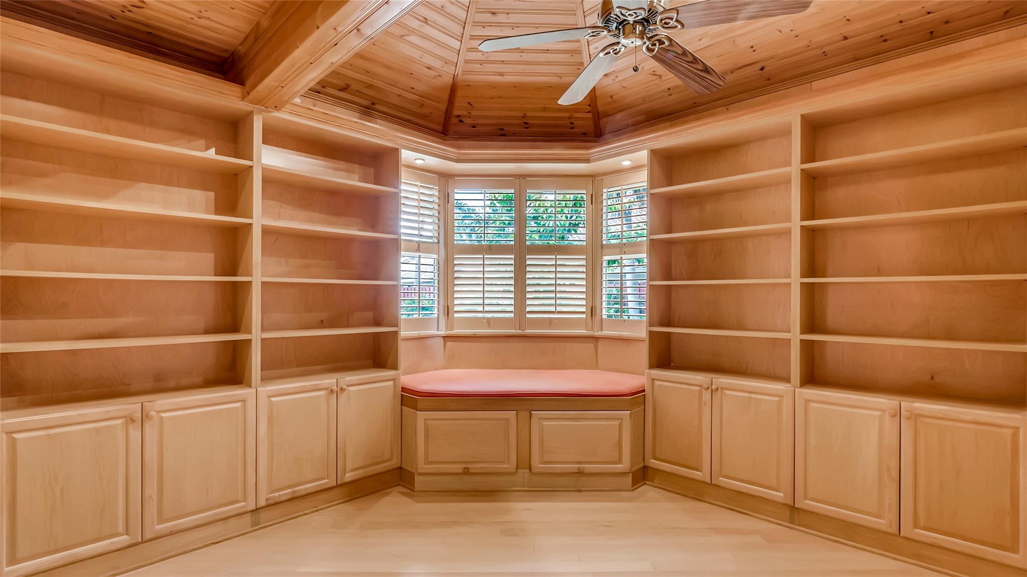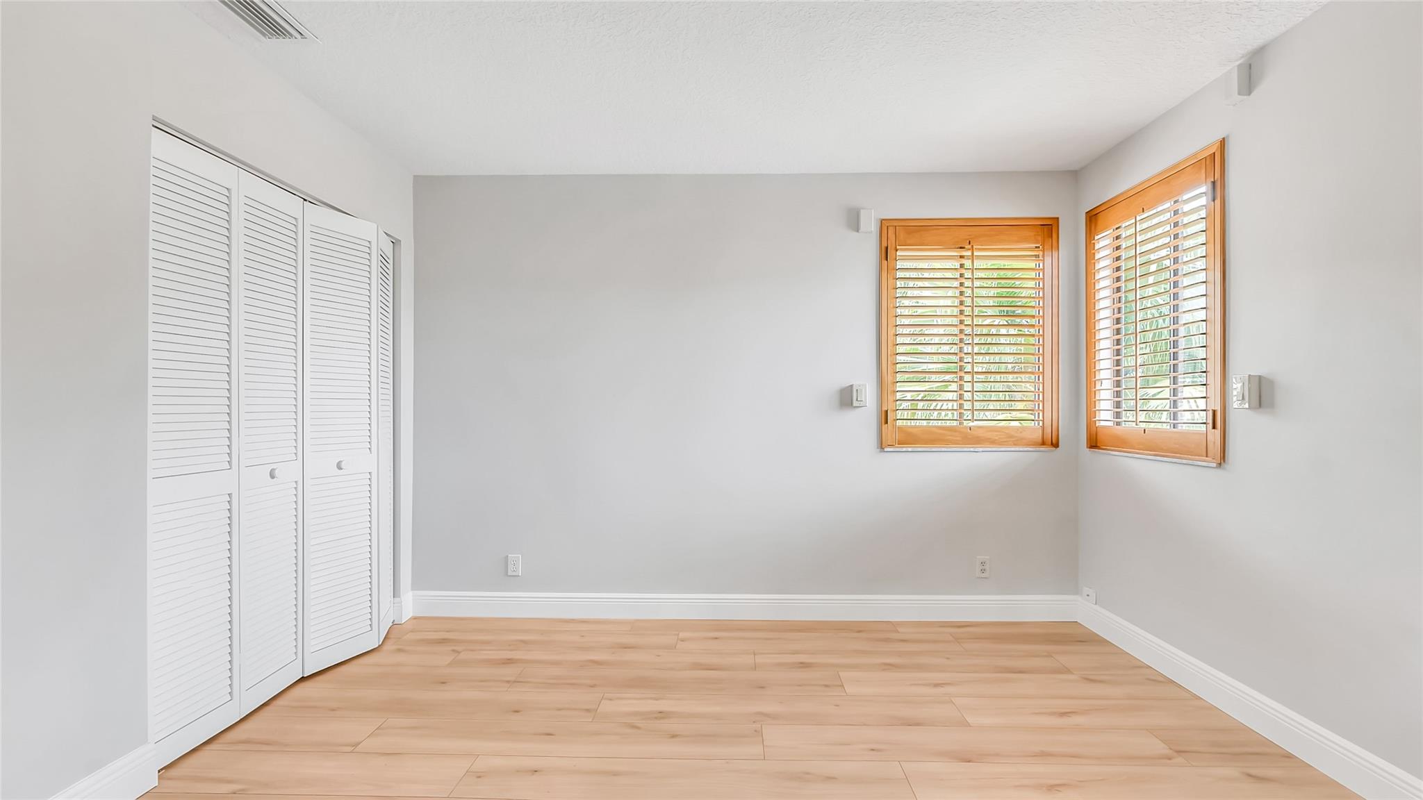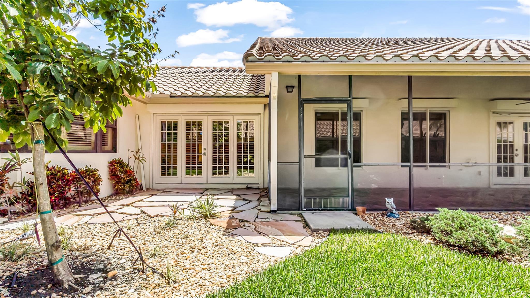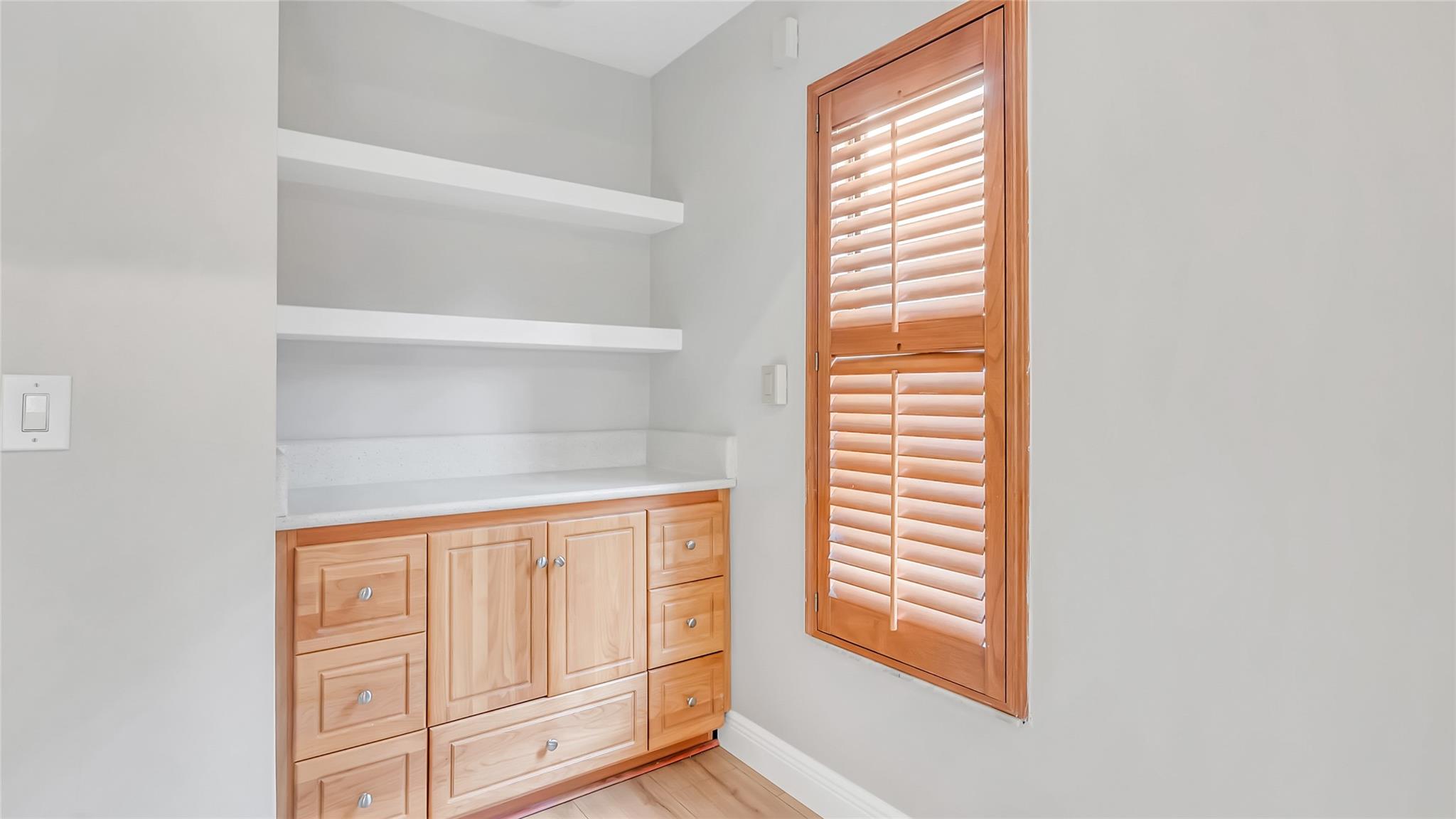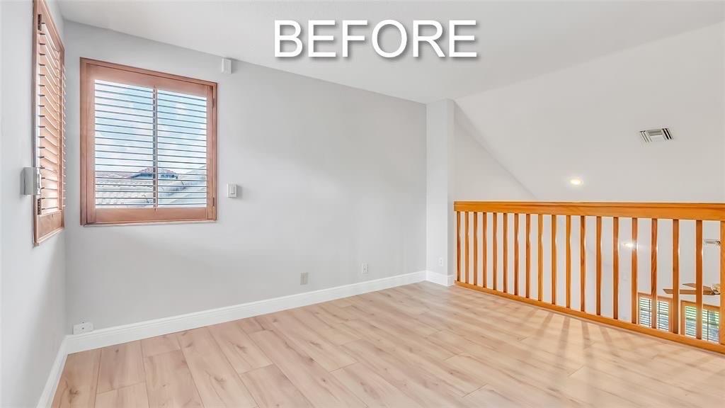 Beautifully updated corner lot home, soaring ceilings, smart, functional layout! 2025 improvements include fresh interior/exterior paint, popcorn ceiling removed & upgraded laminate flooring throughout. First-floor primary suite features: walk-in closet, roman tub, stall shower, quartz vanity, private office/den w/wood floors, built-ins & impact windows Additional downstairs bedroom & full bath; 2 more bedrooms upstairs w/renovated full bath. Kitchen offers granite counters, wood cabinets, pantry pull-outs, under/upper cabinet lighting & abundant recessed lighting. Family room w/dry bar w/quartz counters, inside laundry room & Plantation shutters throughout. Whole-house 22KW propane generator, 2022 A/C, electric rolldown shutters, alarm system w/cameras, lush landscaping complete this home