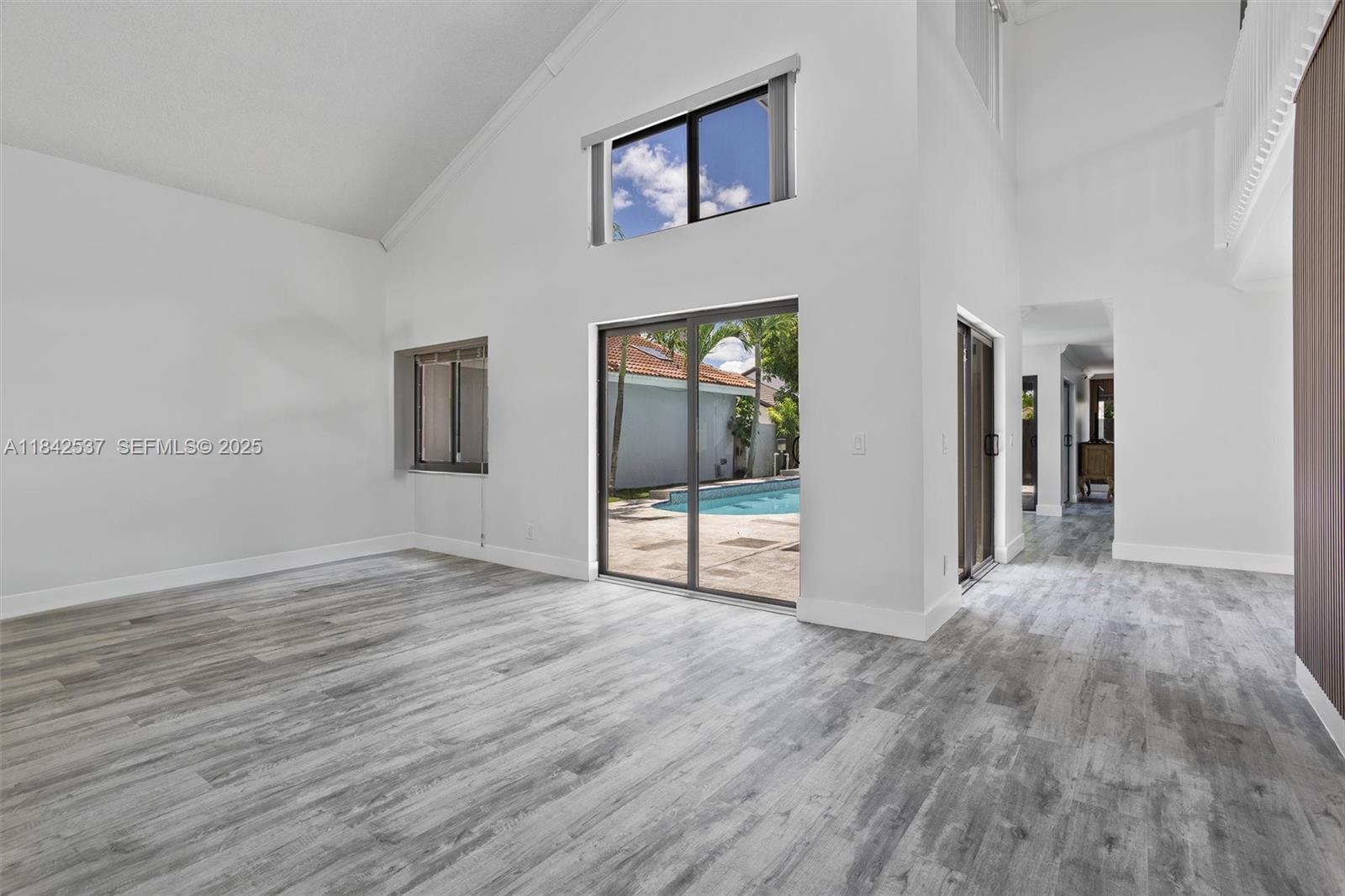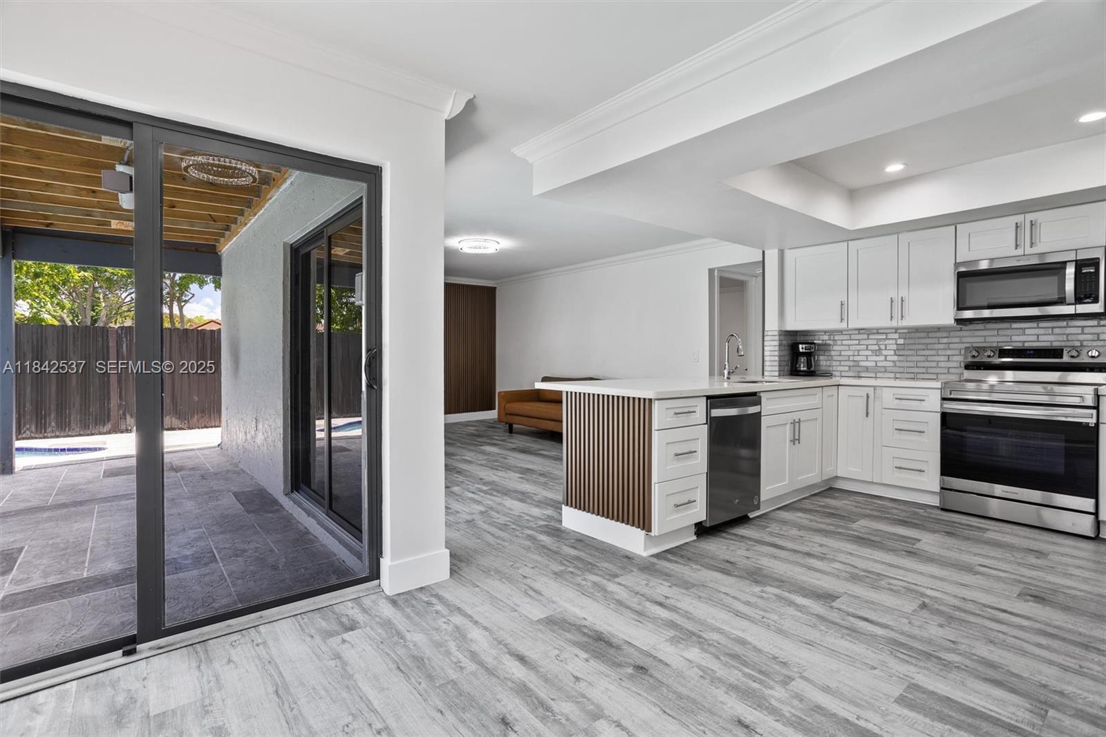 Welcome to The Moors – Fully renovated 2-story dream home in gated community! Located near the Palmetto Expressway, this 4BD/3BA home features a spacious loft, new roof (10-year warranty), impact windows, waterproof laminate flooring, renovated bathrooms, The updated kitchen has quartz counters, wood cabinets, stainless steel appliances, and a pass-through to the living area. One bedroom and full bath are on the first floor; remaining bedrooms and loft upstairs. Oversized master with walk-in closet and luxurious bath with tub and shower. Enjoy 24/7 security, low HOA, and resort-style amenities: clubhouse, gym, guesthouse, and lake great for fishing. Covered patio and pool-sized yard. Firm price – non-negotiable.