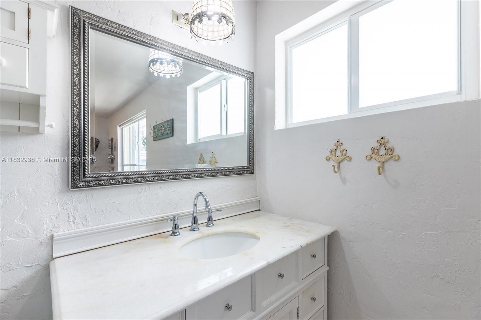 This spacious 3,252 total sq ft home boasts a 3 BD/2 BA main house with a 1 BD/1 BA detached guesthouse, situated on a 17,400 sq ft lot. The guesthouse offers rental income potential, while the lot provides ample parking for boats, campers, etc. The lush tropical oasis features a pool with new solar heating/cooling system and an aluminum pergola for al fresco dining or relaxation. Inside, discover high impact windows/doors, vinyl plank floors, and a stunning renovated custom kitchen with an expansive cooking island, quartz counters and top-tier Frigidaire/GE appliances. The main suite offers a sitting area and dual closets, and there are 2 private wells for water and sprinklers. Prime location with easy access to major highways and top-rated schools.