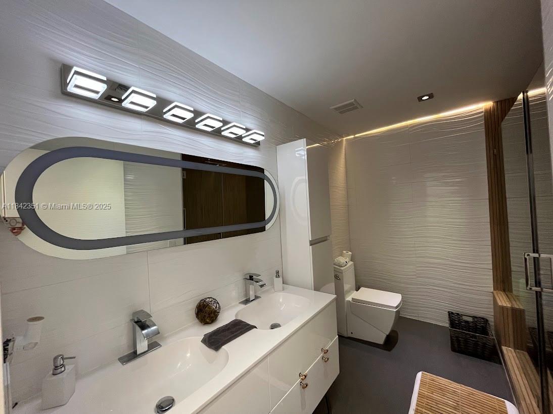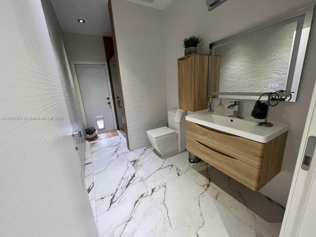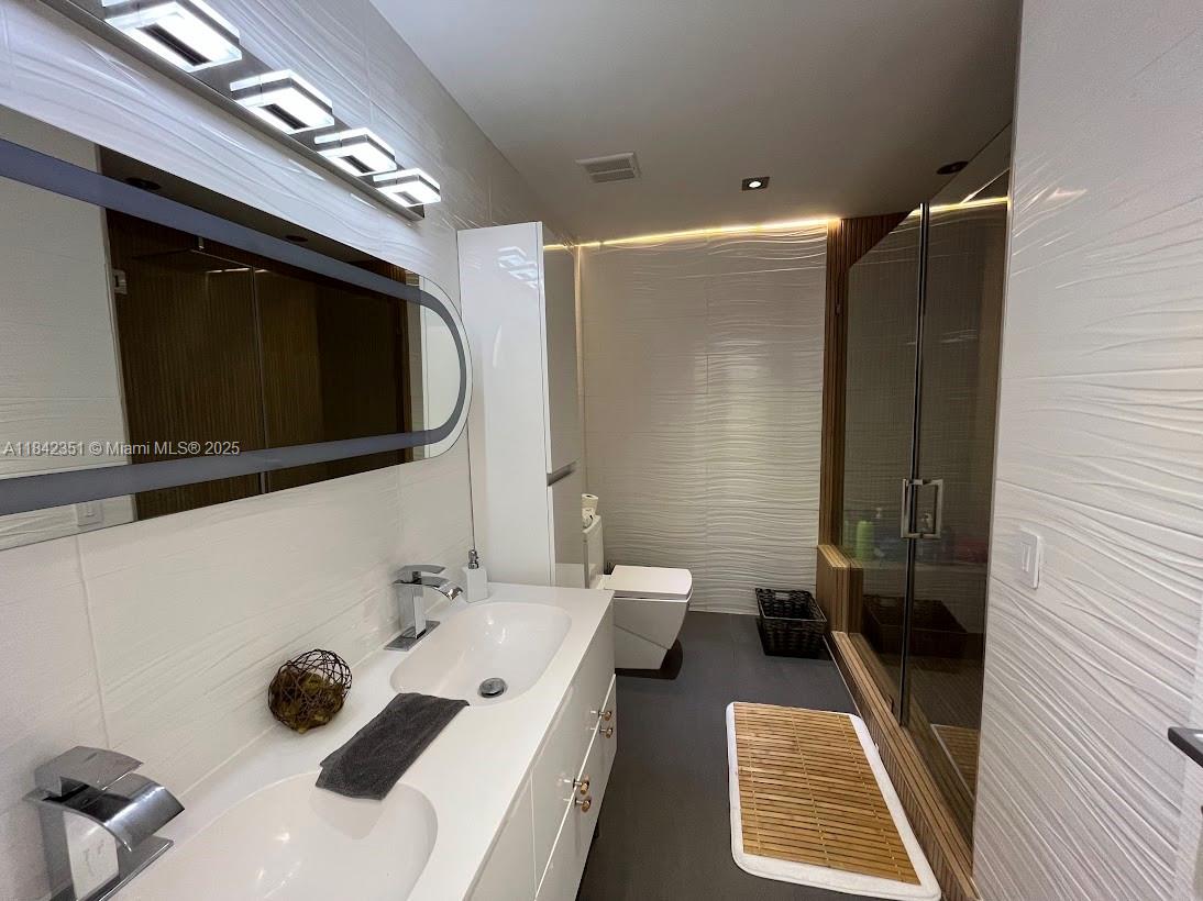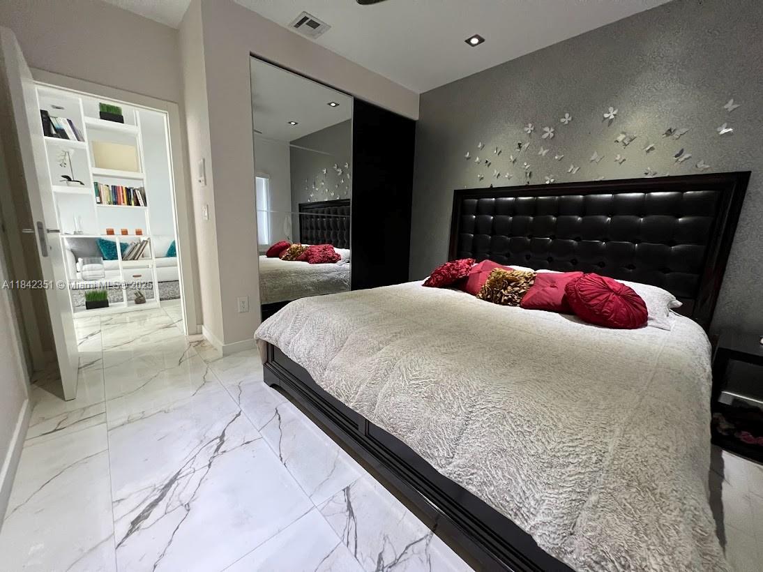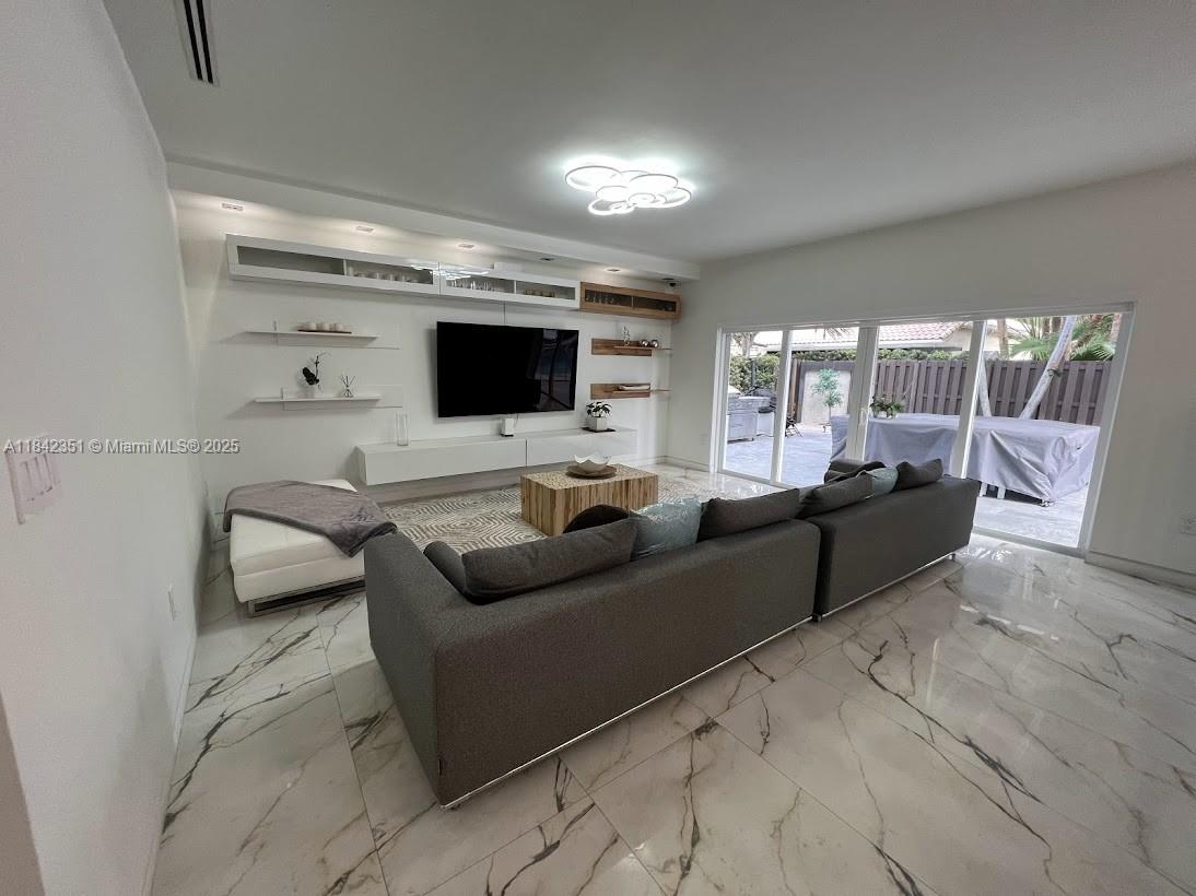 Modern open floor concept, completely remodeled. Glass and Brazilian wood staircase give this 5 bedrooms, 3 bath home an instant wow factor. Italian porcelain floors throughout, Italian marble floors in all bathrooms. LED lights in all kitchen cabinets. Master bedroom and bath created for comfort and relaxation on it's separate wing. Video surveillance cameras controlled directly from your phone. Patio with marble floors. 6 FT deep pool with safety gate in the must desired communit of Doral.