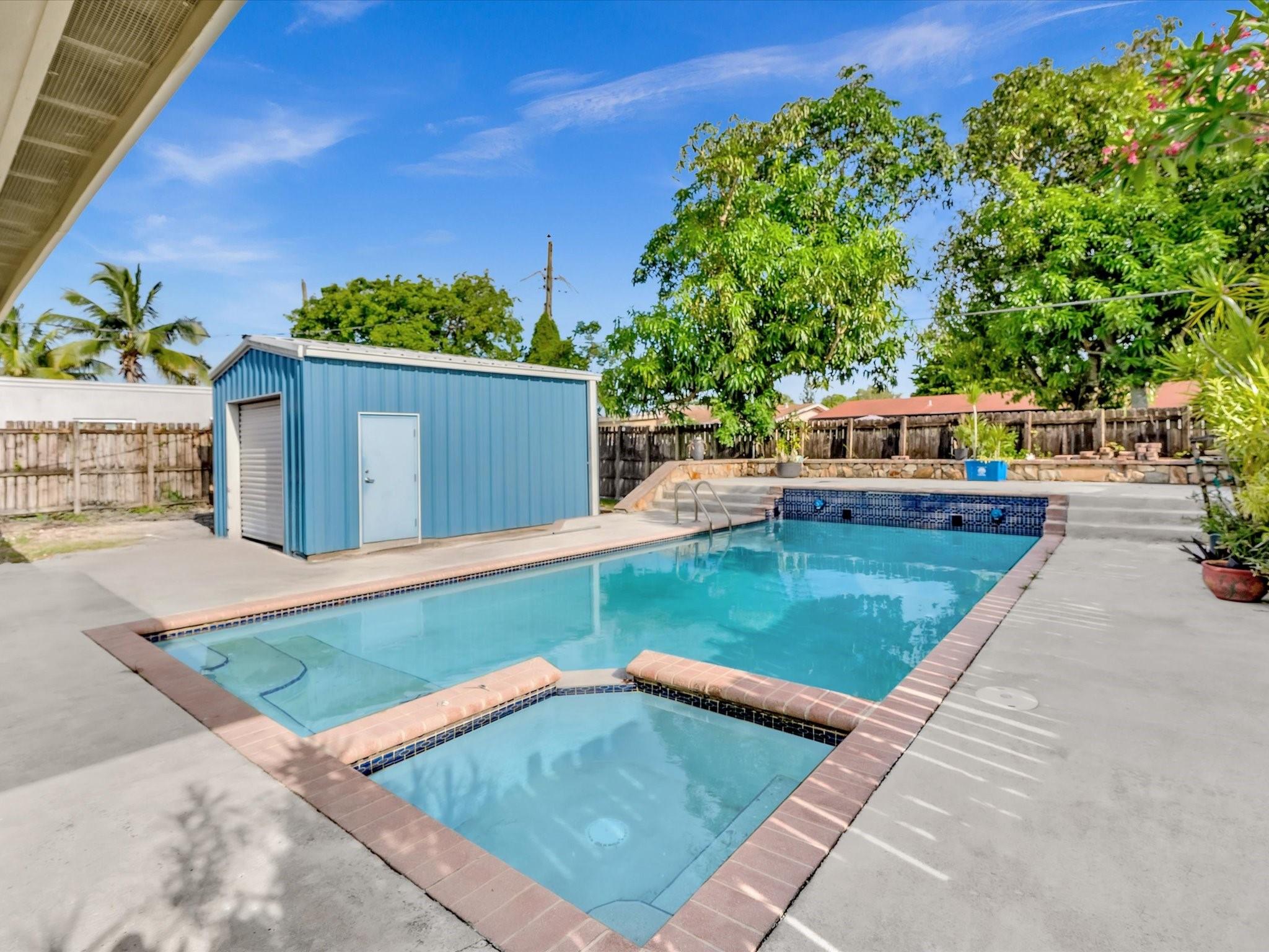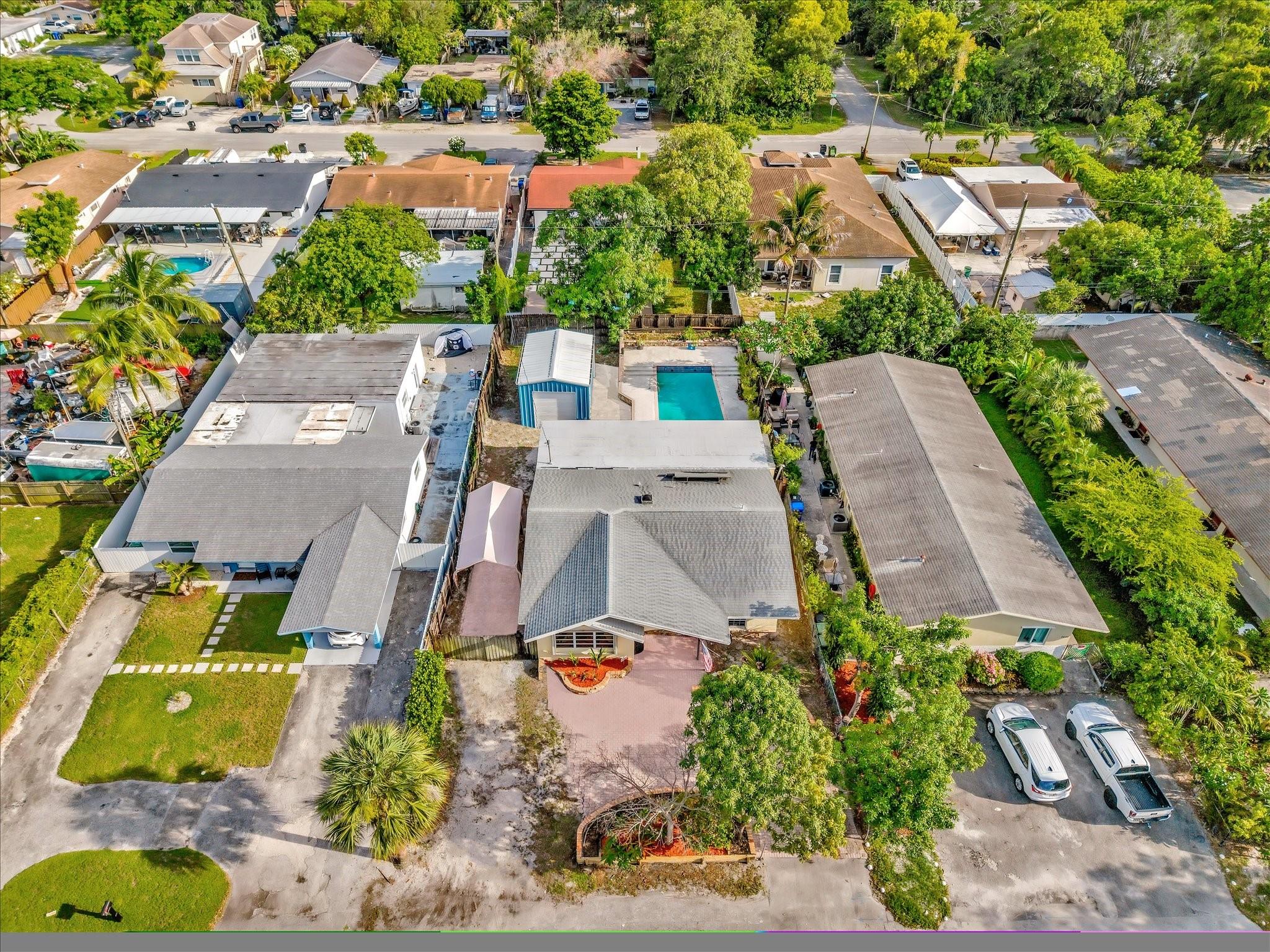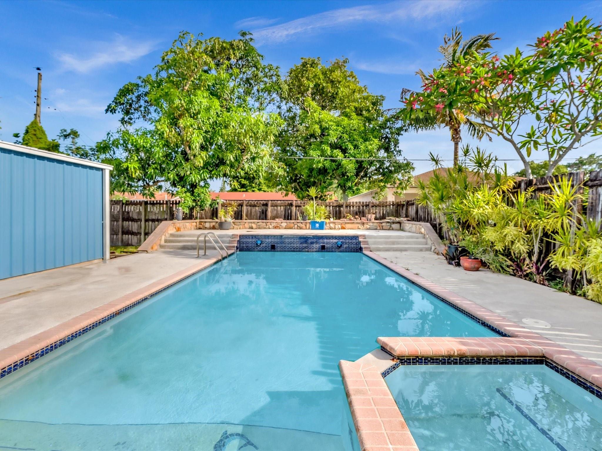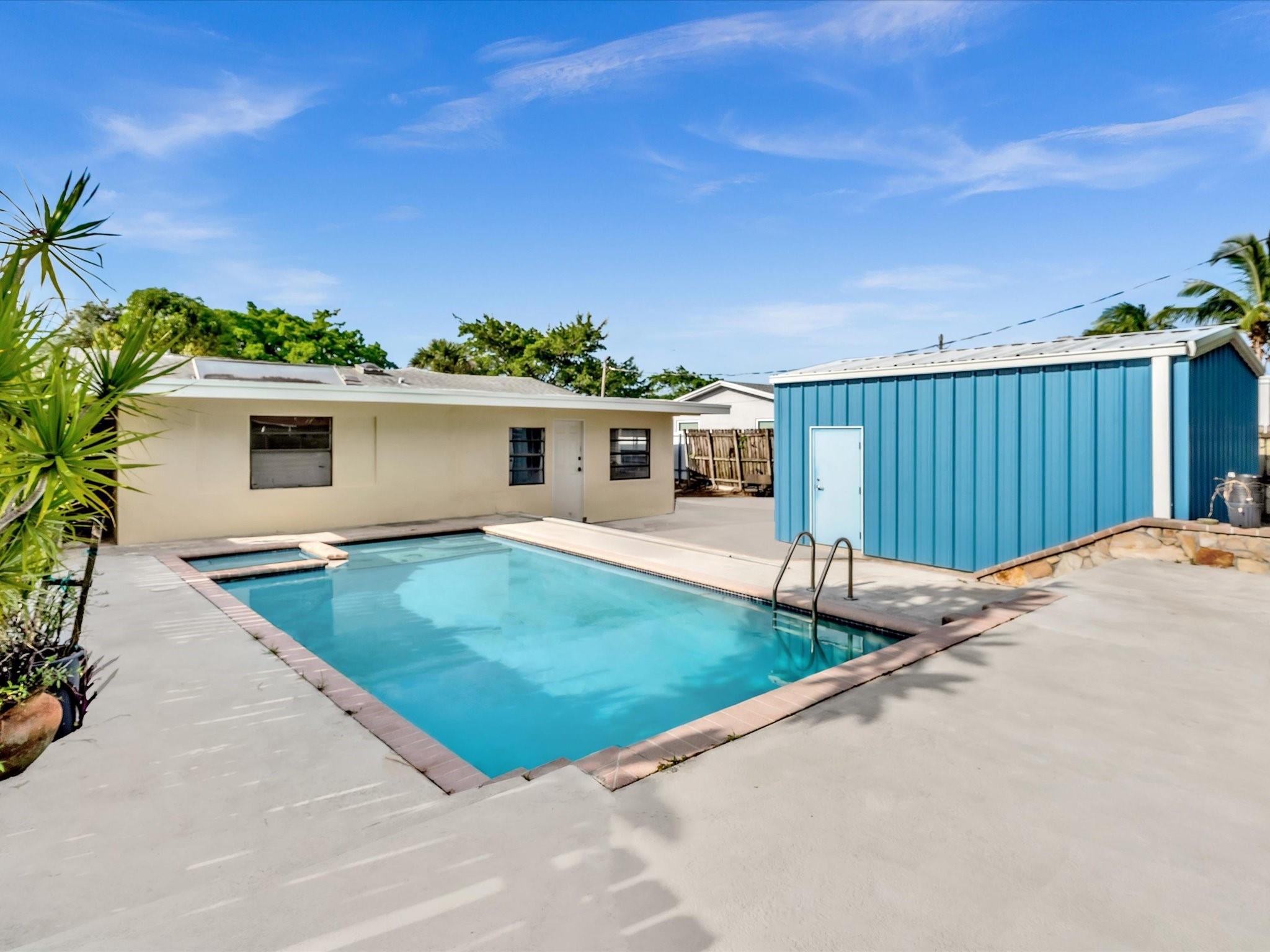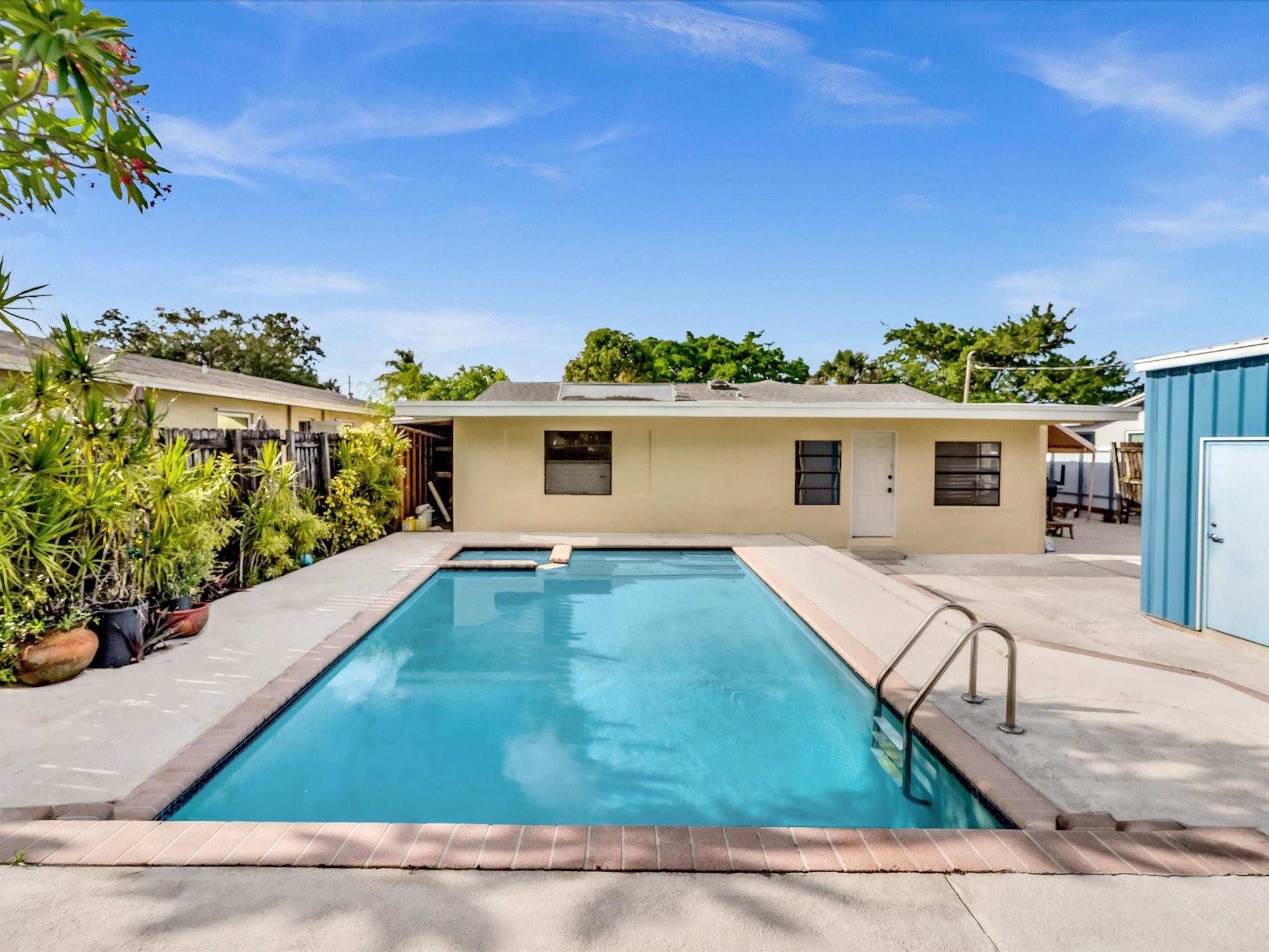 Wow! Wow! Wow! What an opportunity!! Spacious 3BD/2BA pool home in Flamingo Park—just minutes to downtown, marinas, and major highways! Inside, you’ll love the volume ceilings, oversized family room and den, and a galley kitchen with 42” wood cabinets, snack bar, skylight, and stainless steel appliances. Splash into your custom pool with water features or relax on the masonry deck built for sunny afternoons. The detached 15x20 garage with 10’ door and electric is ideal for a workshop, hobby space, or storage. 2022 AC, solar hot water heater, hurricane panels, 2012 main roof, 2025 flat roof, freshly painted exterior, and large laundry room. Renovated guest bath. No HOA. Not in a flood zone! Bring your vision—this one’s ready for your personal touch!