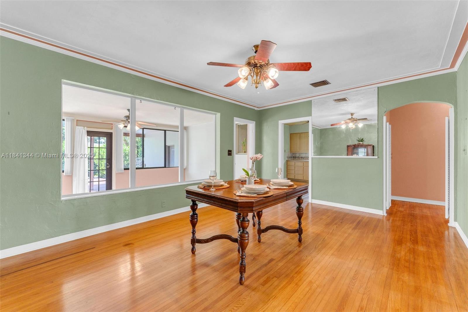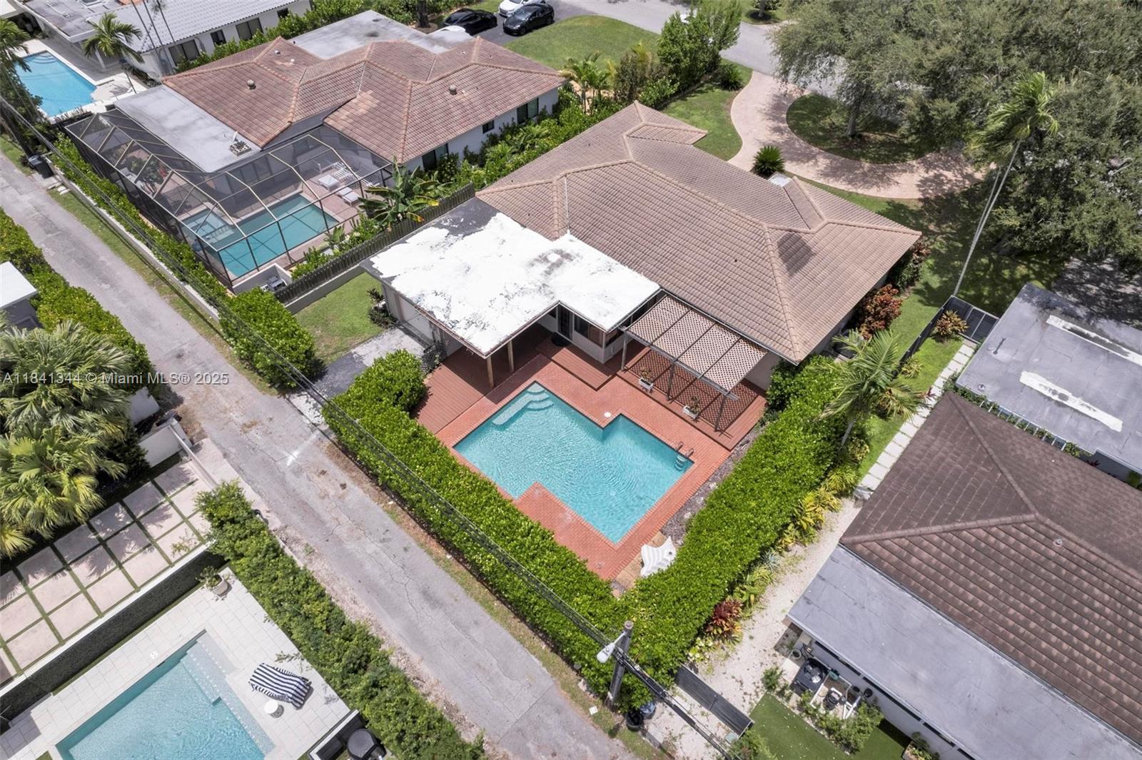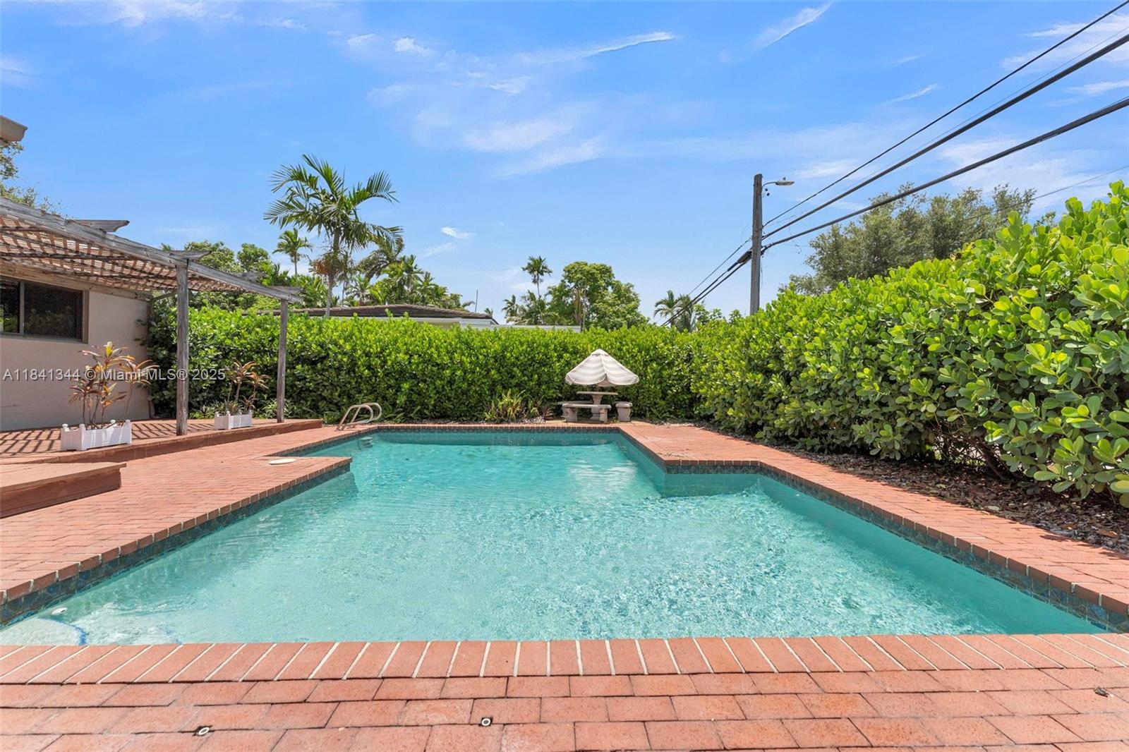 Amazing OPPORTUNITY in Miami Shores -East of Biscayne! Spacious layout is LARGER than tax records - 2,047 SF Living (See building sketch). This classic 3 bed/2 bath gem is nestled on a tree-lined street in one of the most desirable pockets. Lovingly cared for & cherished by the same family for decades, the split floor plan features original Dade Pine wood floors, impact windows, & a sun-drenched Florida room—perfect for relaxing or entertaining. Lounge by the sparkling POOL & covered deck, surrounded by lush landscaping. One-car garage with private alley access offers flexibility for parking, storage, or expansion. Great natural light & a warm, welcoming vibe. Just a short stroll to wide-open Biscayne Bay & minutes to top-rated schools, restaurants, beaches. Own a neighborhood classic!