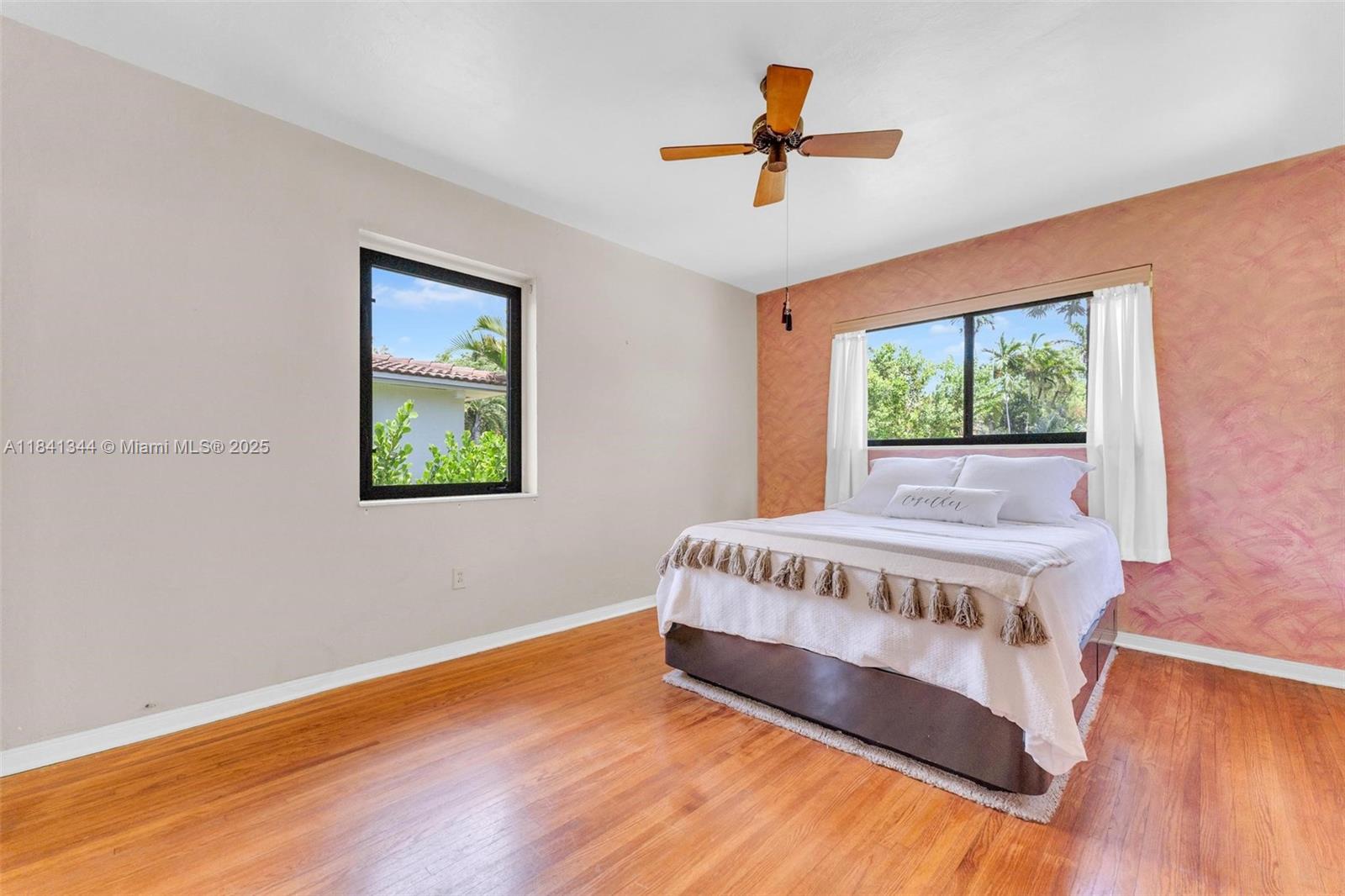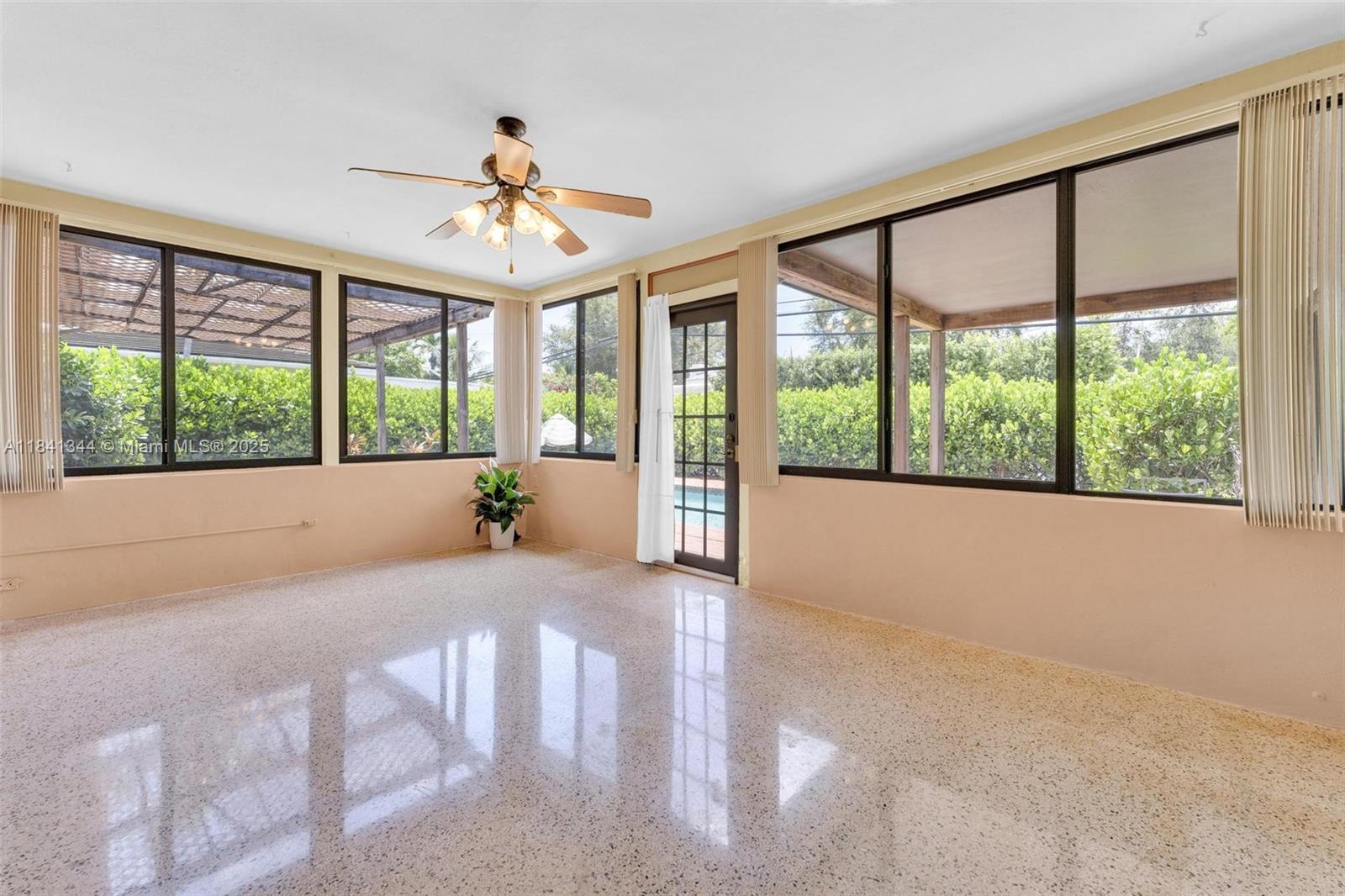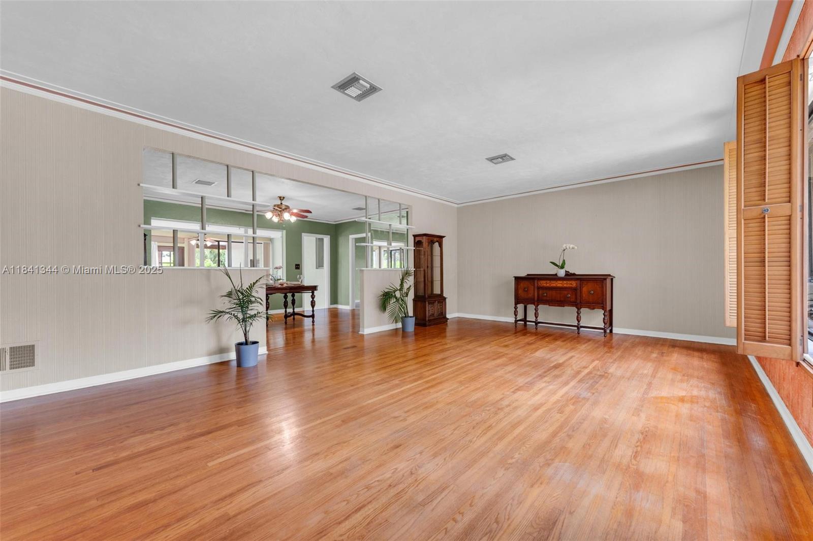 Amazing OPPORTUNITY in Miami Shores -East of Biscayne! Spacious layout is LARGER than tax records - 2,047 SF Living (See building sketch). This classic 3 bed/2 bath gem is nestled on a tree-lined street in one of the most desirable pockets. Lovingly cared for & cherished by the same family for decades, the split floor plan features original Dade Pine wood floors, impact windows, & a sun-drenched Florida room—perfect for relaxing or entertaining. Lounge by the sparkling POOL & covered deck, surrounded by lush landscaping. One-car garage with private alley access offers flexibility for parking, storage, or expansion. Great natural light & a warm, welcoming vibe. Just a short stroll to wide-open Biscayne Bay & minutes to top-rated schools, restaurants, beaches. Own a neighborhood classic!