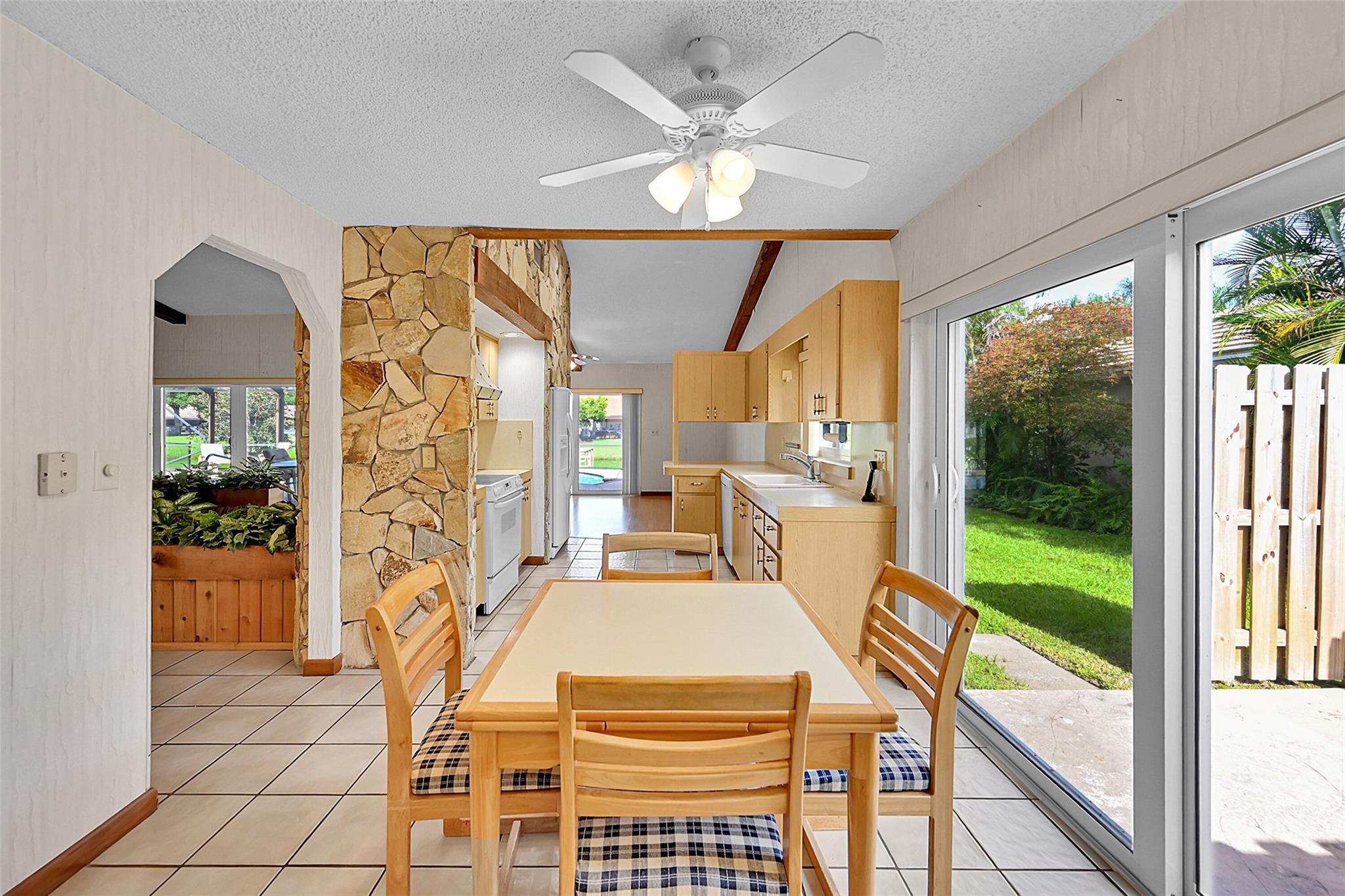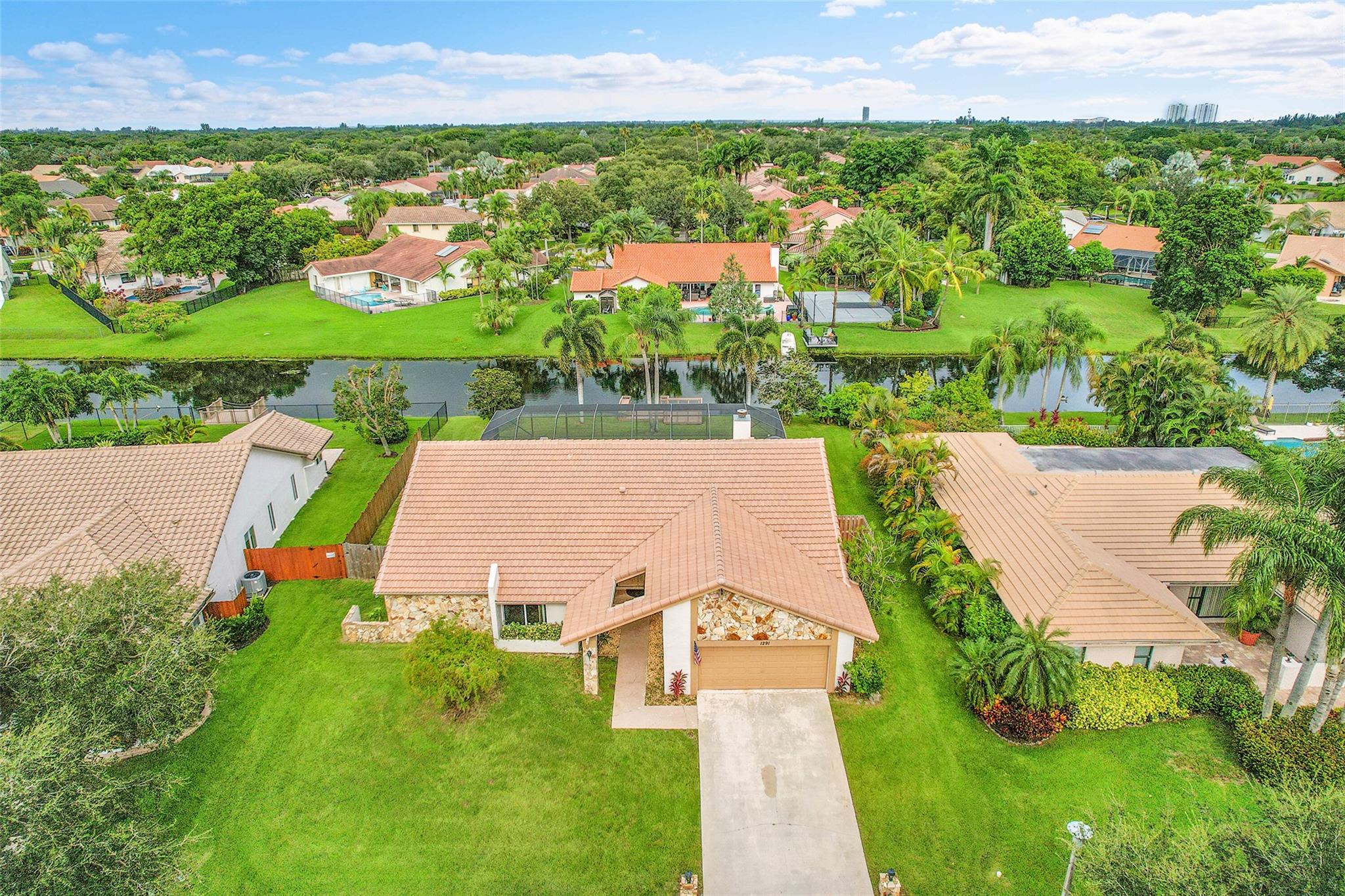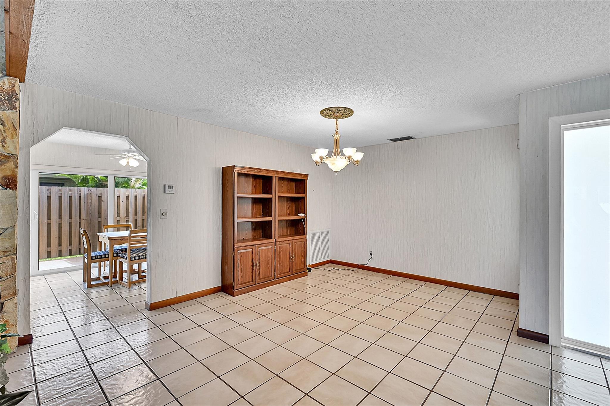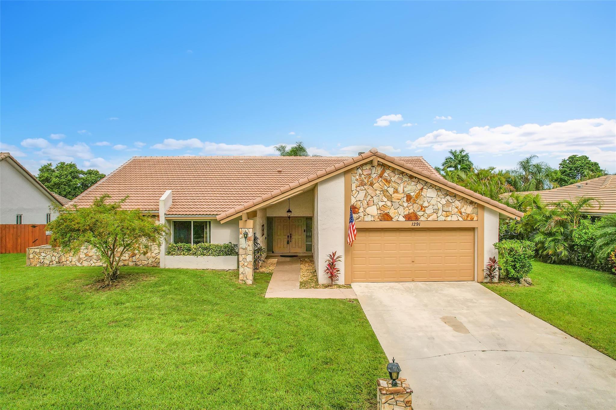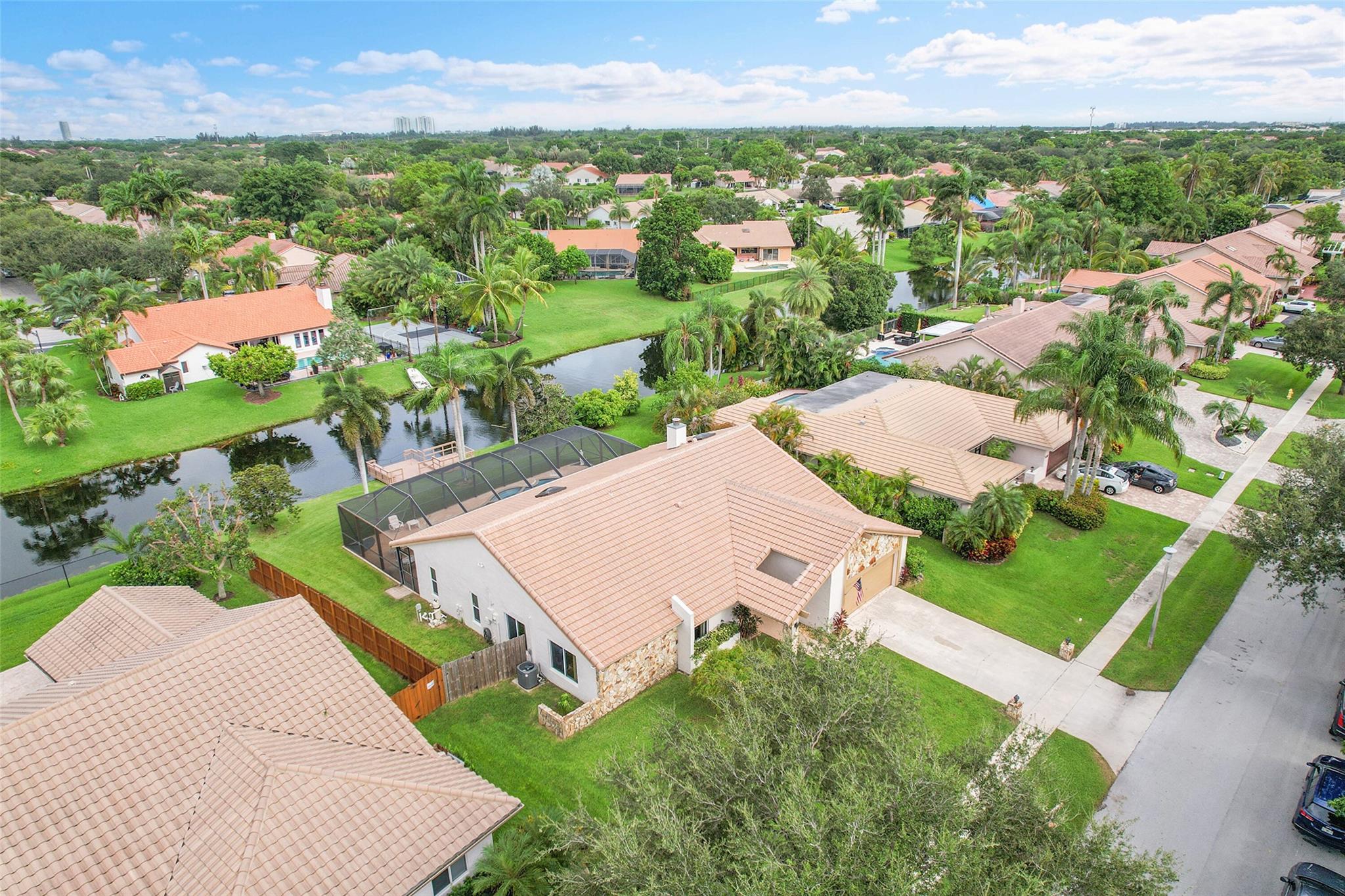 Light, bright & beautifully spacious! Located in sought-after Jacaranda Lakes, this inviting home welcomes you with soaring vaulted ceilings, a formal dining area, open family room, wet bar, and a cozy sunken conversation area with fireplace and natural stone wall. The large kitchen offers a skylight, breakfast nook & private patio—perfect for morning coffee. Enjoy sunset views from the oversized screened pool, ideal for entertaining, overlooking serene waterfront & private dock. 4 beds, 2 baths, NEW barrel tile roof, 2 new A/C units, impact windows/doors, laundry room, 2-car garage & lake-fed sprinkler system. Peaceful streets, friendly neighbors, and lush surroundings make this the perfect place to call home—just bring your personal touch and start making memories!