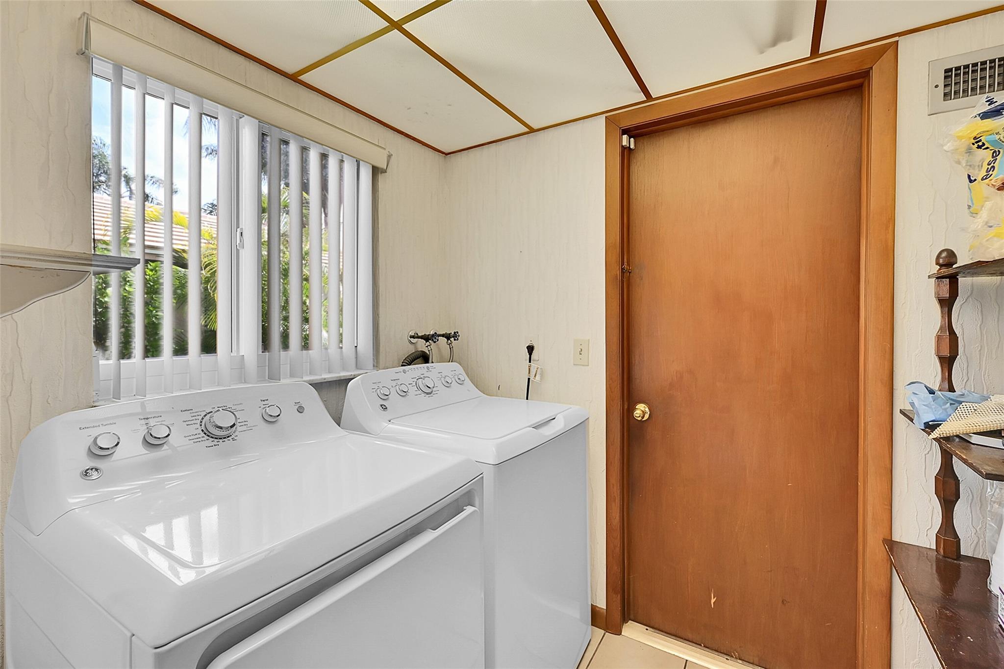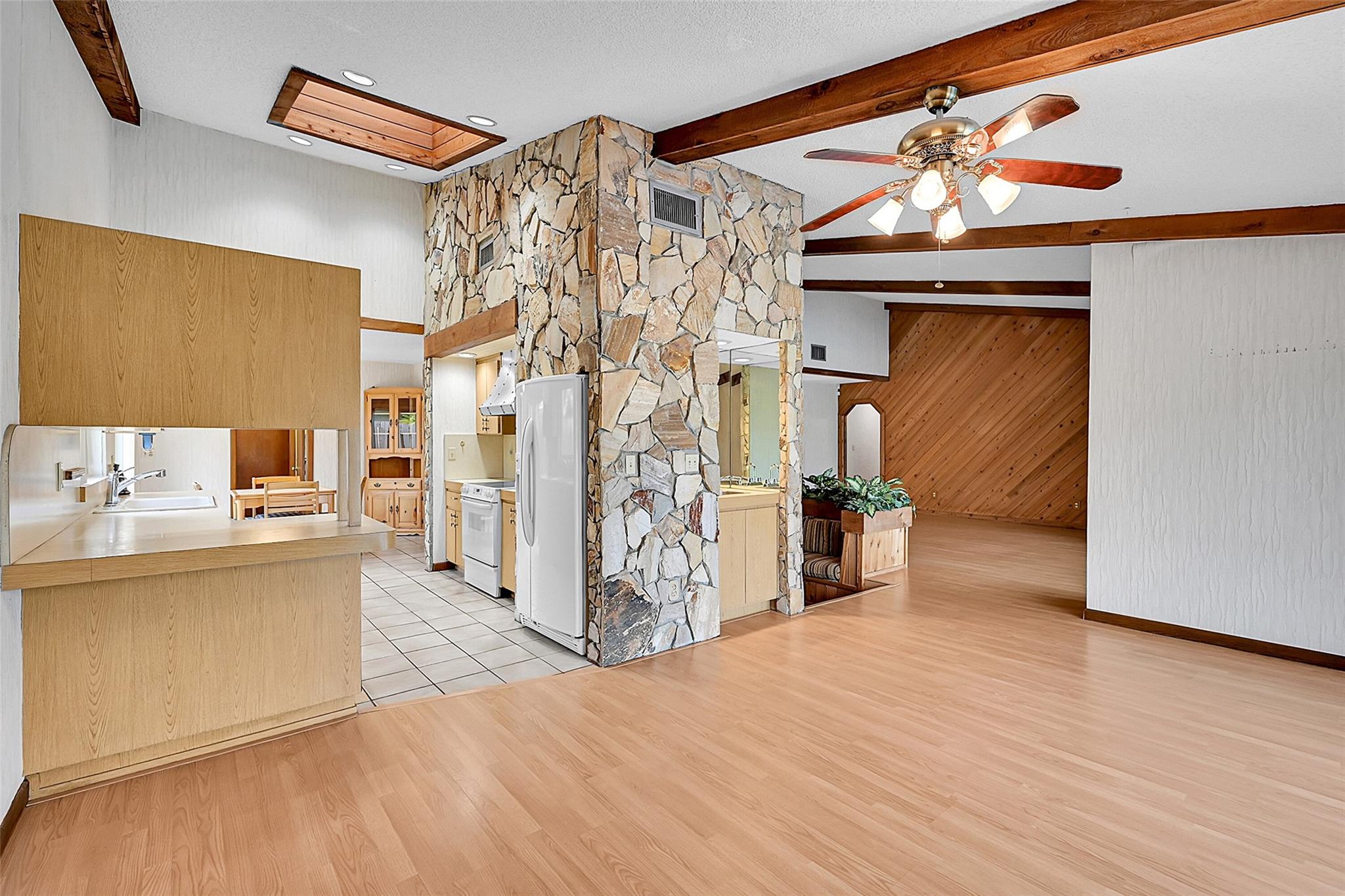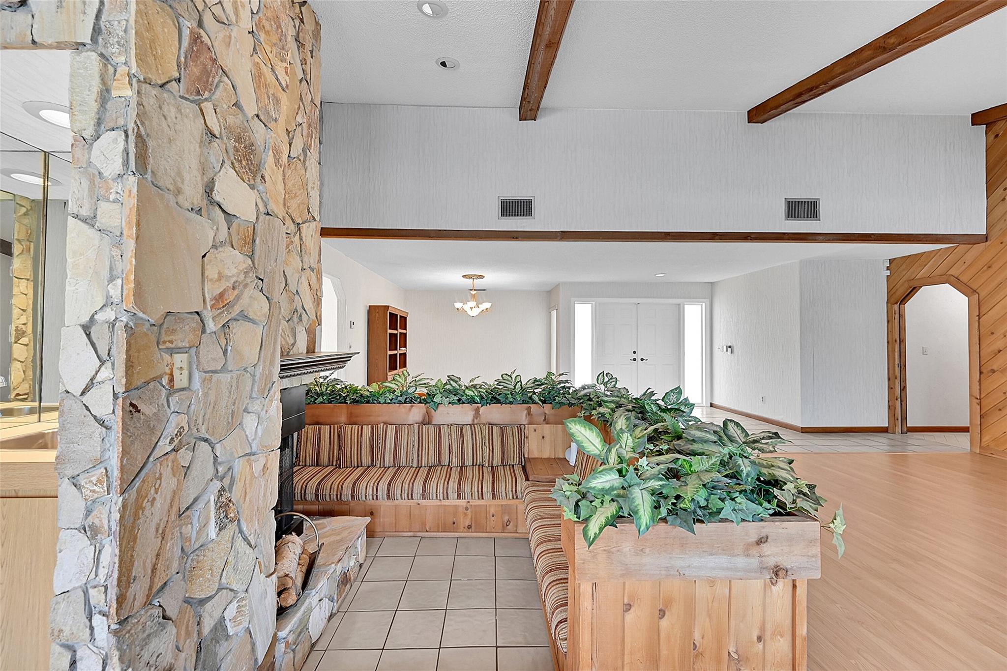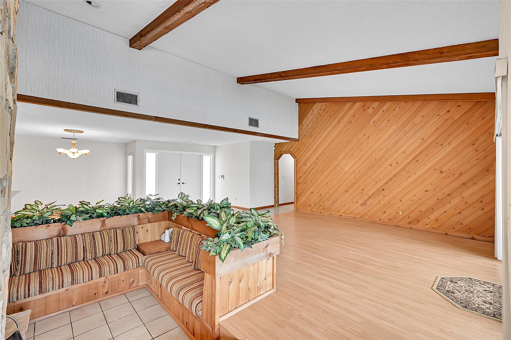 Light, bright & beautifully spacious! Located in sought-after Jacaranda Lakes, this inviting home welcomes you with soaring vaulted ceilings, a formal dining area, open family room, wet bar, and a cozy sunken conversation area with fireplace and natural stone wall. The large kitchen offers a skylight, breakfast nook & private patio—perfect for morning coffee. Enjoy sunset views from the oversized screened pool, ideal for entertaining, overlooking serene waterfront & private dock. 4 beds, 2 baths, NEW barrel tile roof, 2 new A/C units, impact windows/doors, laundry room, 2-car garage & lake-fed sprinkler system. Peaceful streets, friendly neighbors, and lush surroundings make this the perfect place to call home—just bring your personal touch and start making memories!