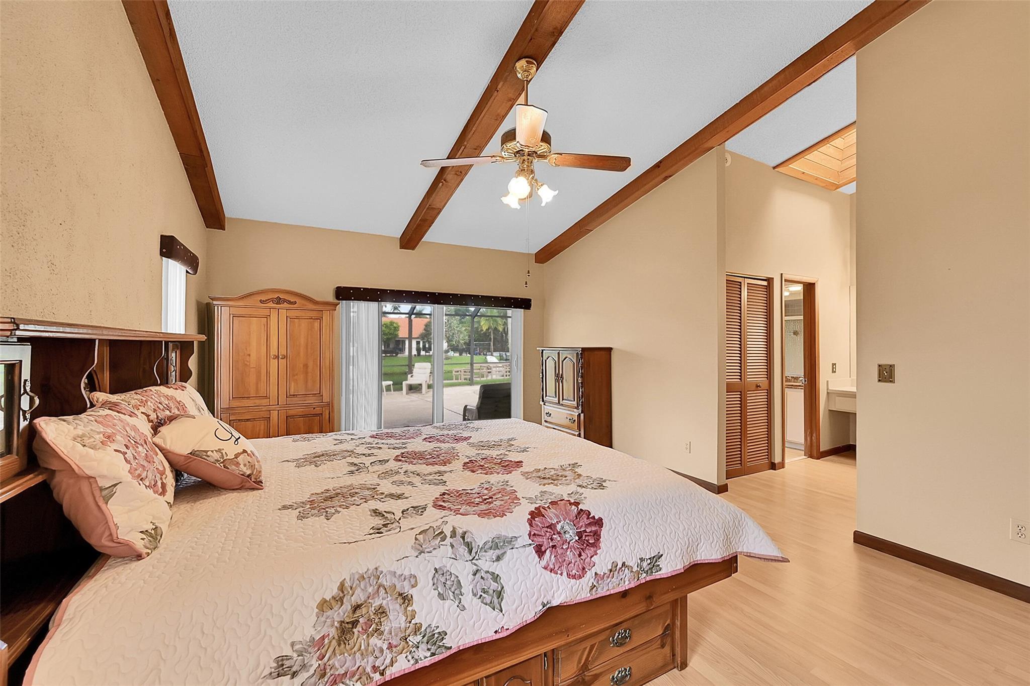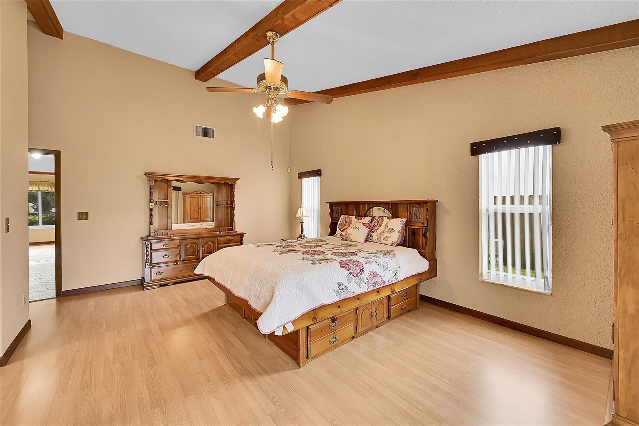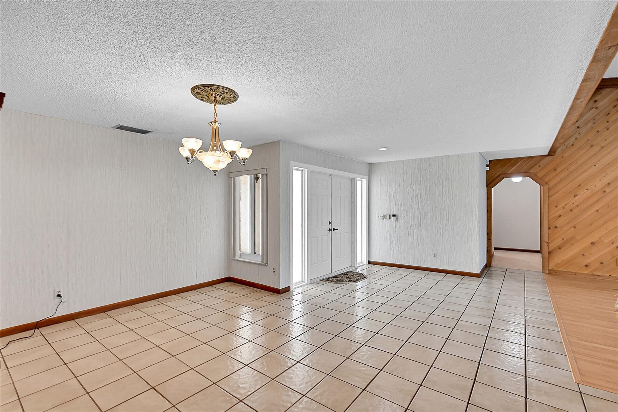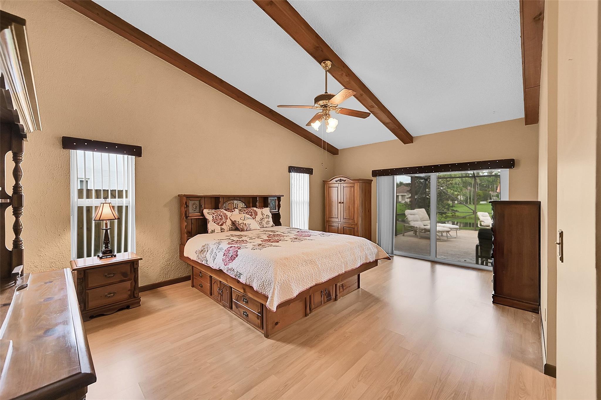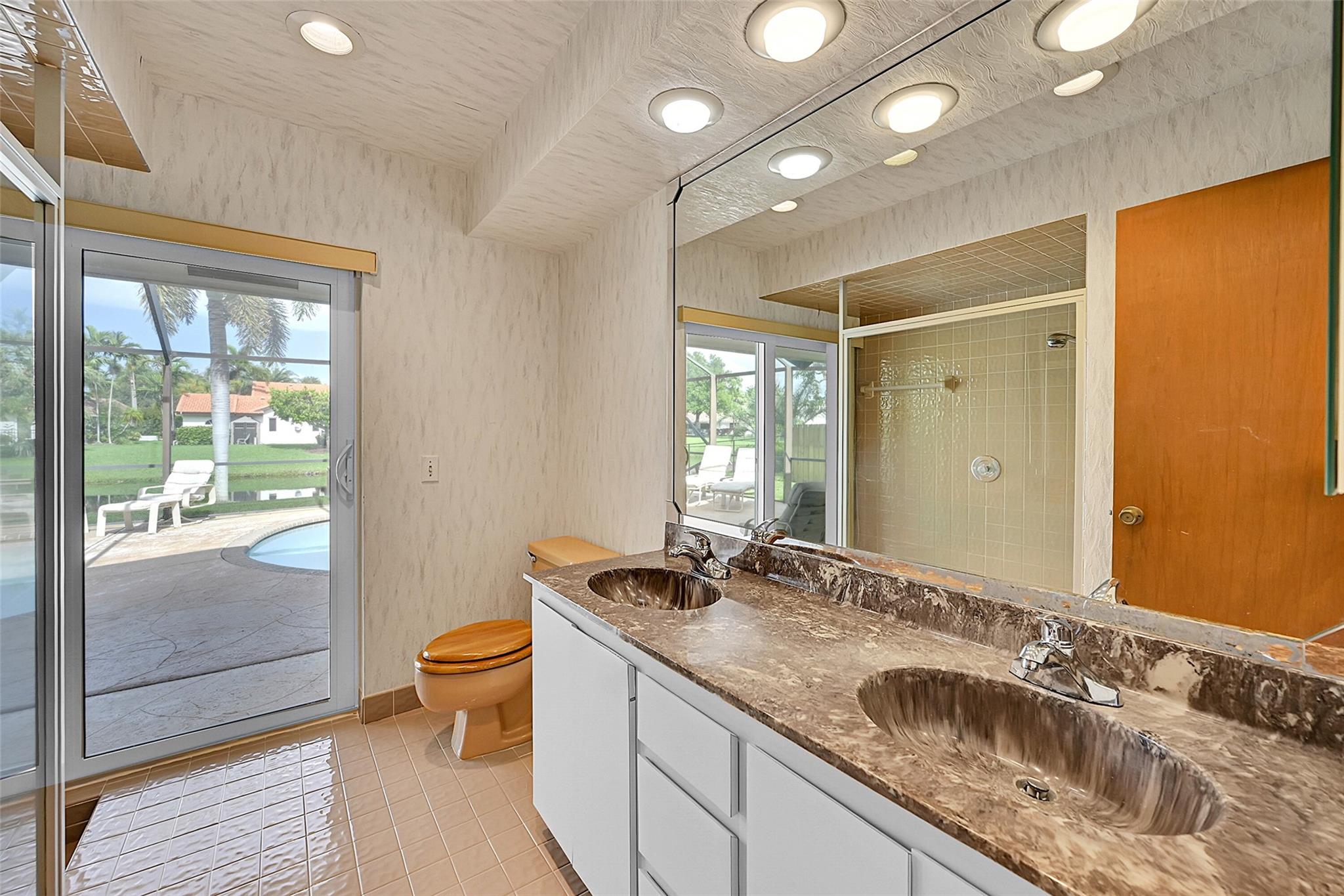 Light, bright & beautifully spacious! Located in sought-after Jacaranda Lakes, this inviting home welcomes you with soaring vaulted ceilings, a formal dining area, open family room, wet bar, and a cozy sunken conversation area with fireplace and natural stone wall. The large kitchen offers a skylight, breakfast nook & private patio—perfect for morning coffee. Enjoy sunset views from the oversized screened pool, ideal for entertaining, overlooking serene waterfront & private dock. 4 beds, 2 baths, NEW barrel tile roof, 2 new A/C units, impact windows/doors, laundry room, 2-car garage & lake-fed sprinkler system. Peaceful streets, friendly neighbors, and lush surroundings make this the perfect place to call home—just bring your personal touch and start making memories!