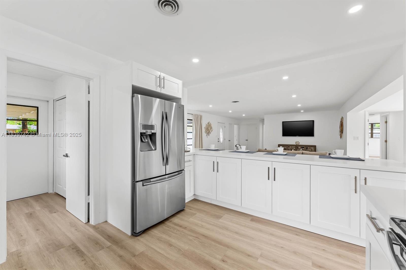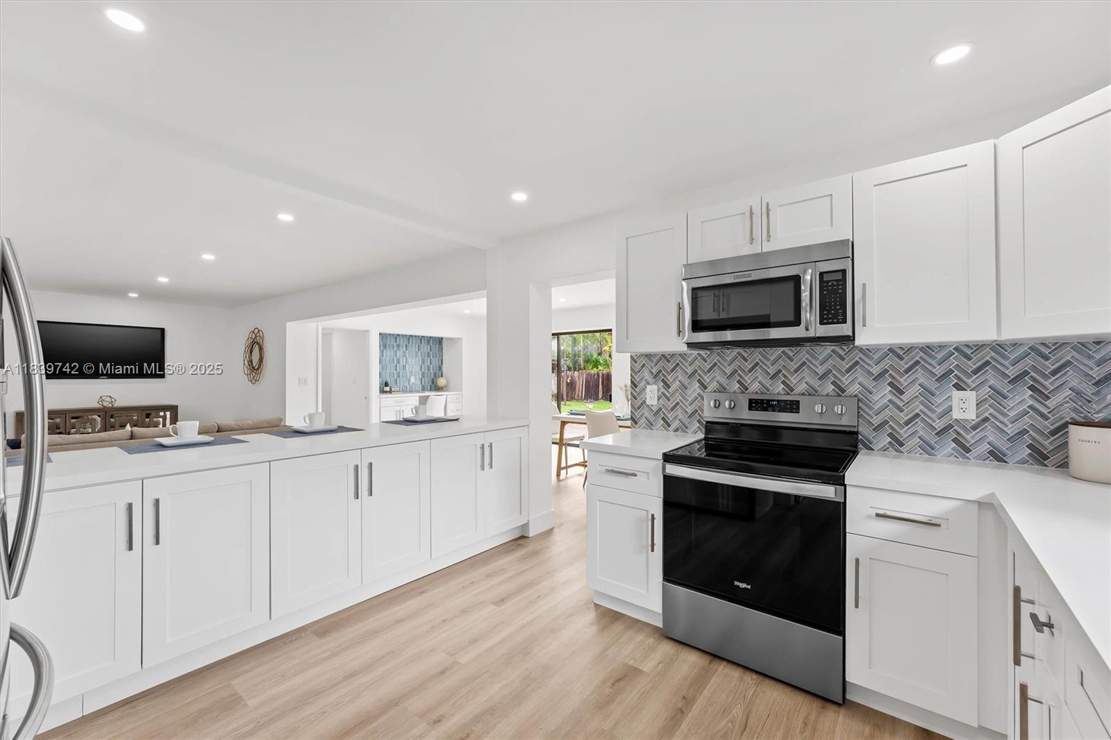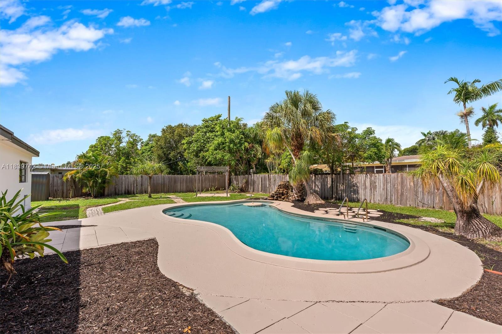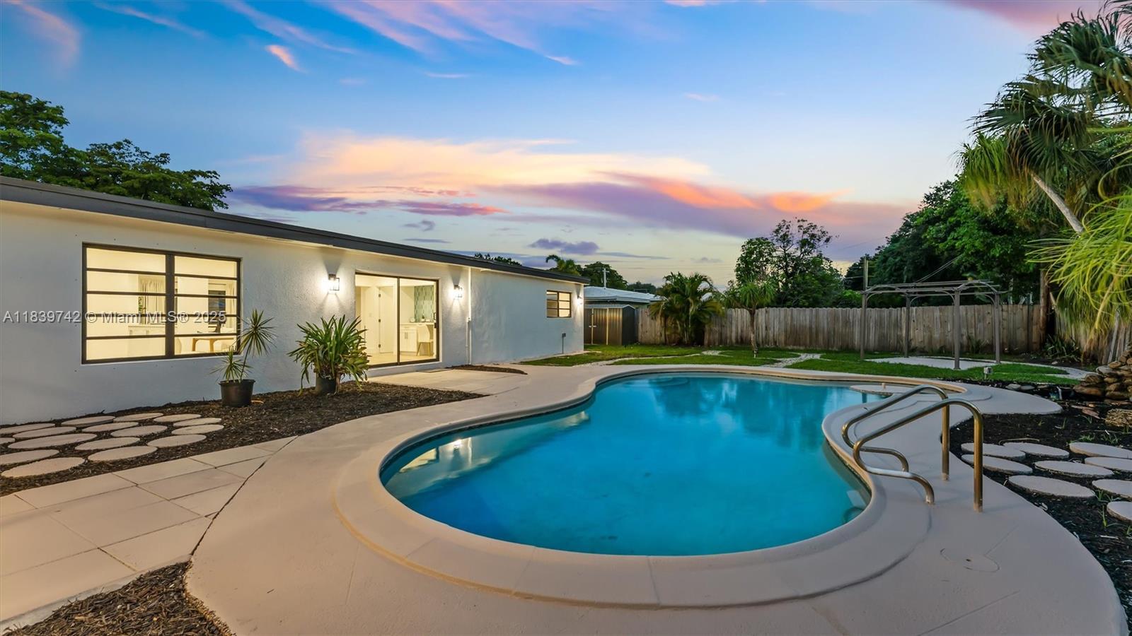 The largest home for the price in the neighborhood—nearly 2,500 sqft of beautifully remodeled living space! This modern stunner features TWO ensuite bedrooms, including a private-entry suite with its own living area, double vanity bathroom, and serene pool views—perfect for in-laws or rental income. The open kitchen impresses with a large peninsula, stainless steel appliances, and a walk-in pantry. Enjoy luxury vinyl flooring, walk-in closets, recessed lighting, and an office that can flex into a sleek bar. The fully fenced backyard oasis boasts an in-ground pool, charming paver walkways, water fountain, and pergola. This home offers unmatched space, style, and versatility—don’t miss it!