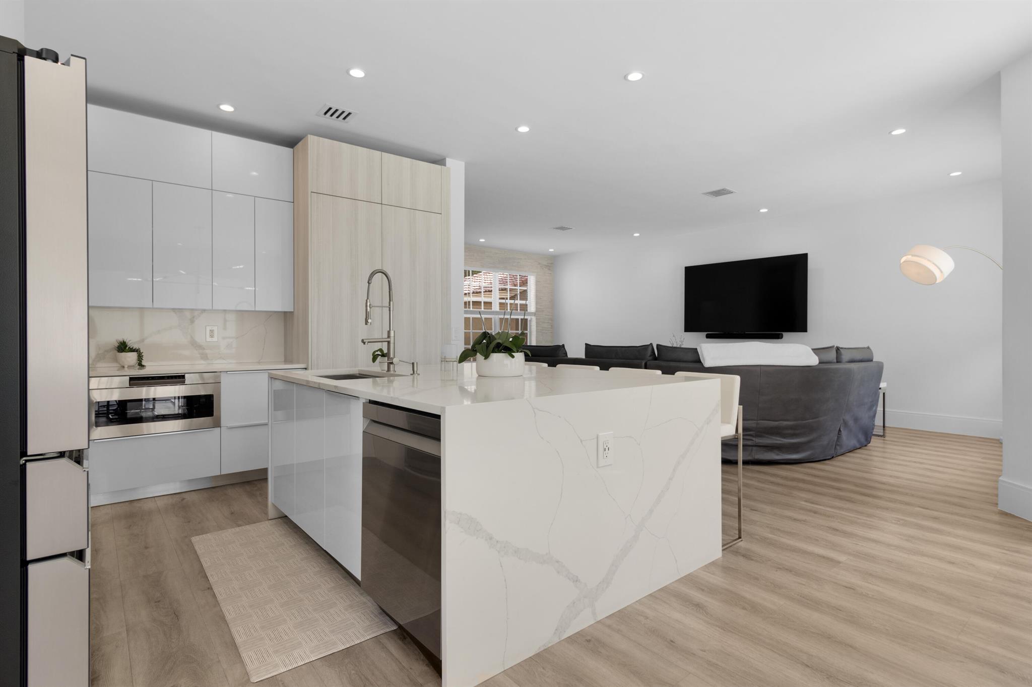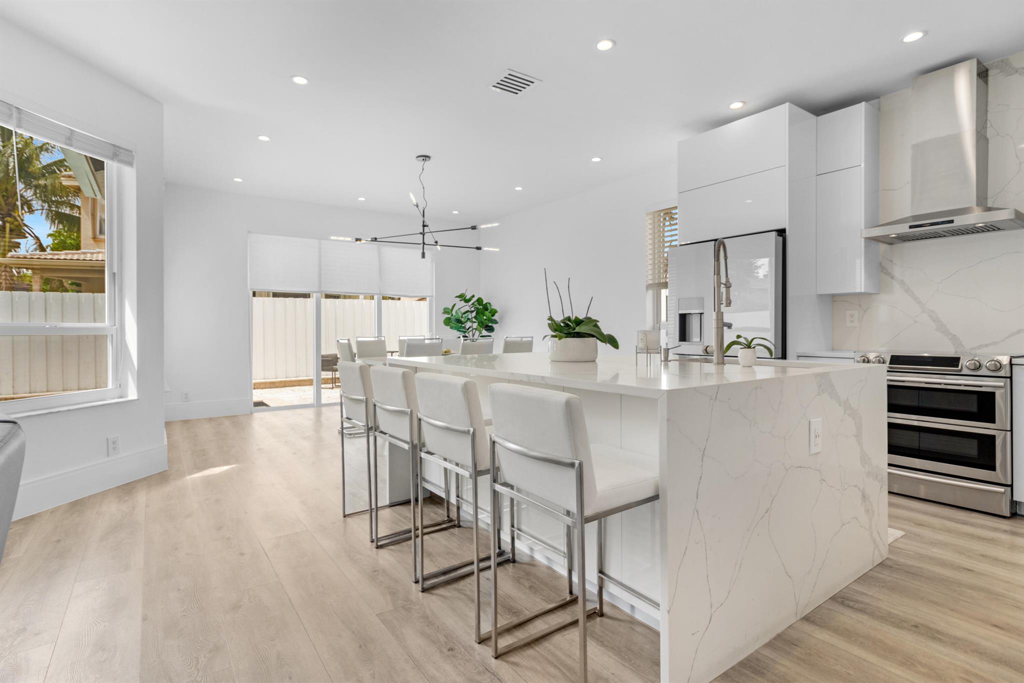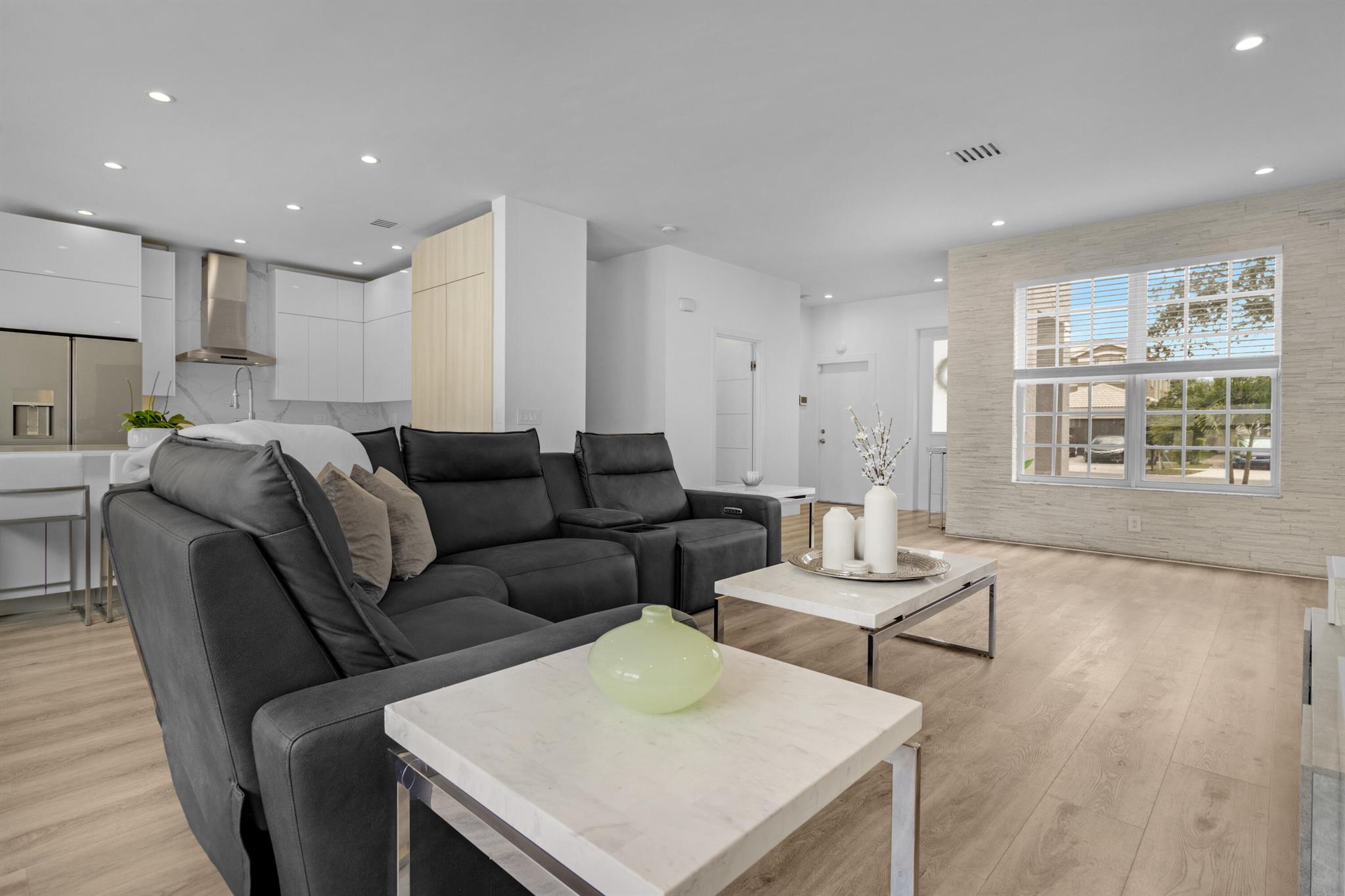 Step into a home that feels like it was designed just for you. Fully remodeled with care and intention, this 4-bed, 3-full bath retreat is a rare find in a gated community brimming with energy, amenities, and charm. Inside, natural light pours through expansive windows, illuminating the open-concept living space that effortlessly blends style and function. The kitchen is a showstopper, anchored by a striking quartz island and finished with sleek appliances and modern flair, it's made for both morning coffee rituals and lively dinner parties. One of the home's most thoughtful features is the downstairs bedroom with a full bath, perfect for guests, in-laws, or creating your dream home office. Upstairs, the private quarters continue the theme of comfort and elegance, with beautifully
