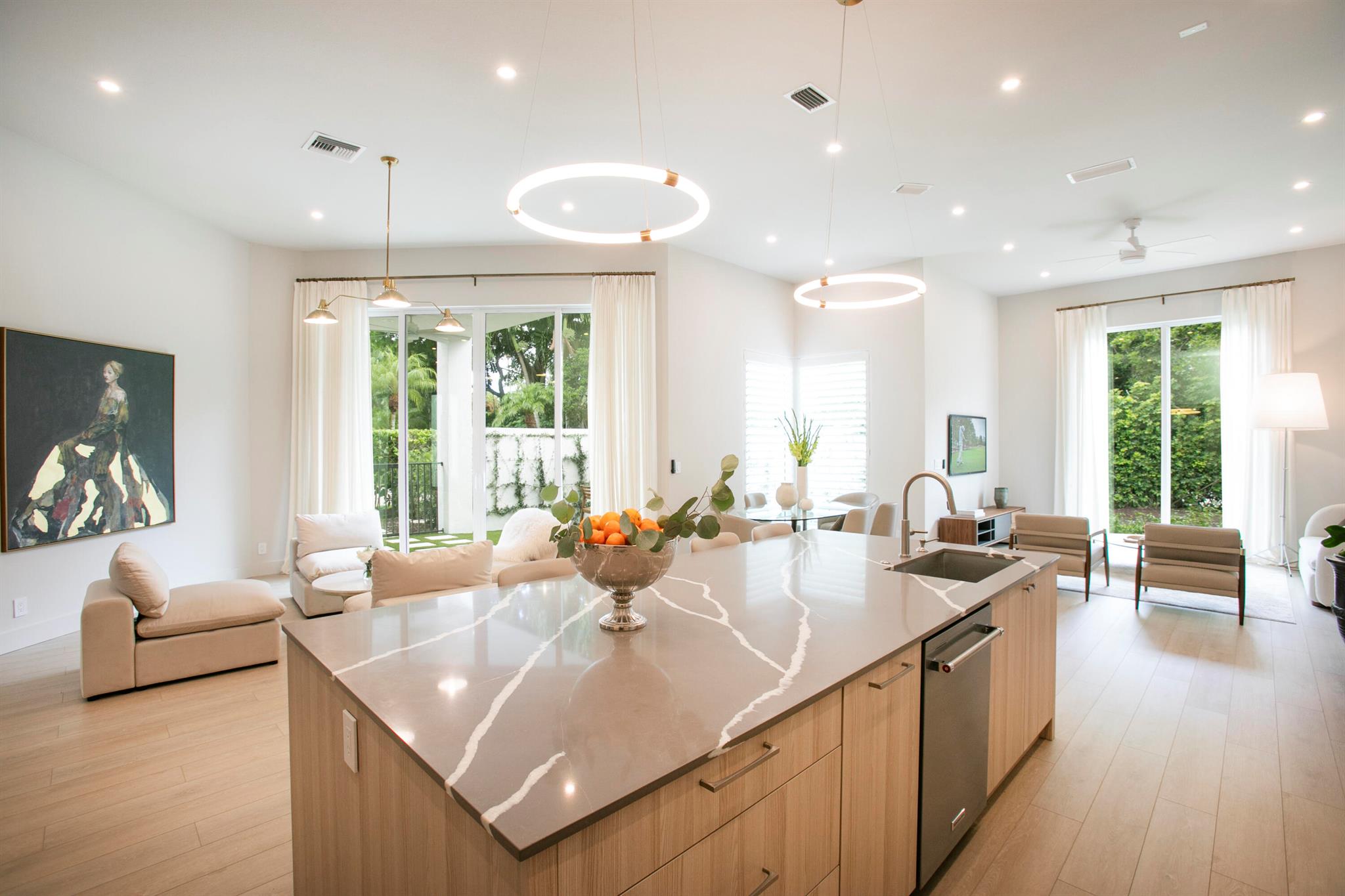 PRICE IMPROVEMENT!!! Step into refined living with this completely transformed GOLF home on a corner lot in the prestigious Ballenisles Country Club community. With final permit secured, move right in to this turn key designer home. This 3 bedroom residence offers 3 ensuite baths, providing privacy and elegance in a completely redesigned and open floorplan.Twelve foot ceilings throughout create openness and volume, as you enter through 10-foot tall double doors into a newly expanded sunlit living area - featuring 10-foot windows now extending to the floor.