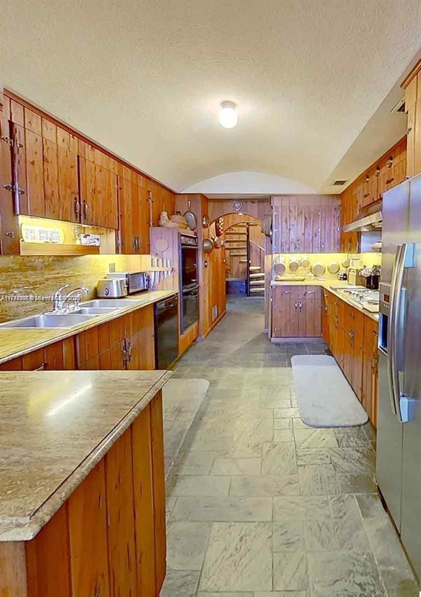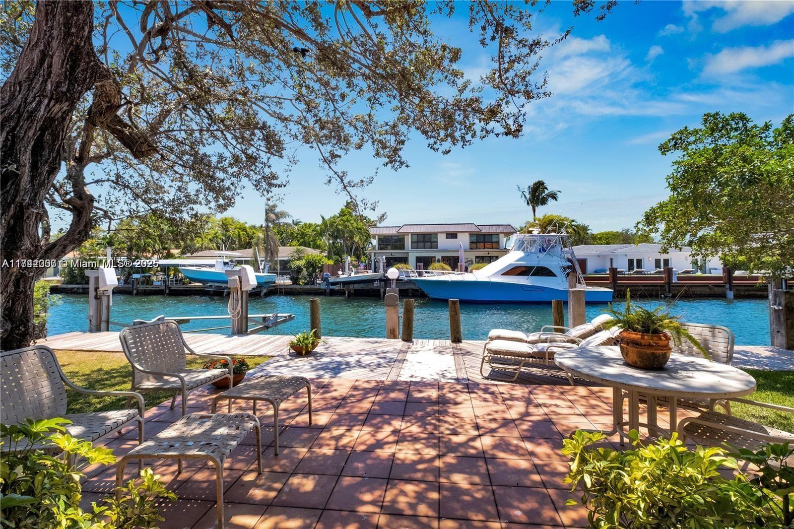 Immerse yourself in this amazing canal-front 2-story townhome with its own private 60ft dock & additional private lot. Seconds from open Bay with no bridges & ocean access within minutes. A boater’s paradise. The entry foyer leads to a huge living area with 20ft soaring ceilings & a breathtaking floor-to-ceiling stone fireplace. Slate floors, a wet bar, and wine storage for over 100 bottles. French doors open onto a covered patio & a newer deck. Eat-in kitchen fit for a chef. Full-sized laundry room. A spiral staircase leads to a large open loft & primary suite, which includes 2 walk-in closets, a dressing room, a luxurious steam shower/jacuzzi spa tub. 2-car garage, & Security system. Can be converted to 3 or 4 bedrooms. Close to golf course, Bal Harbor, beaches, design district & more.