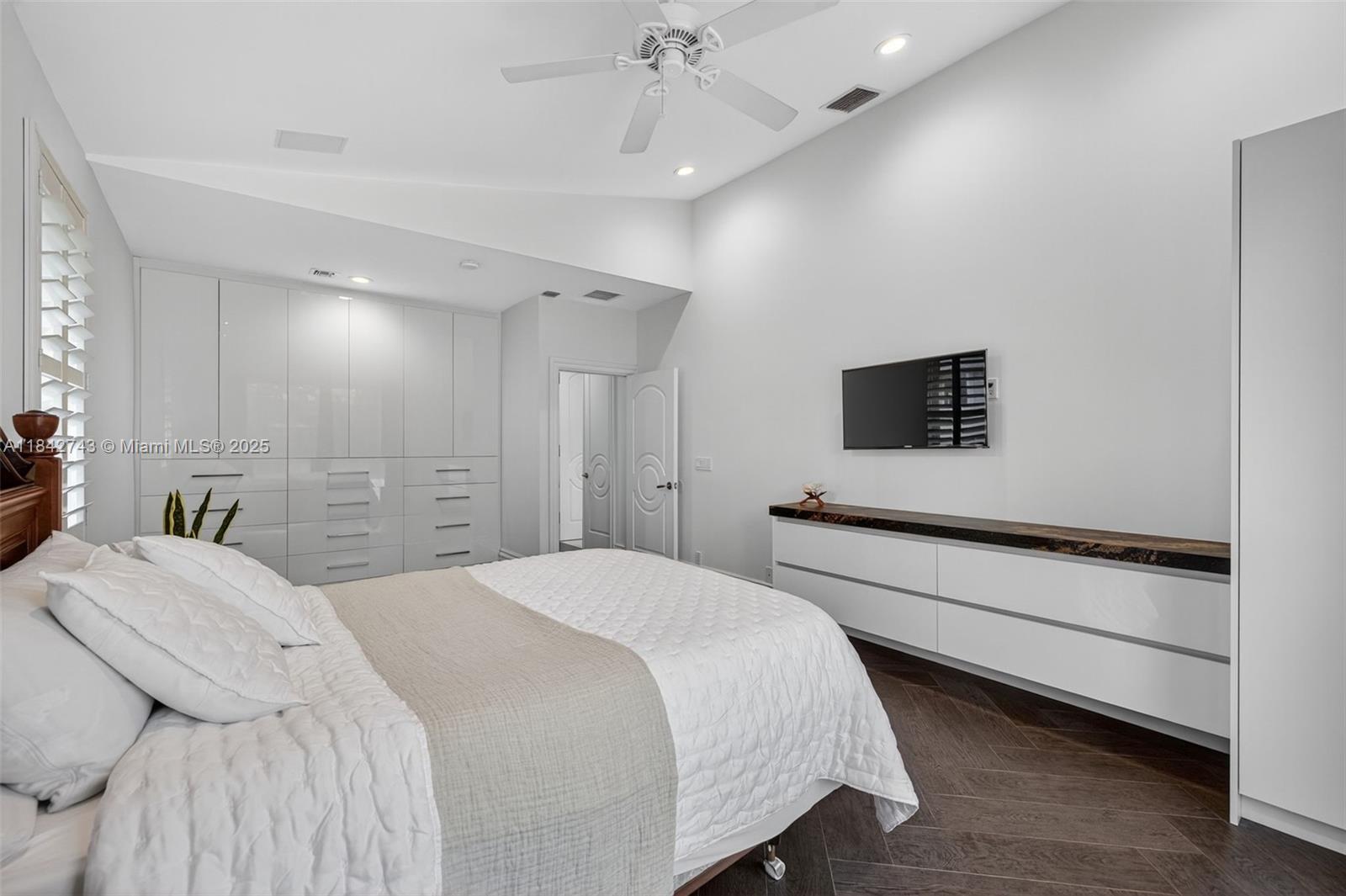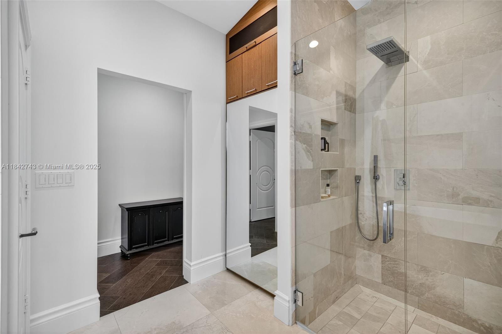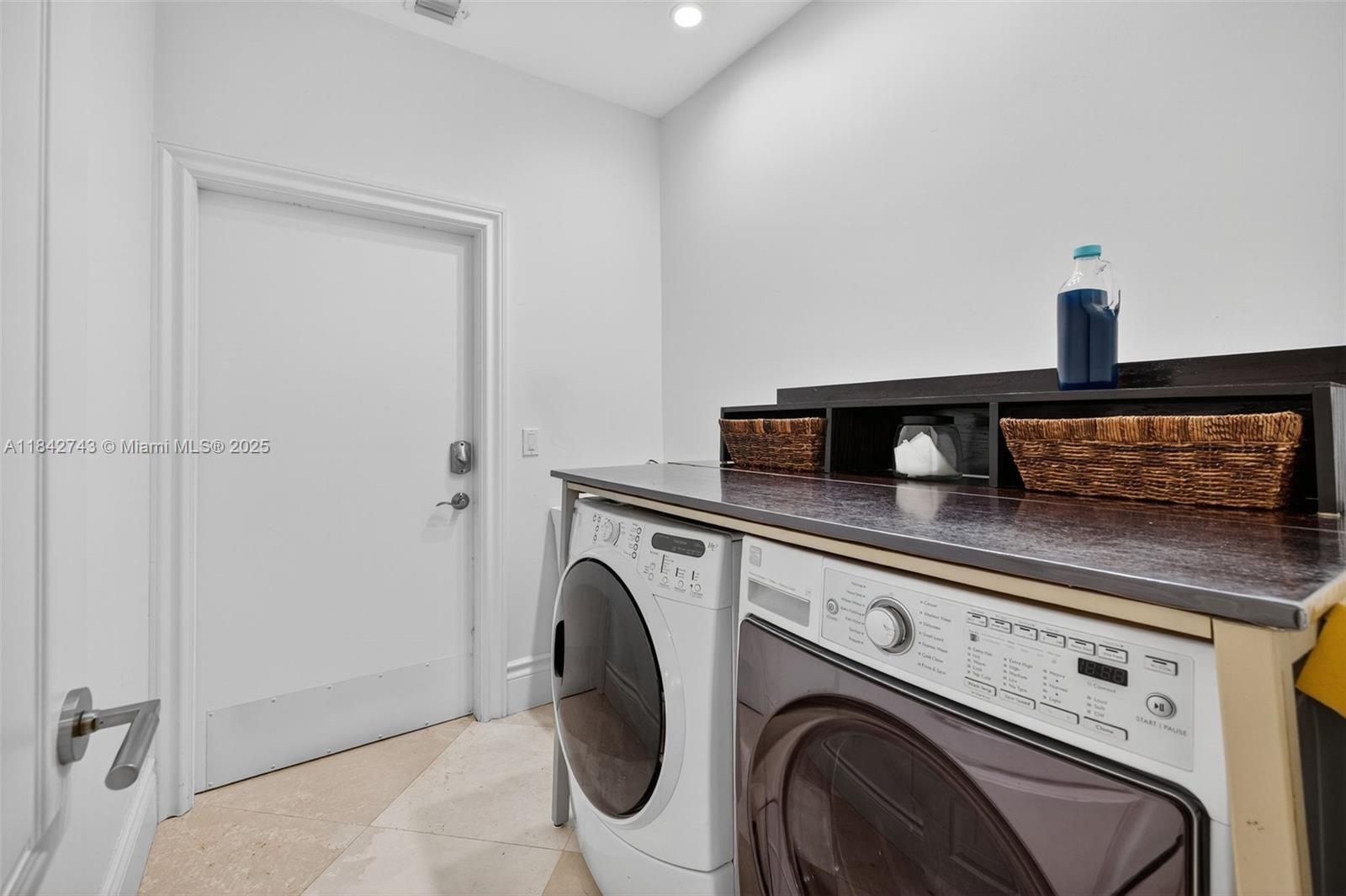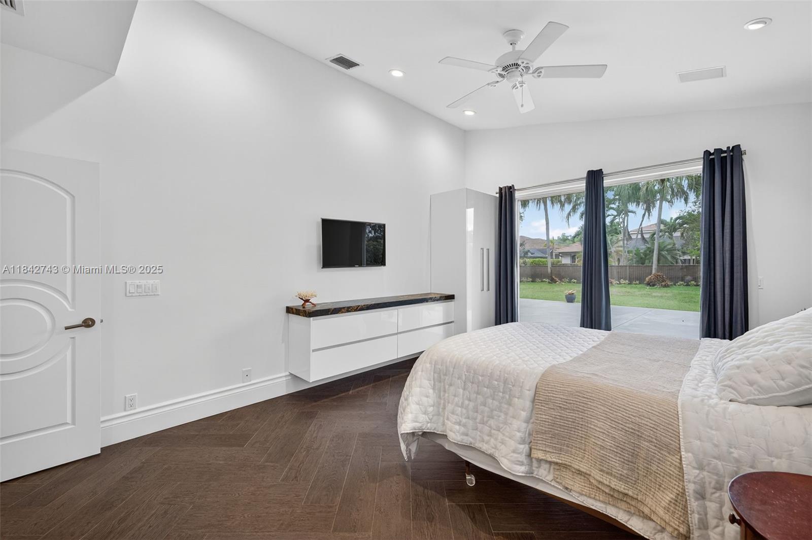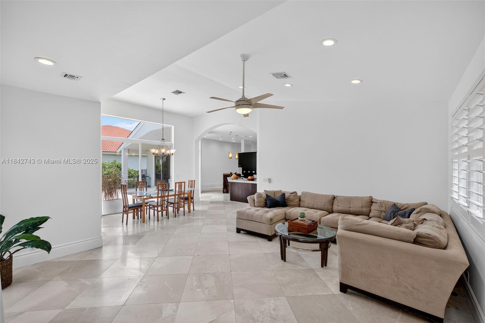 Located in a quiet, pet-friendly neighborhood with 24-hr manned gate and walkable access to the town center, this 4/3 features a Grand foyer, high ceilings and marble floors. Open kitchen with quartz counters, granite tabletop, prep sink, full-length appliance garage, retractable island, pull-out pantry, induction stove, double ovens, soft-close drawers, and built-in hutch. Master suite has flex room, sound-buffered walls, soaking tub, dual shower heads, floating furniture, and floor-to-ceiling closets. Guest suite is also sound-buffered. Living room features impact picture windows and floating TV unit. Wired for ceiling speakers. Accordion shutters, tinted windows, fenced yard, 3-car garage with workbench. Community has basketball, volleyball, and playground.