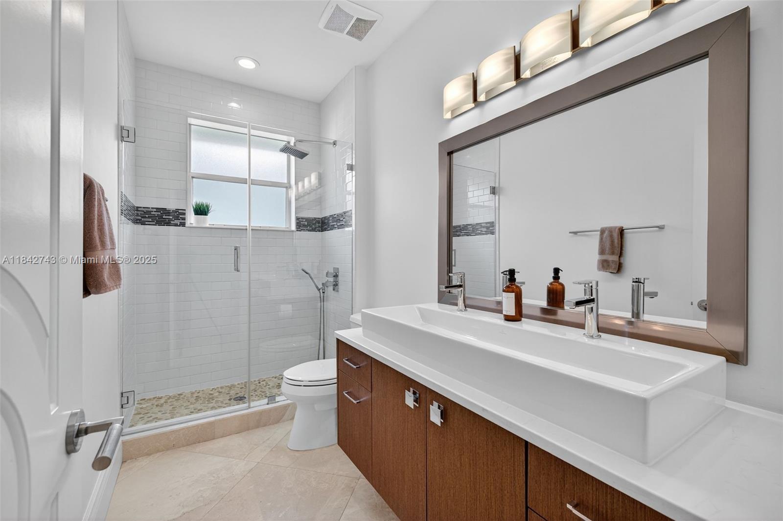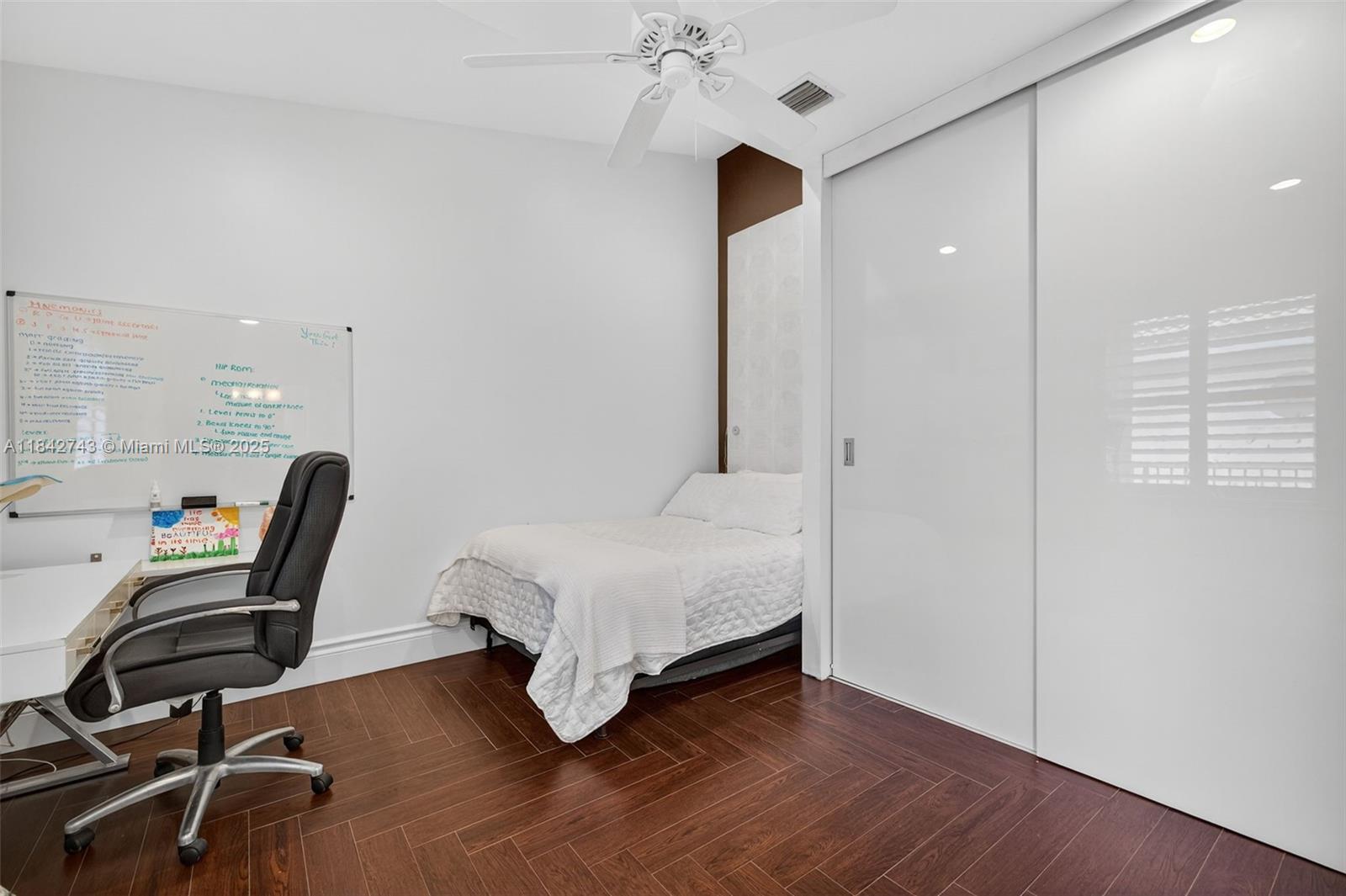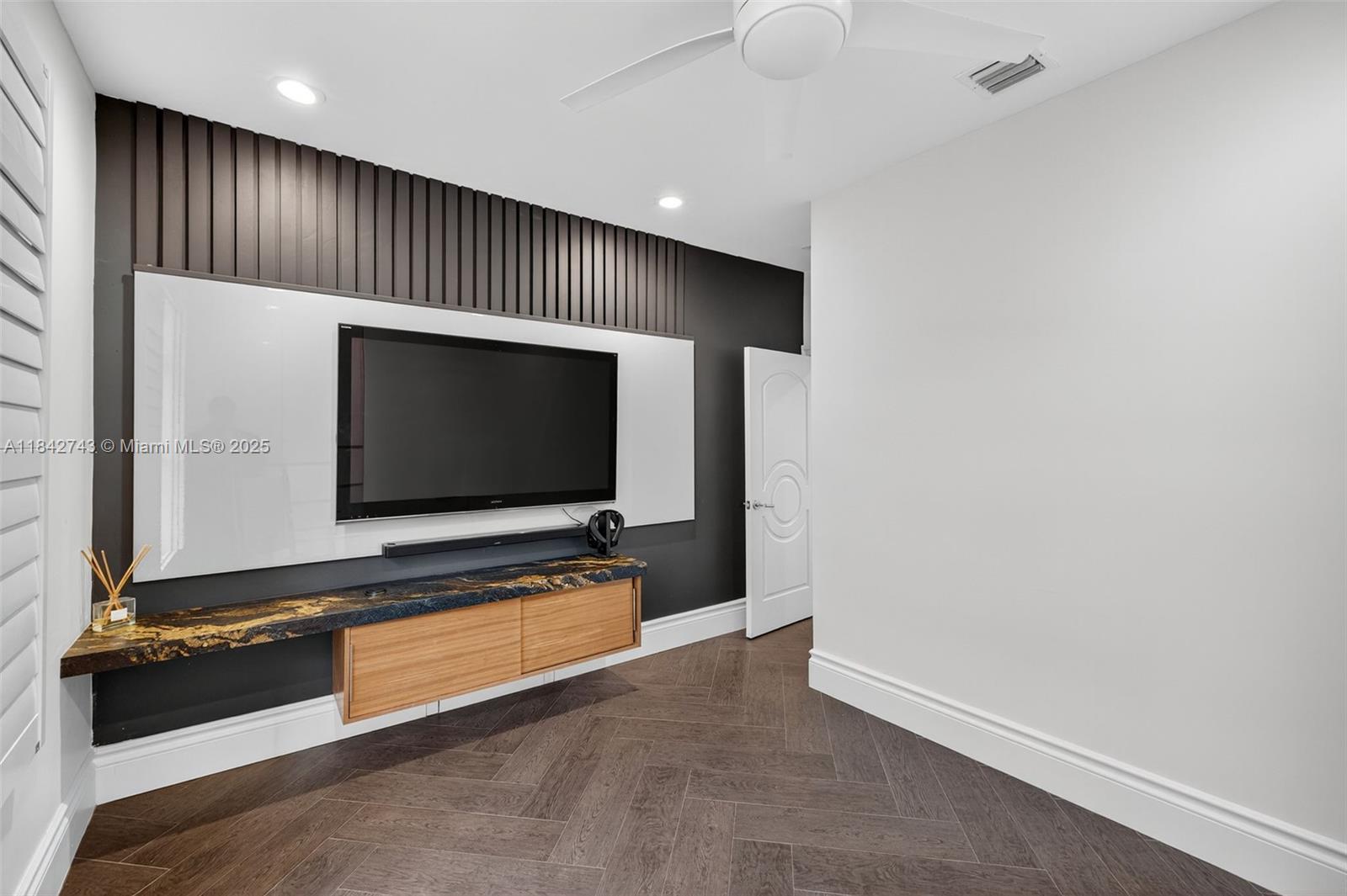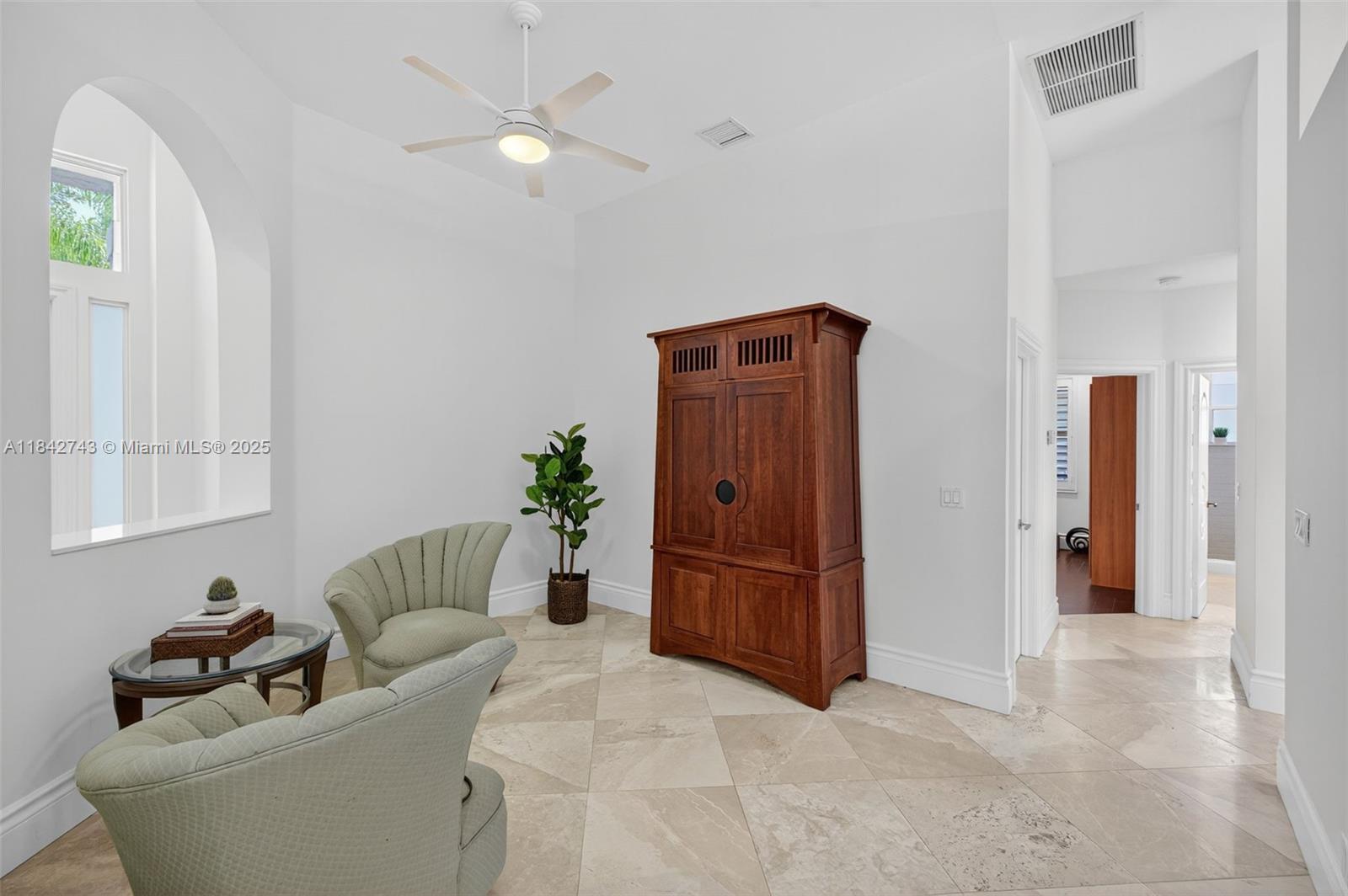 Located in a quiet, pet-friendly neighborhood with 24-hr manned gate and walkable access to the town center, this 4/3 features a Grand foyer, high ceilings and marble floors. Open kitchen with quartz counters, granite tabletop, prep sink, full-length appliance garage, retractable island, pull-out pantry, induction stove, double ovens, soft-close drawers, and built-in hutch. Master suite has flex room, sound-buffered walls, soaking tub, dual shower heads, floating furniture, and floor-to-ceiling closets. Guest suite is also sound-buffered. Living room features impact picture windows and floating TV unit. Wired for ceiling speakers. Accordion shutters, tinted windows, fenced yard, 3-car garage with workbench. Community has basketball, volleyball, and playground.