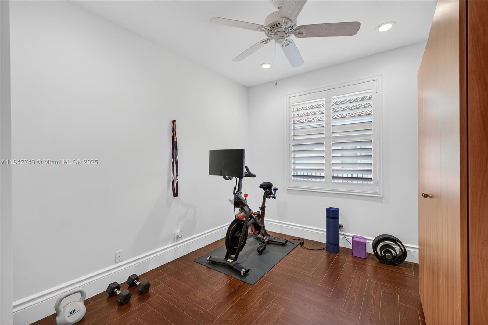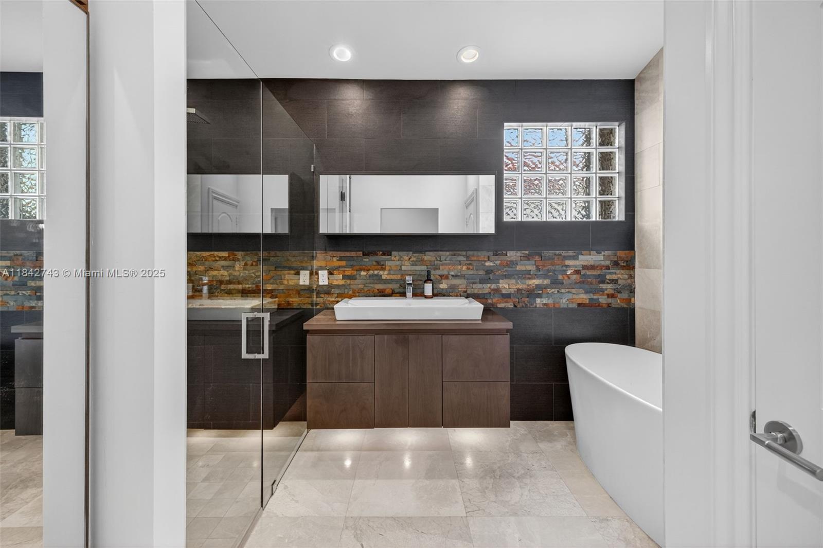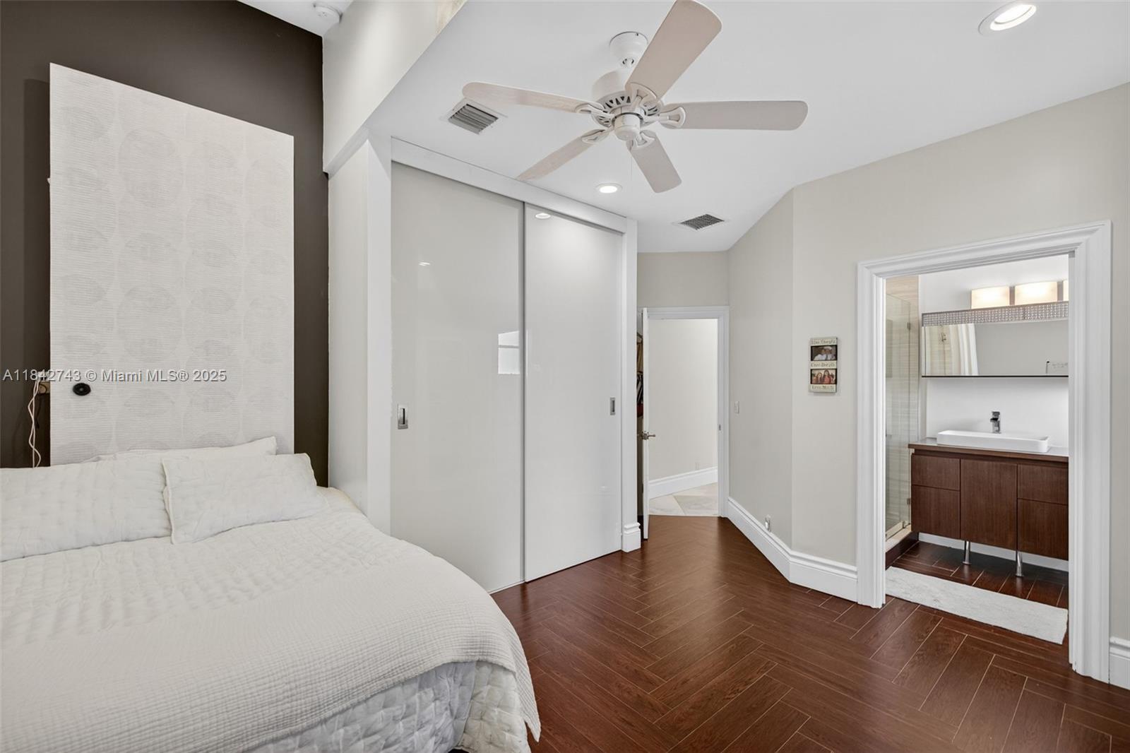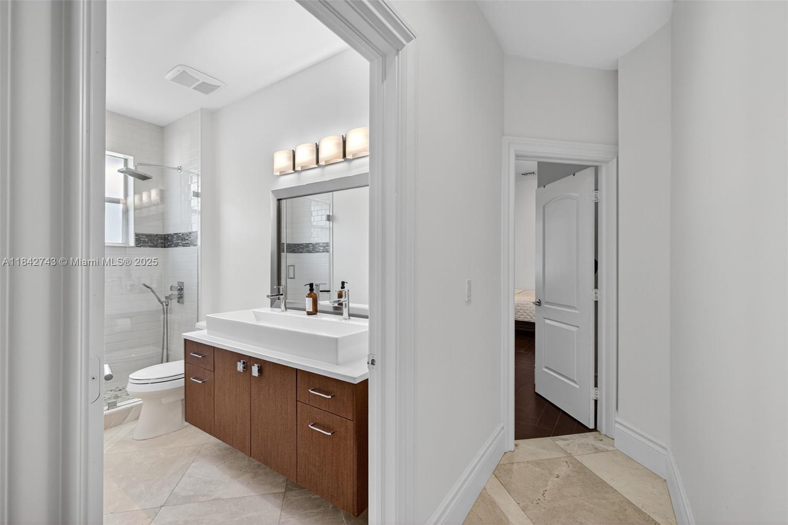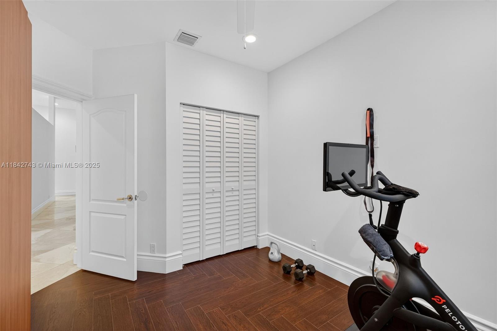 Located in a quiet, pet-friendly neighborhood with 24-hr manned gate and walkable access to the town center, this 4/3 features a Grand foyer, high ceilings and marble floors. Open kitchen with quartz counters, granite tabletop, prep sink, full-length appliance garage, retractable island, pull-out pantry, induction stove, double ovens, soft-close drawers, and built-in hutch. Master suite has flex room, sound-buffered walls, soaking tub, dual shower heads, floating furniture, and floor-to-ceiling closets. Guest suite is also sound-buffered. Living room features impact picture windows and floating TV unit. Wired for ceiling speakers. Accordion shutters, tinted windows, fenced yard, 3-car garage with workbench. Community has basketball, volleyball, and playground.