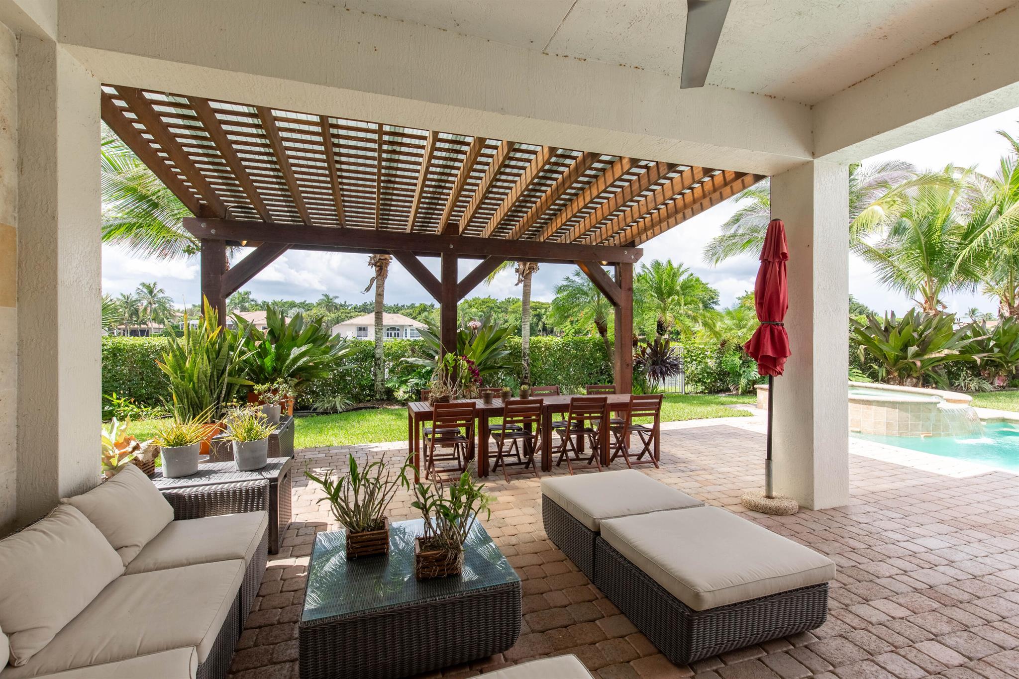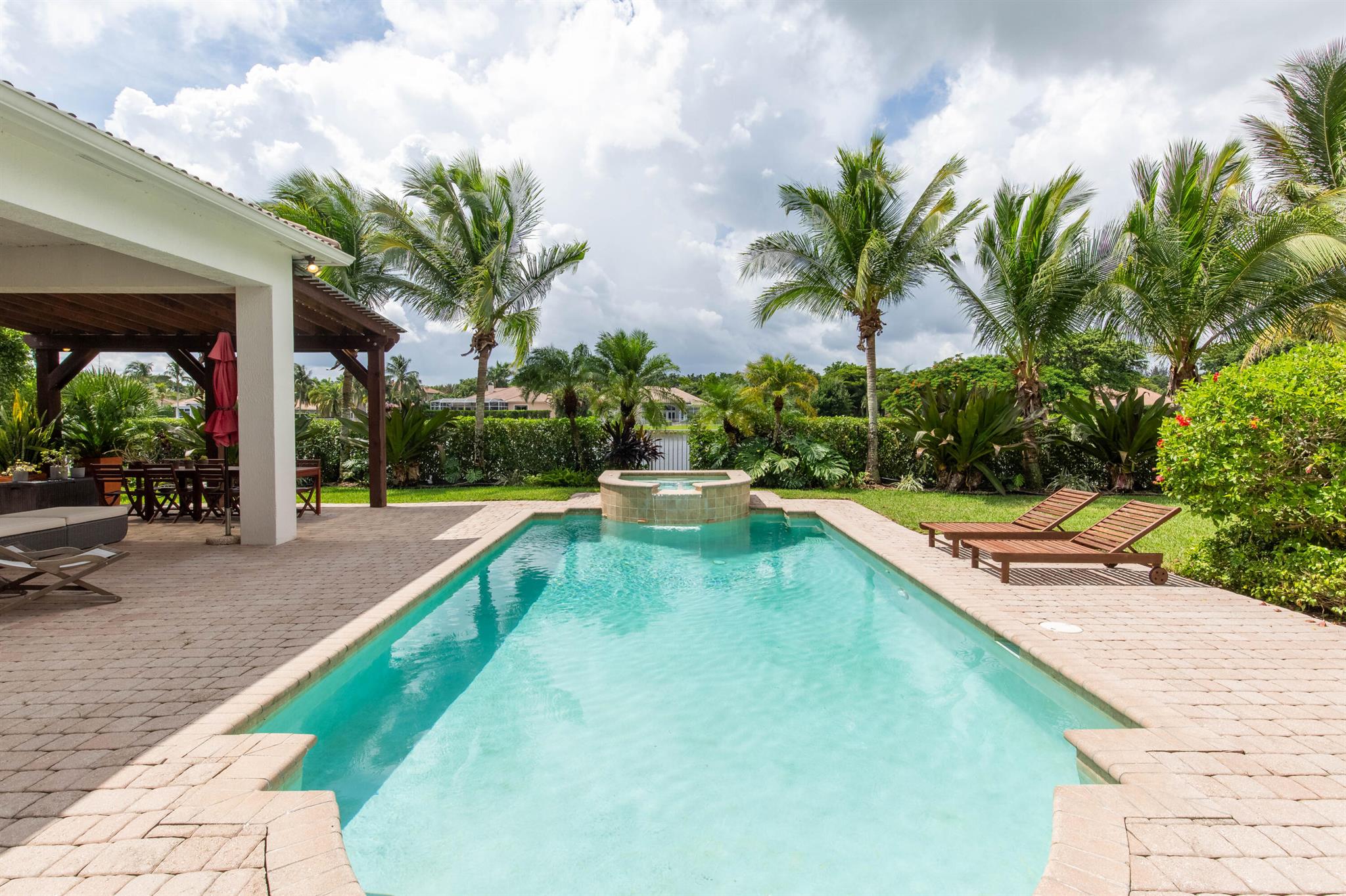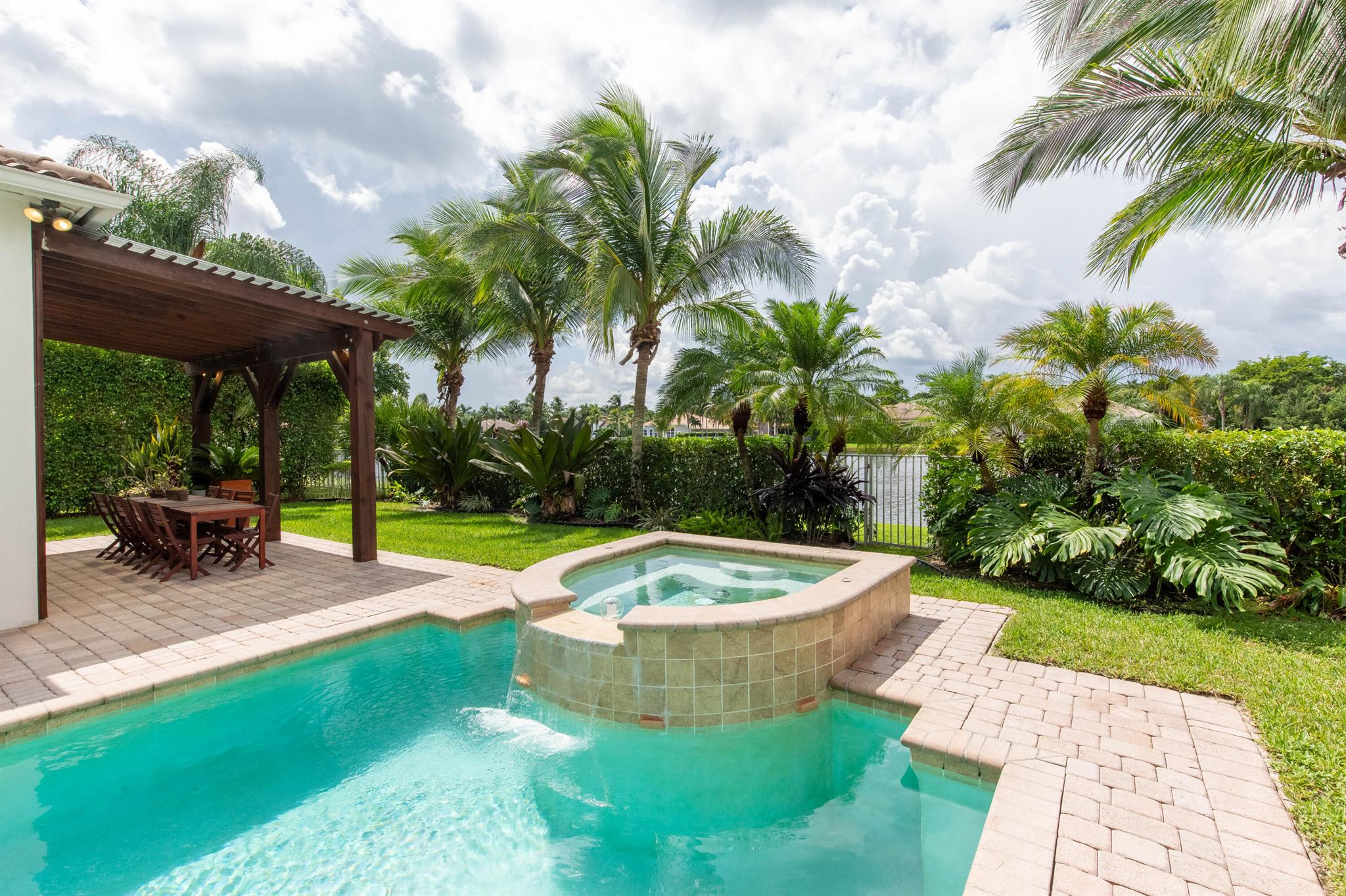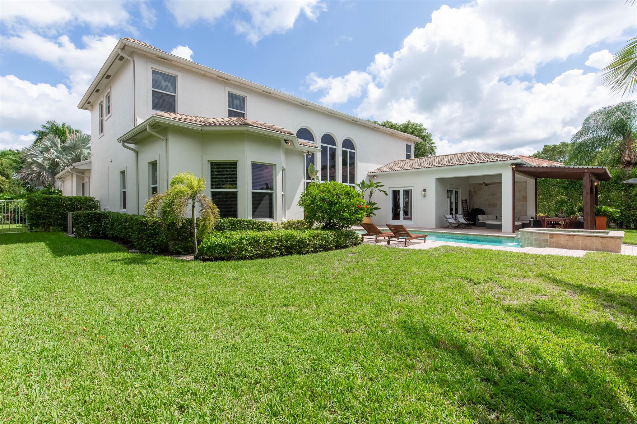 Nestled in a distinguished gated community, this exquisite 5 bed/5 bath waterfront pool home embodies luxury living at its finest! Boasting breathtaking sunsets, the residence offers a harmonious blend of elegance and comfort. A carefully landscaped exterior and outdoor pergola offer tranquility, yet are perfect for lounging and entertaining. Step inside to discover an opulent interior, where spacious living areas and large impact glass windows allow natural light to flood the living spaces. The new kitchen with high-end appliances, a gas cooktop invites culinary creativity, the oversized master suite is a haven of relaxation and the 4 additional bedrooms on the second floor offer ample space for family and guests. Close to all equestrian venues, this gem is a must see!!