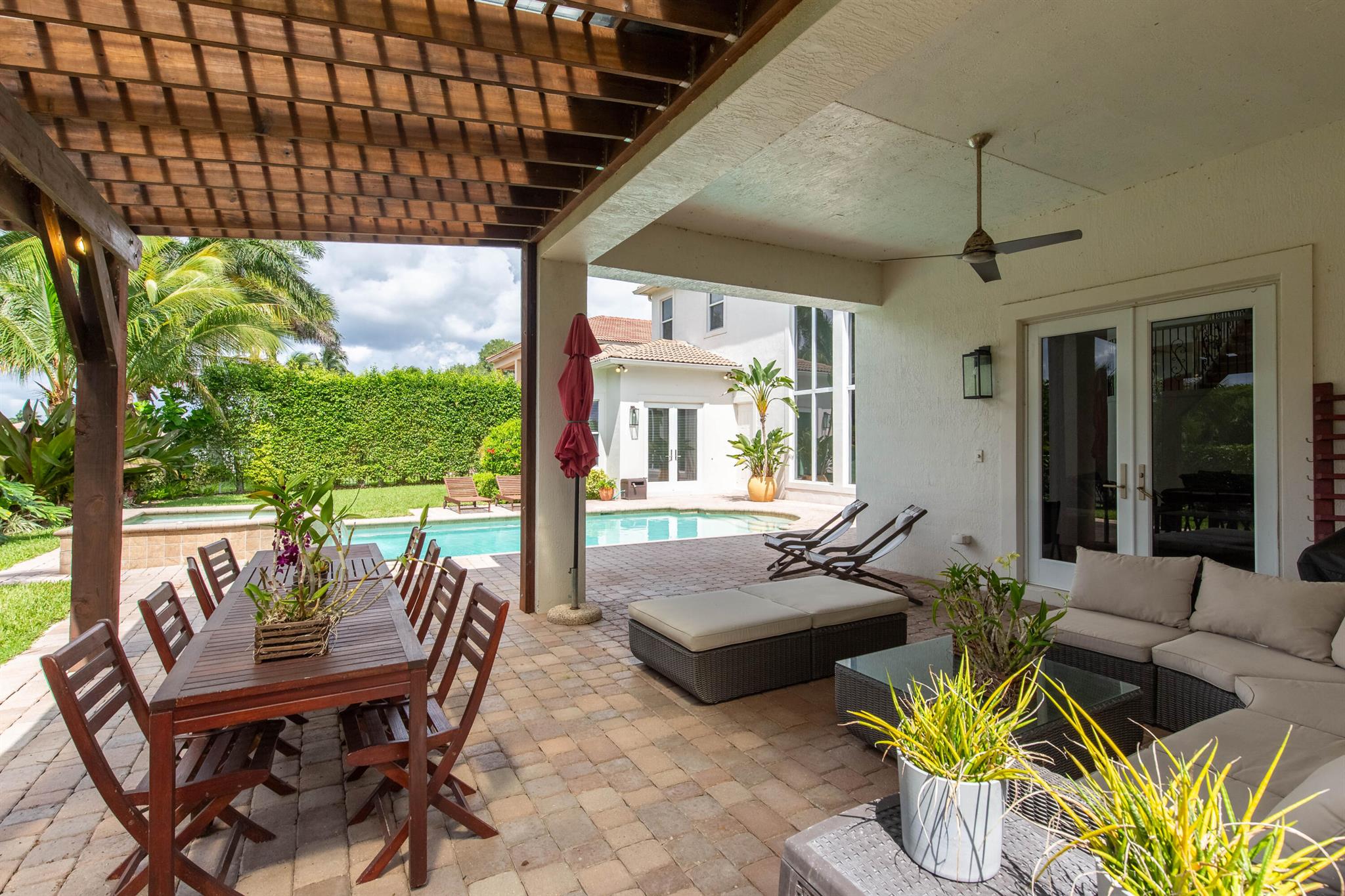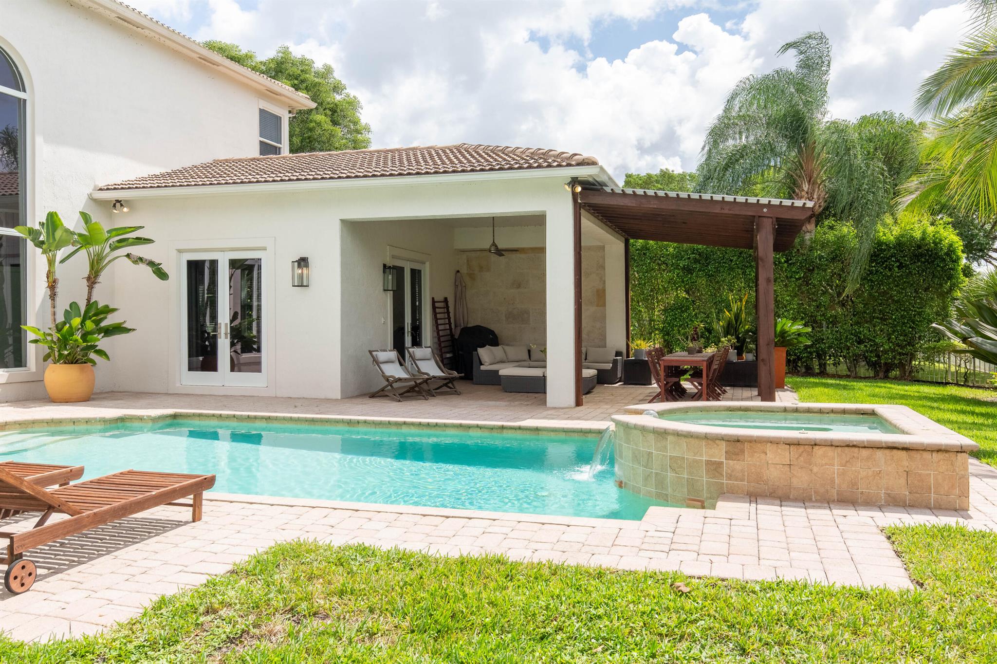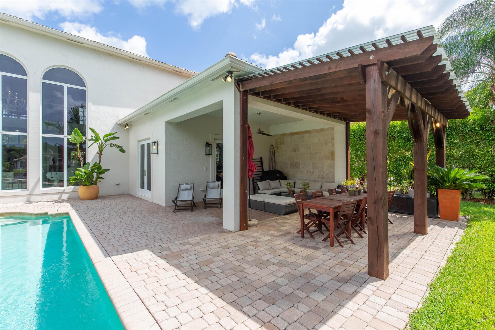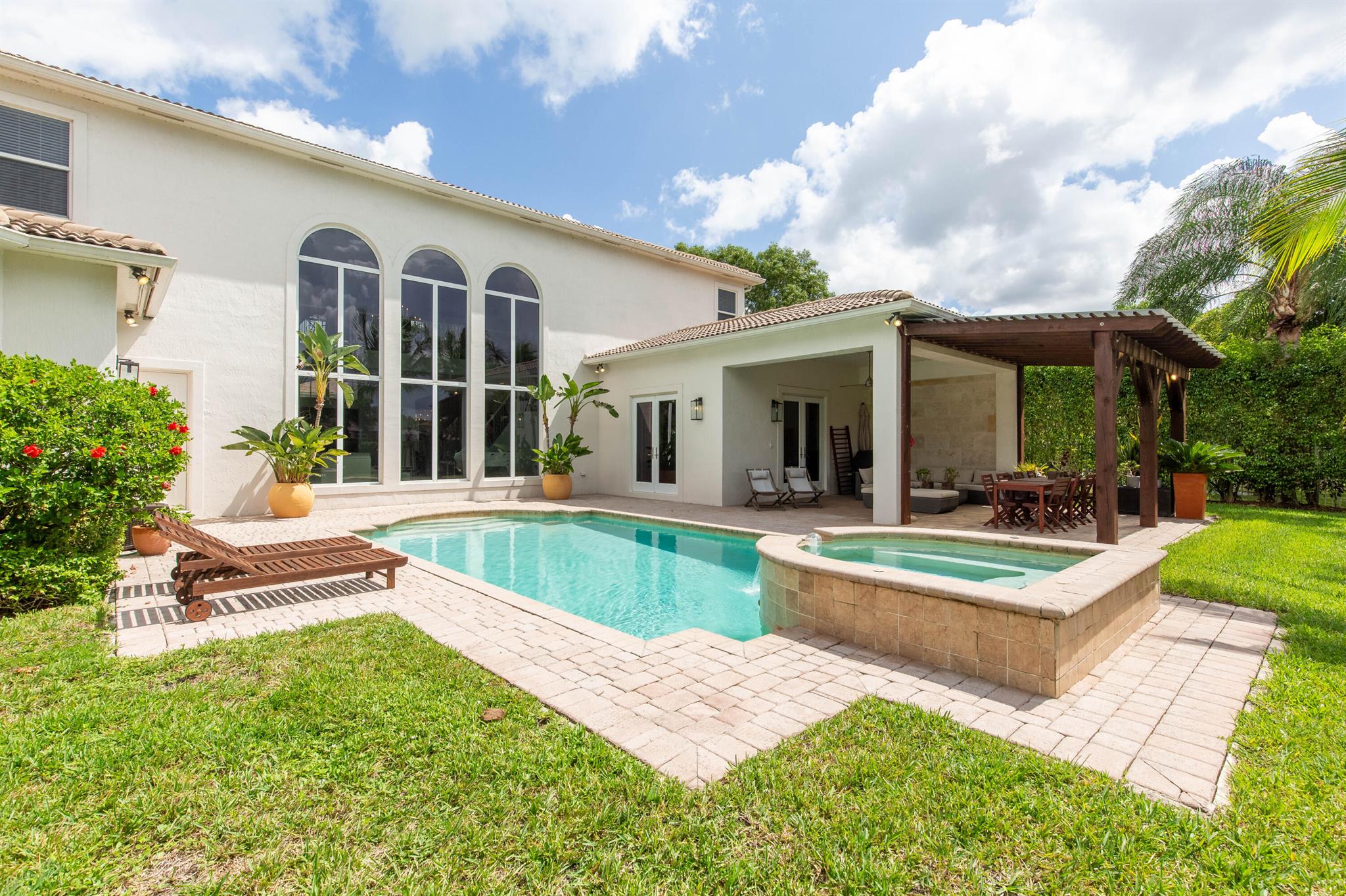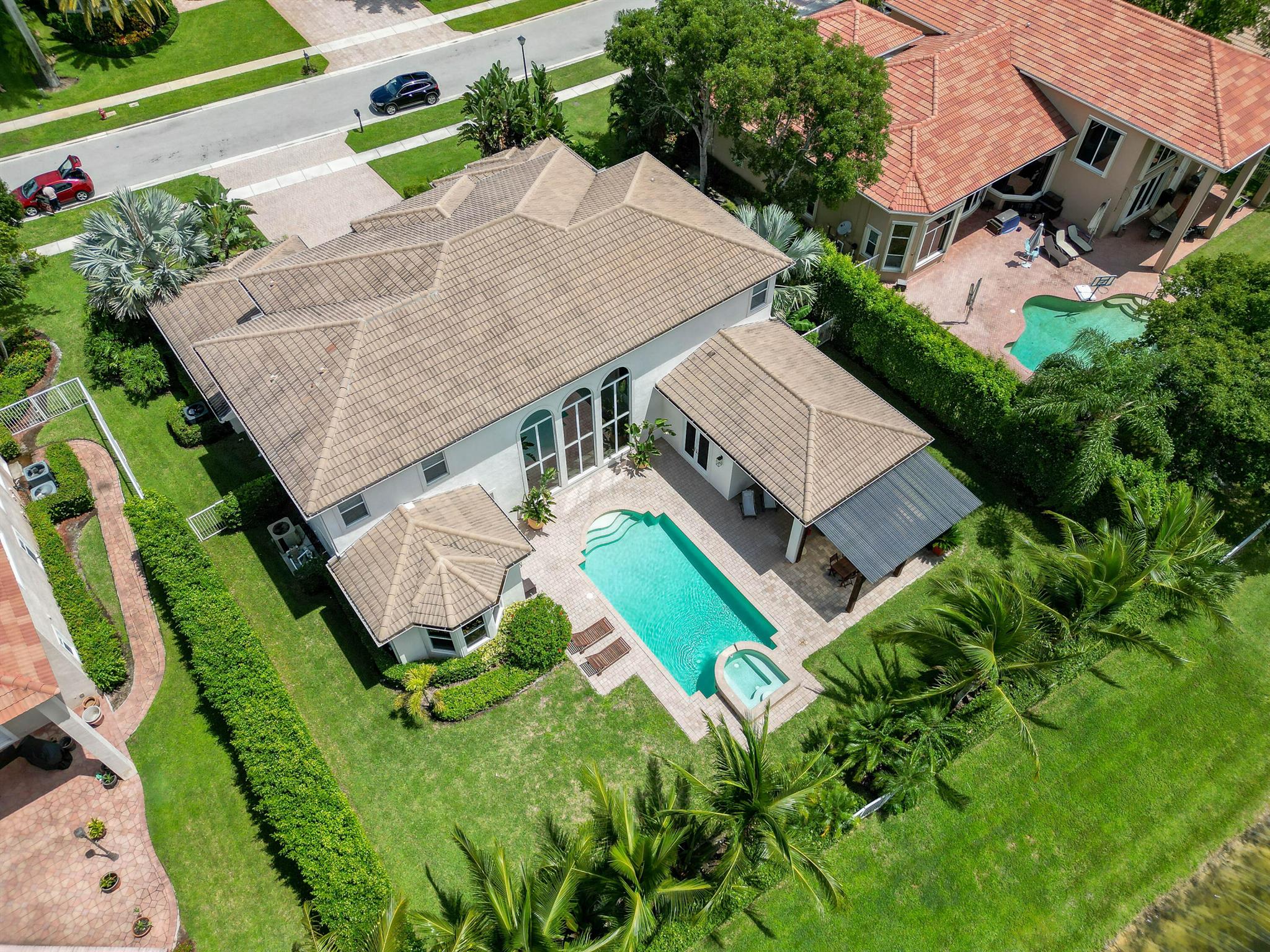 Nestled in a distinguished gated community, this exquisite 5 bed/5 bath waterfront pool home embodies luxury living at its finest! Boasting breathtaking sunsets, the residence offers a harmonious blend of elegance and comfort. A carefully landscaped exterior and outdoor pergola offer tranquility, yet are perfect for lounging and entertaining. Step inside to discover an opulent interior, where spacious living areas and large impact glass windows allow natural light to flood the living spaces. The new kitchen with high-end appliances, a gas cooktop invites culinary creativity, the oversized master suite is a haven of relaxation and the 4 additional bedrooms on the second floor offer ample space for family and guests. Close to all equestrian venues, this gem is a must see!!