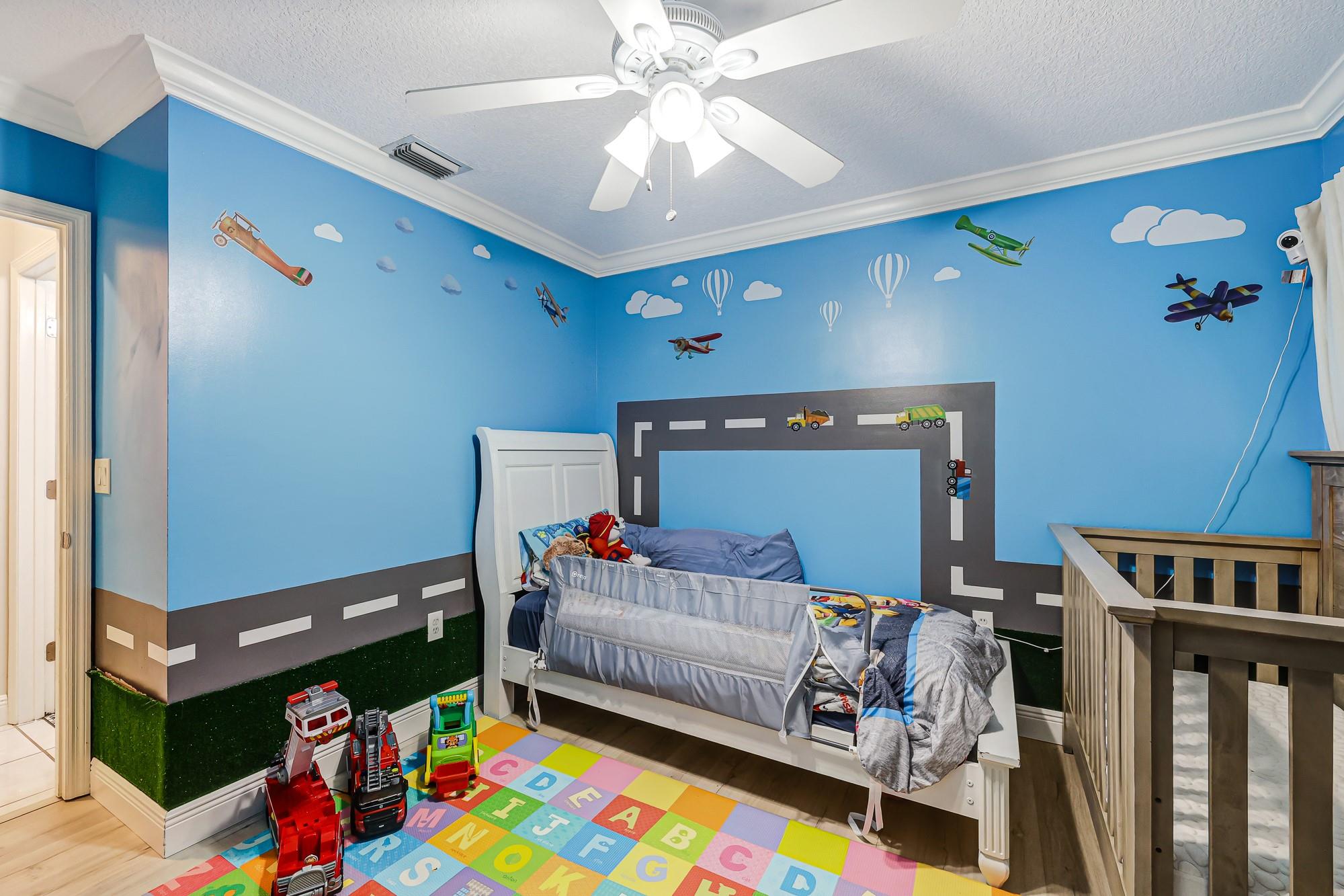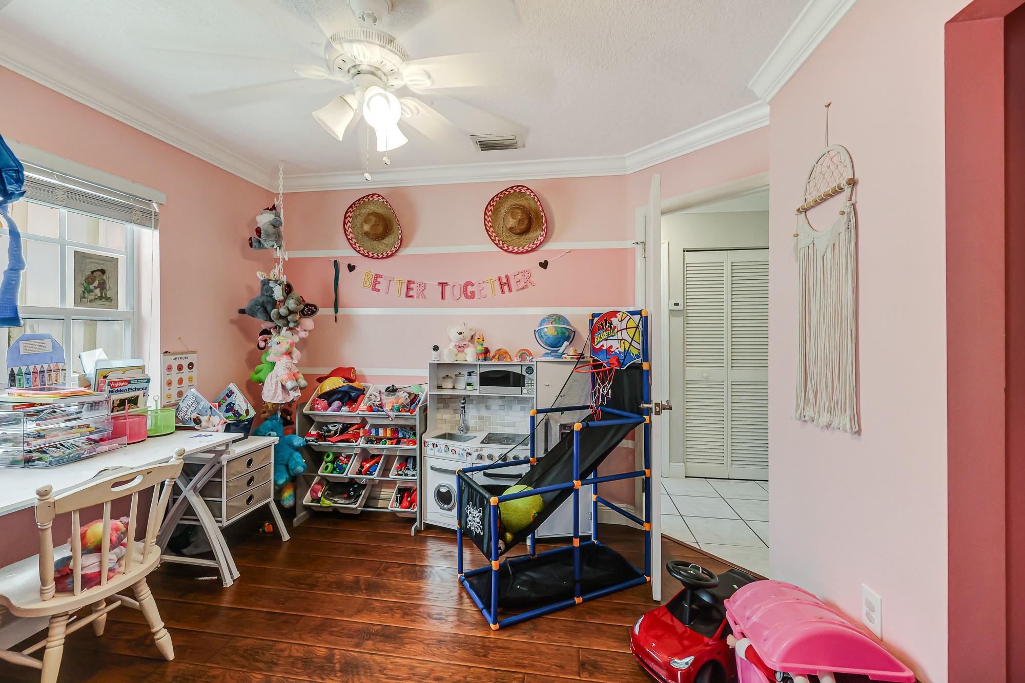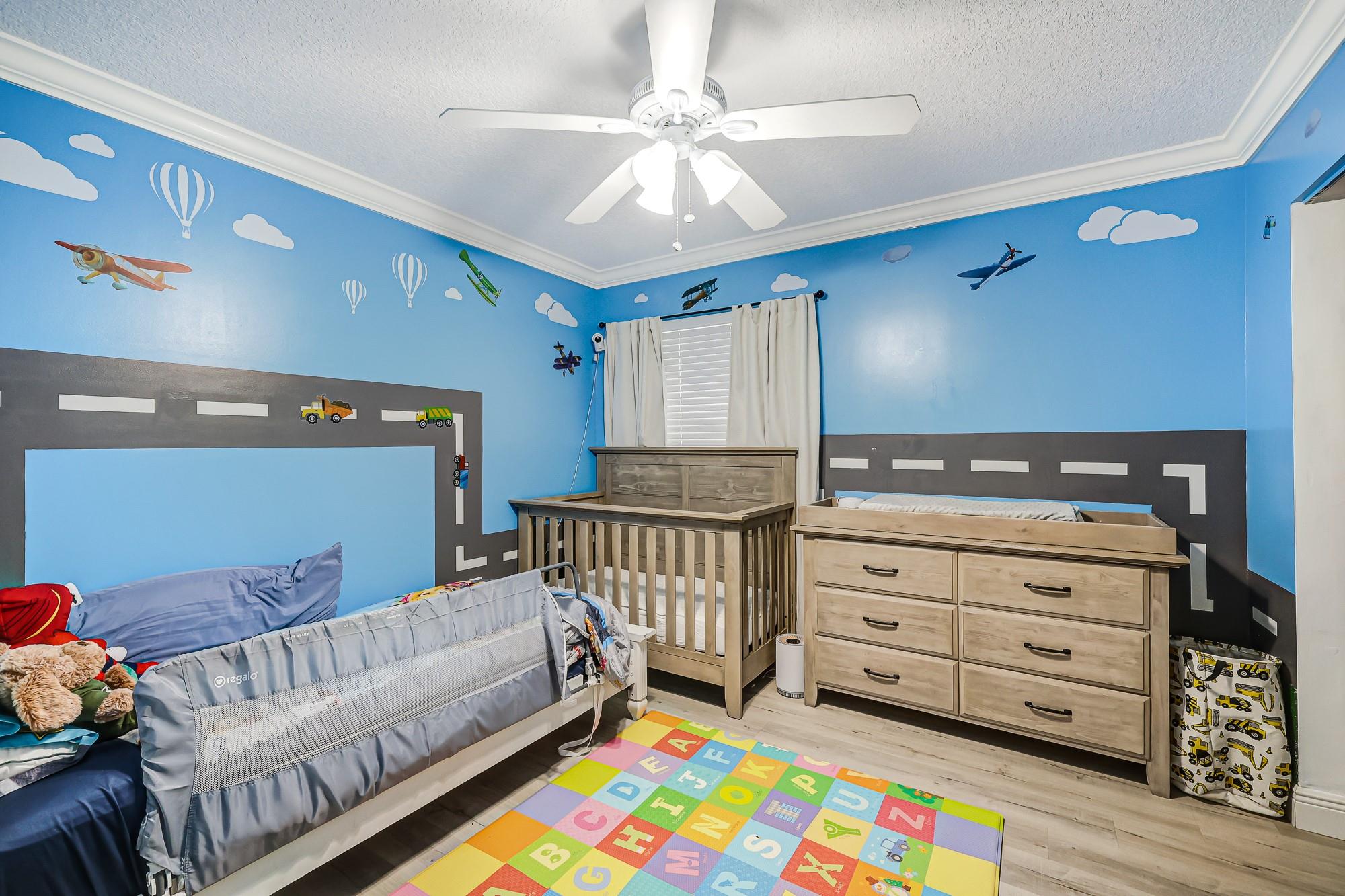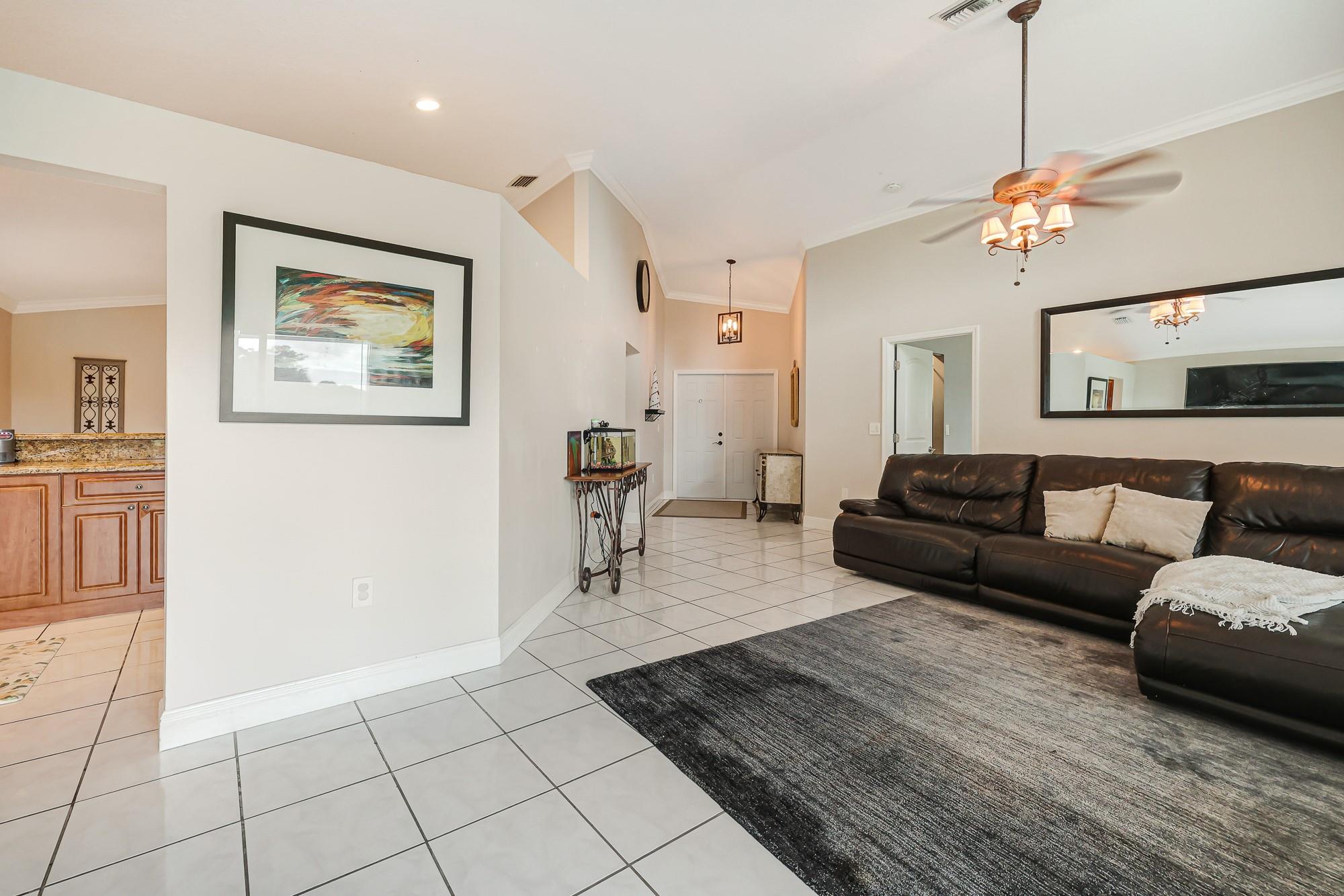 Spacious 4BR/2.5BA single-family home with 2-car garage in desirable Margate neighborhood, The Greens at Carolina—low HOA! Features include vaulted ceilings, crown molding, updated baths, ceramic tile throughout, and wood floors in bedrooms. The kitchen is being resurfaced with granite countertops. Impact-rated front and garage doors, accordion shutters, and a 2017 roof add value and security. Relax on your screened patio, taking in serene views of the golf course. Move-in ready and ideally located!