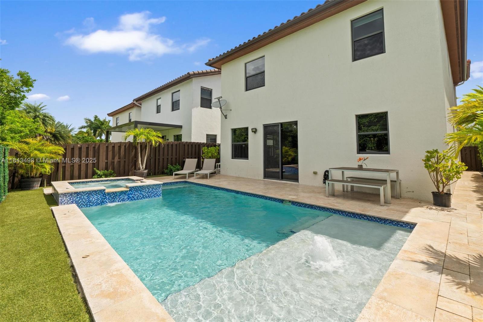 Exclusive and modern luxury home with private pool & spa with a heating system in a gated community of only 64 single-family homes with security systems.Very quiet and family-friendly, very close to the resort-style clubhouse, where you can enjoy numerous activities for children, teens, and adults. This beautiful home features a covered two-car garage and outdoor parking for + cars, a private patio overlooking the ideal nature reserve, a garden irrigation system, and a whole-house water purification system. One bedroom on the ground floor with a full bathroom. Excellent location, next to top-rated schools, banks, supermarkets, restaurants, academies, a nail and hair salon, and recreational parks.