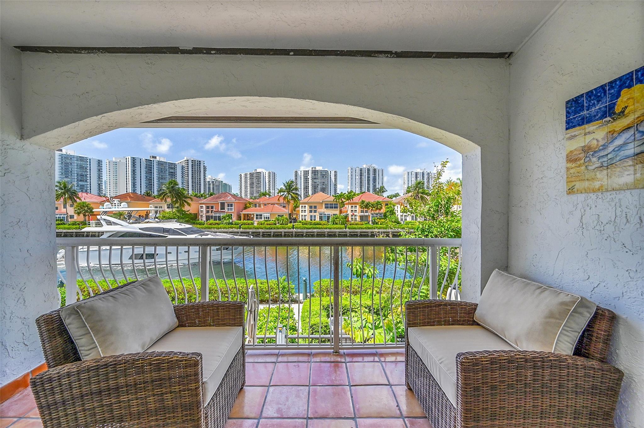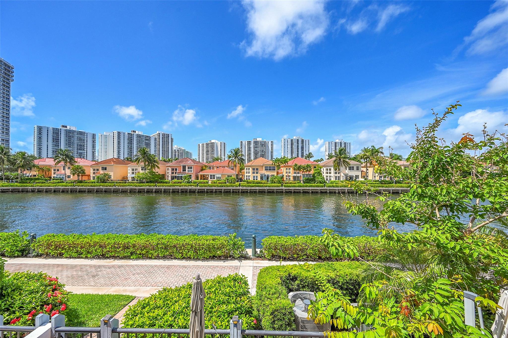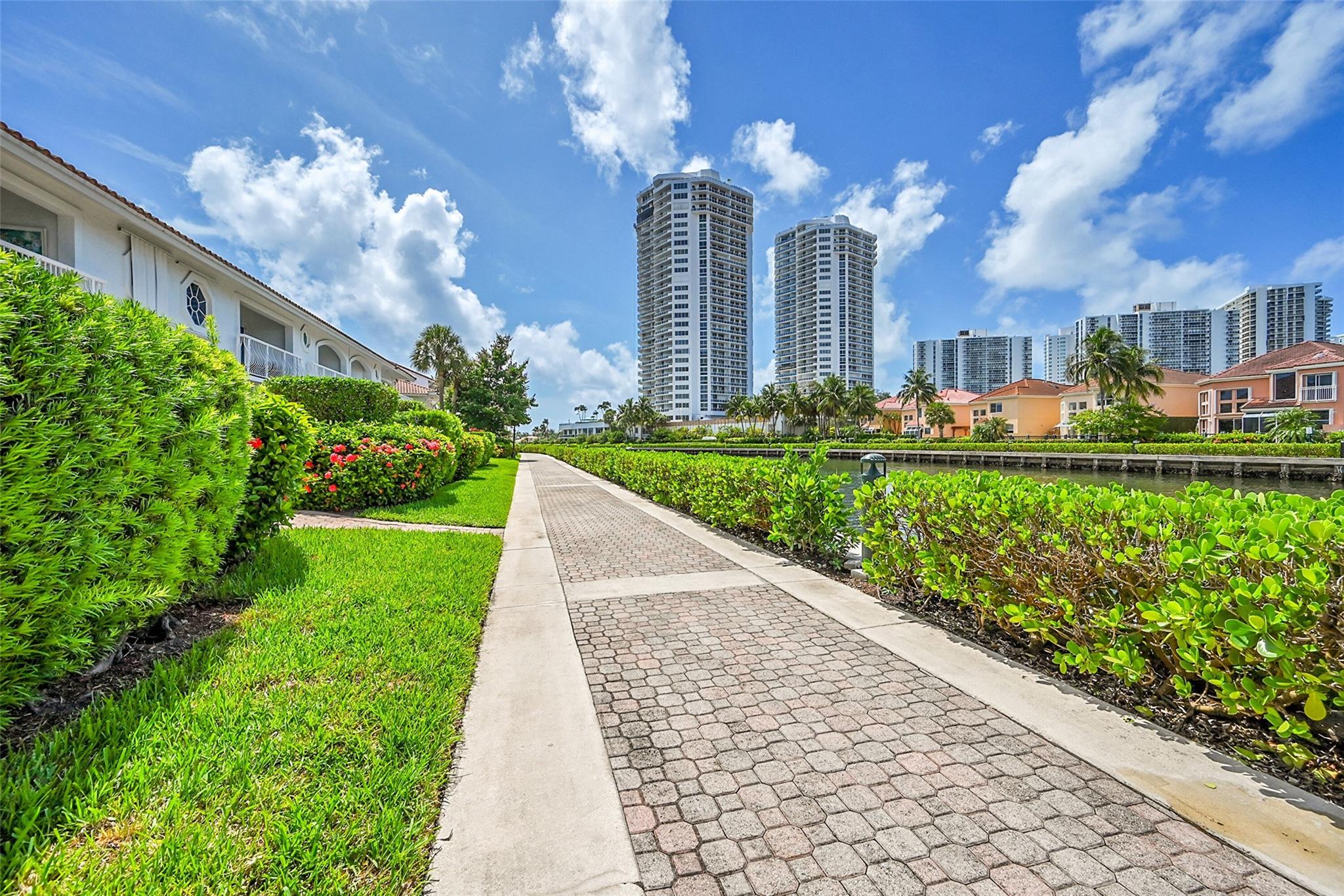 Don’t miss the chance to own this beautifully maintained townhome just steps from the Waterways Marina and Intracoastal. This spacious 3 bed, 2.5 bath residence offers nearly 1,900 sq ft of living space featuring vaulted ceilings, an indoor laundry room w/sink and 1-car garage with 2 outdoor parking spaces. A sub-zero fridge, crown molding, impact doors & windows, fresh interior paint, ample storage w/ closet systems and more! What truly sets this home apart is the exceptional water view enjoyed from your private patio—perfect for relaxing or entertaining. Situated in a boutique community of only 79 homes, residents enjoy 24-hour manned security, a saltwater community pool & proximity to premier shopping, dining, top-rated schools & houses of worship. A true gem in the heart of Aventura!