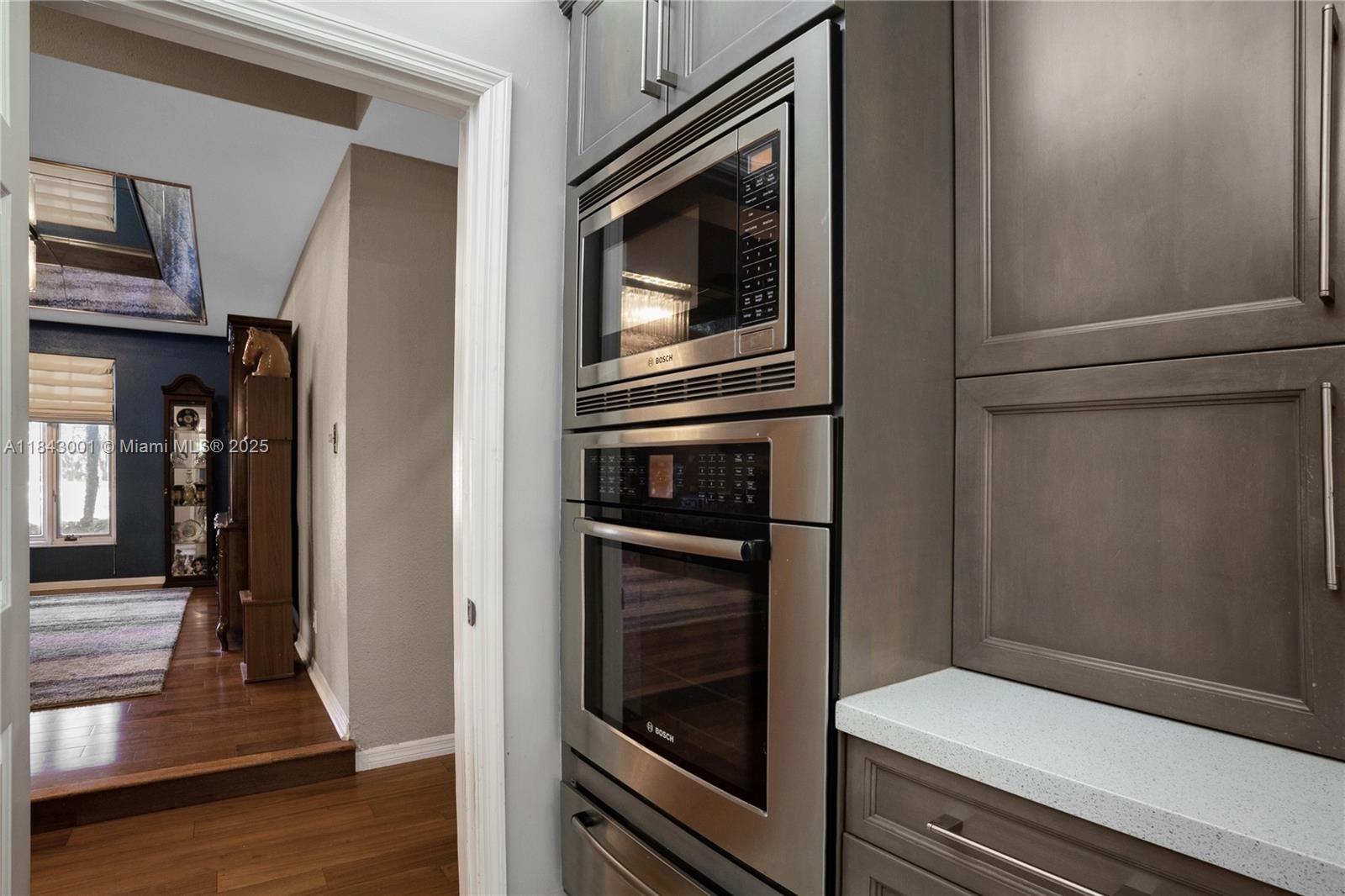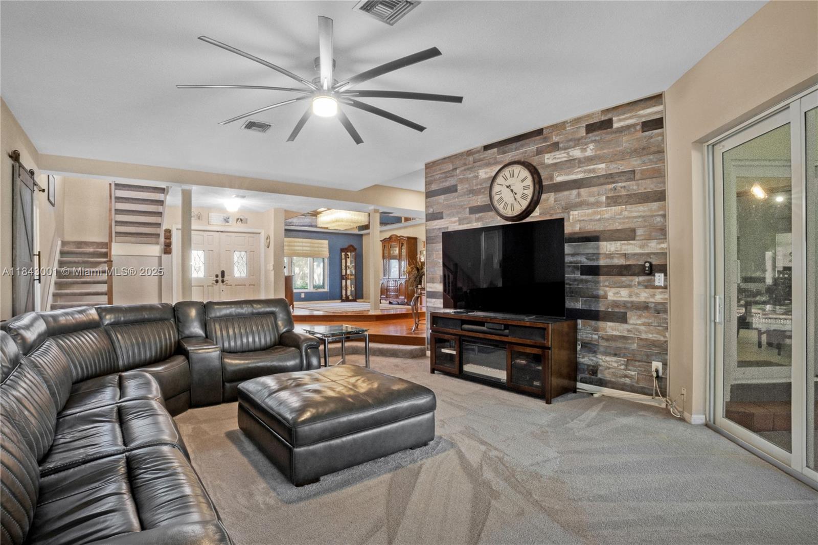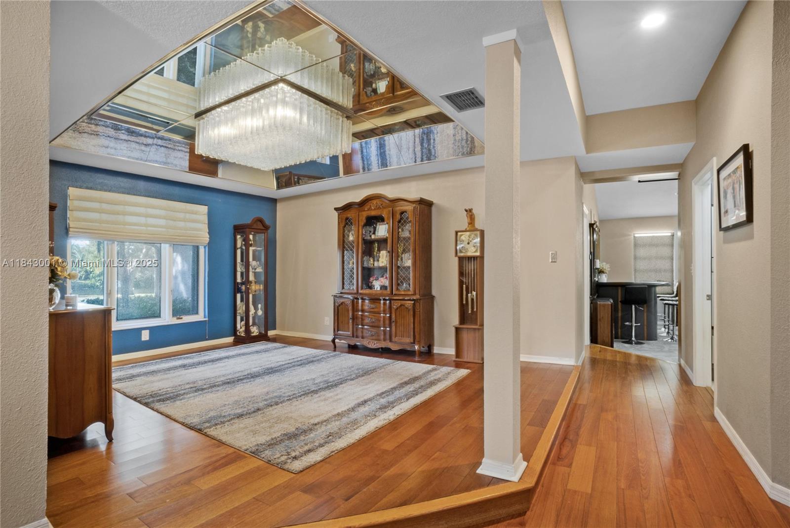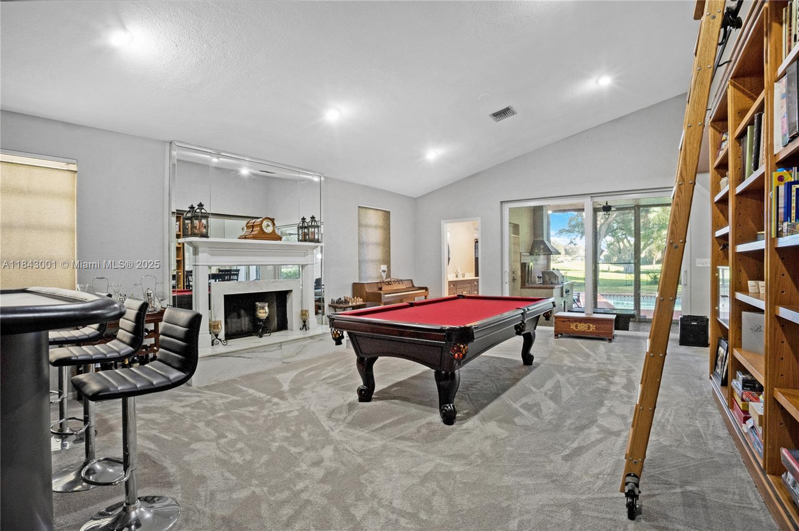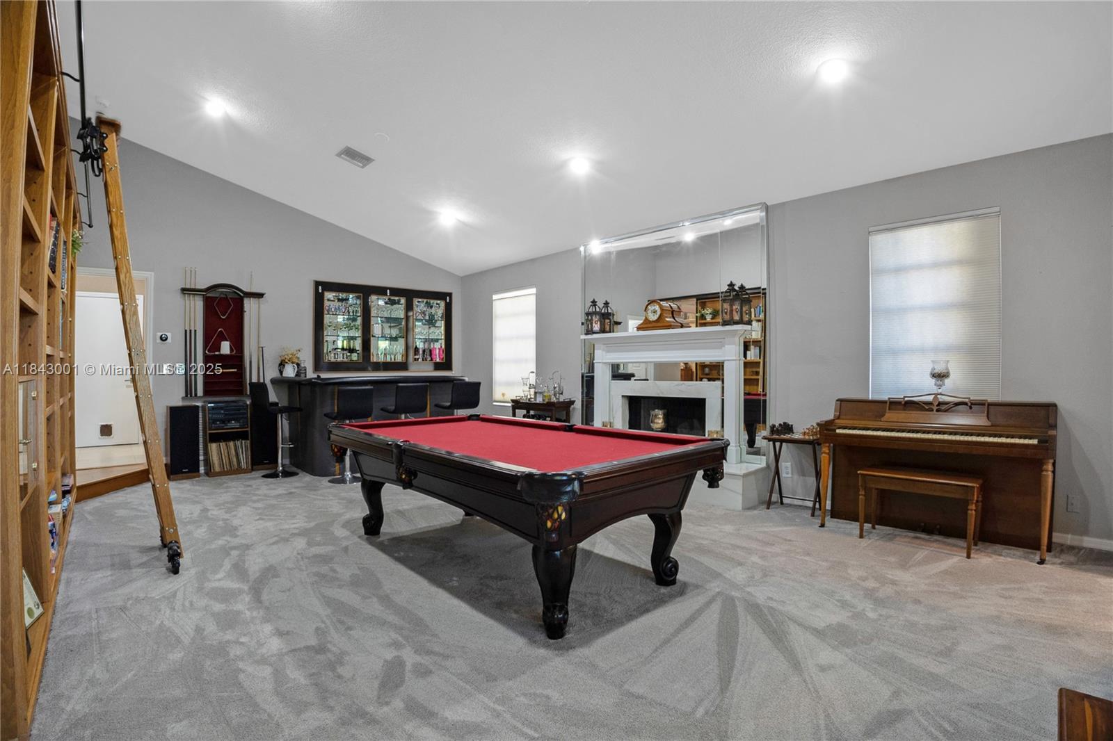 **$25,000 CREDIT TOWARDS BUYERS CLOSING COSTS** Beautiful 5BR/4BA custom home on a quiet cul-de-sac with view of Jacaranda Golf. Gourmet kitchen boasts white quartz counters, maple cabinets, marble backsplash, and newer SS appliances. Upstairs, enjoy the entire second floor master suite which features two walk-in closets, a serene deck, soaking tub, shower, and dual sinks. Bamboo, porcelain, and new carpet flooring throughout. Enjoy a cozy wood-burning fireplace, wet bar, built-ins with rolling ladder, and included pool table. Relax in the screened patio with built-in grill overlooking the pool. 2024 roof, 3 A/C’s (2 new), impact sliding doors, accordion shutters, and fresh paint inside and out. Located minutes from Sawgrass Mills, top-rated universities, and easy access to highways.
