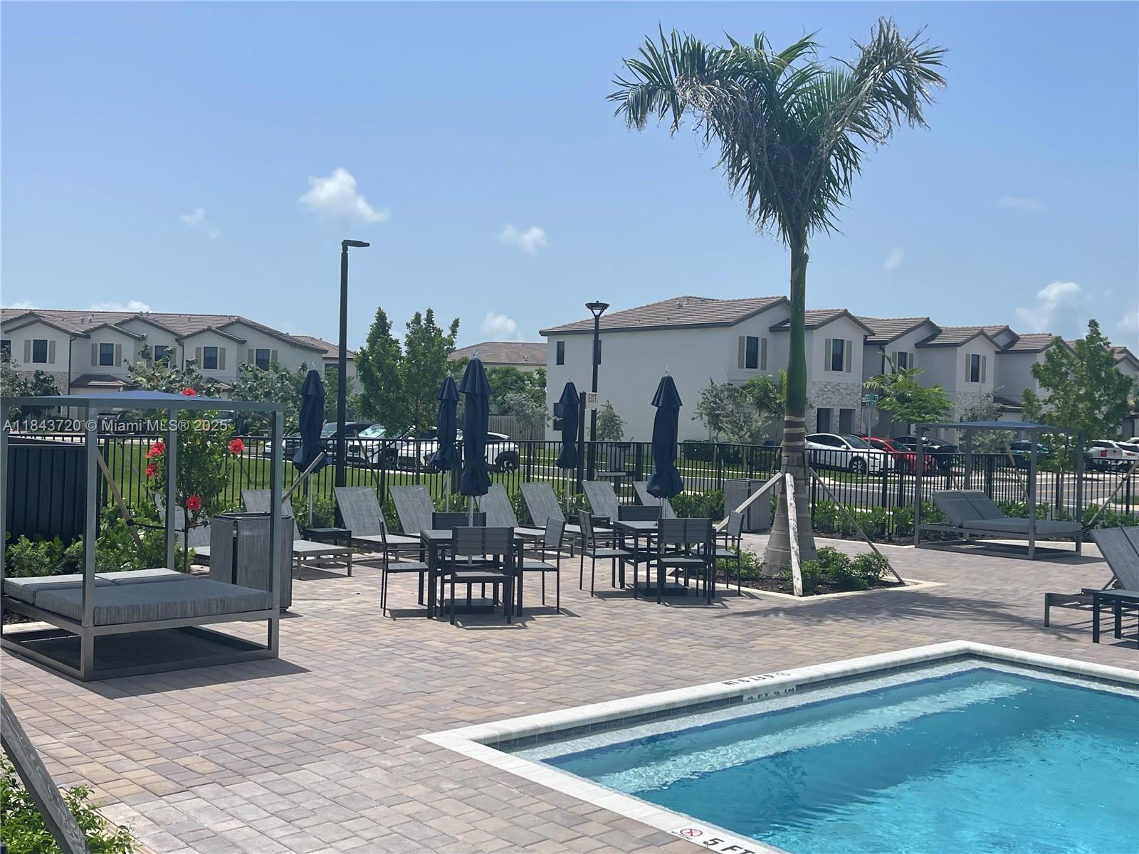 One of the key benefits of this modern townhouse is the bedroom and full bath conveniently located on the first floor. This stylish two-story home features an attractive beige façade, dark window shutters, and a tiled roof. Offering 1,328 sq. ft., 3 bedrooms, and 3 bathrooms, it was built in 2024 and is located in the desirable city of Homestead, Florida. The community offers exceptional amenities, including a full gym, a large sparkling pool with lounge chairs and umbrellas, and a dedicated children’s playground. A fantastic opportunity to enjoy a contemporary lifestyle with recreational facilities right at your doorstep.