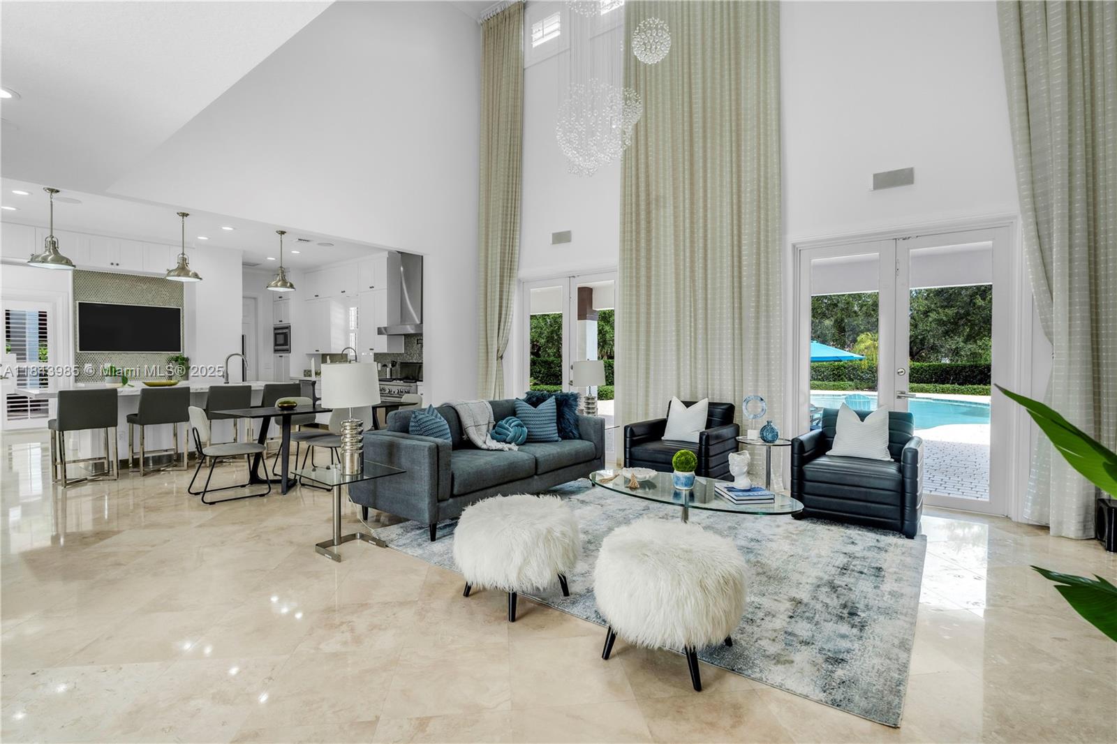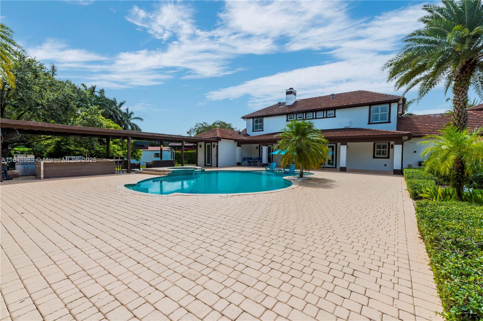 Experience luxury living in this stunning estate located in prestigious Southwest Ranches. Main home features 4 bedrooms + office & 3.5 baths, volume ceilings, open-concept chef’s kitchen with quartz countertops, stainless steel appliances, and gas stove. Marble flooring throughout living areas. Independent guest house with modern finishes, kitchen, living/dining combined and full bath. Expansive media/game room with half bath. Resort-style backyard includes 2024 pool heater, jacuzzi, luxury summer kitchen, fire pit, covered cabanas, surround sound, premium lighting, and mature landscaping. Additional highlights: ALL HURRICANE IMPACT WINDOWS/DOORS, new 2024 well & full house generator. Zoned for top-rated schools. An entertainer’s dream in a prime location!