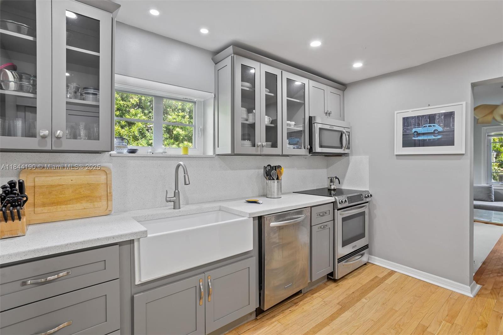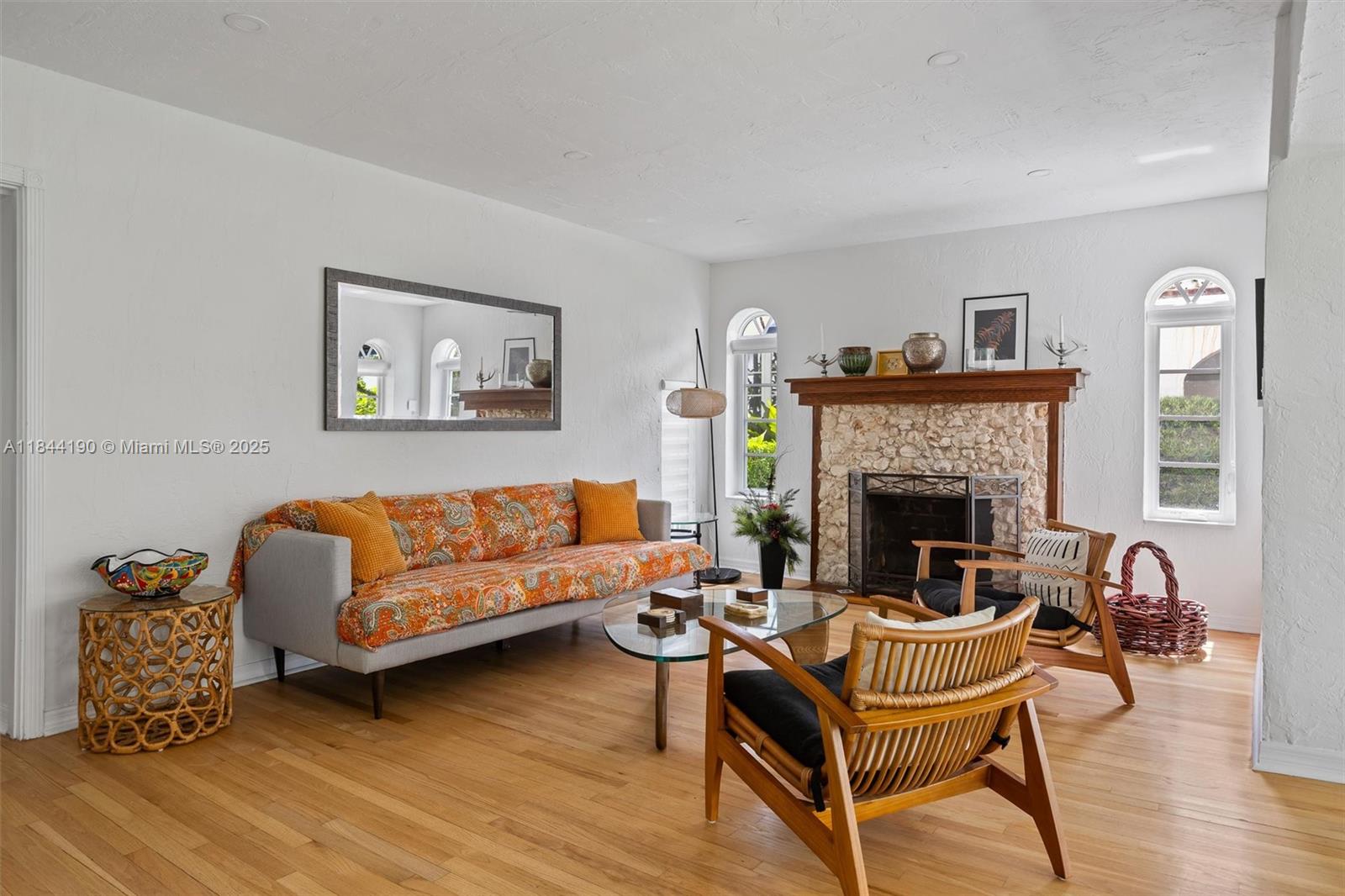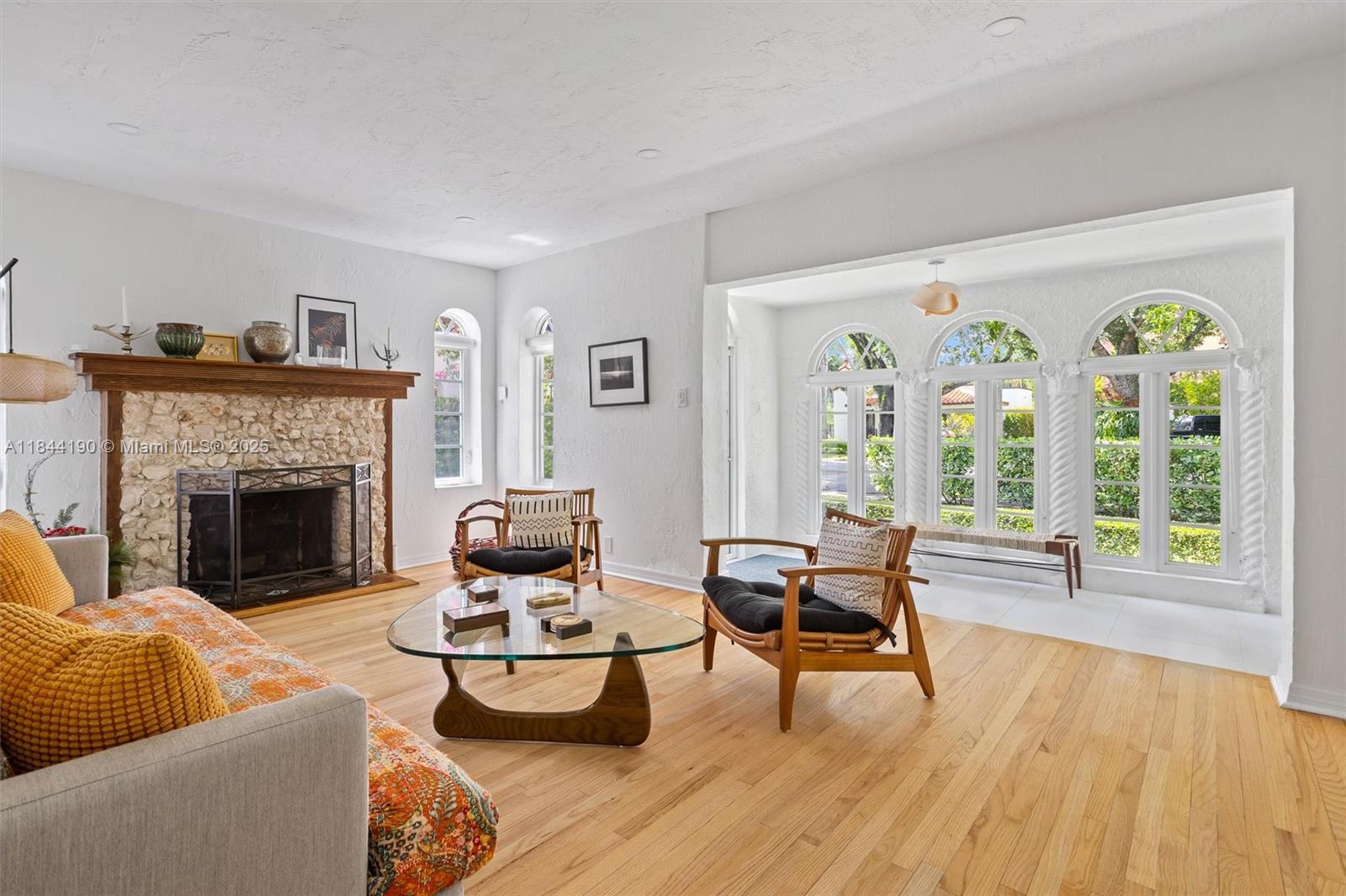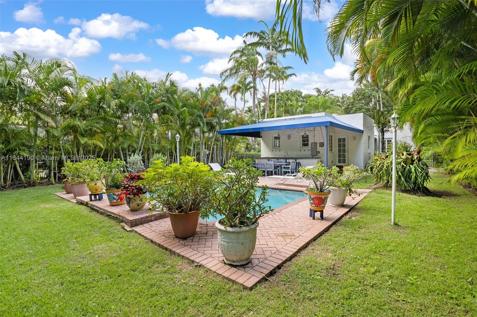 This charming Old Spanish home in Coral Gables was built in 1926 and features original wood floors, arched walls, and a fireplace that highlight its historic character. Modern updates include new bathrooms, custom closets, a comfortable family room, and upgraded impact windows and doors installed in 2024—blending classic style with today’s comforts. The backyard offers a brick patio, a spacious covered bar, and a tranquil pool surrounded by lush landscaping. The lot is larger than most at 50 by 150 feet, providing extra space and privacy. Conveniently located near Coral Gables’ Restaurant Row and Miracle Mile, with easy access to some of the city’s best dining, shopping, and entertainment.