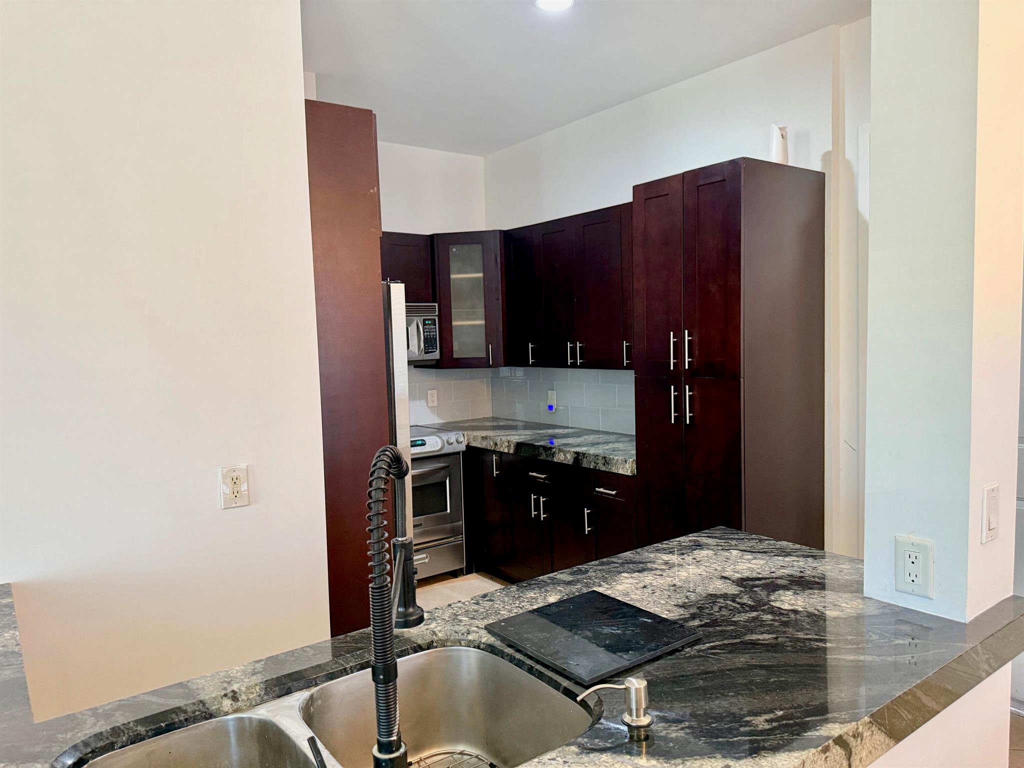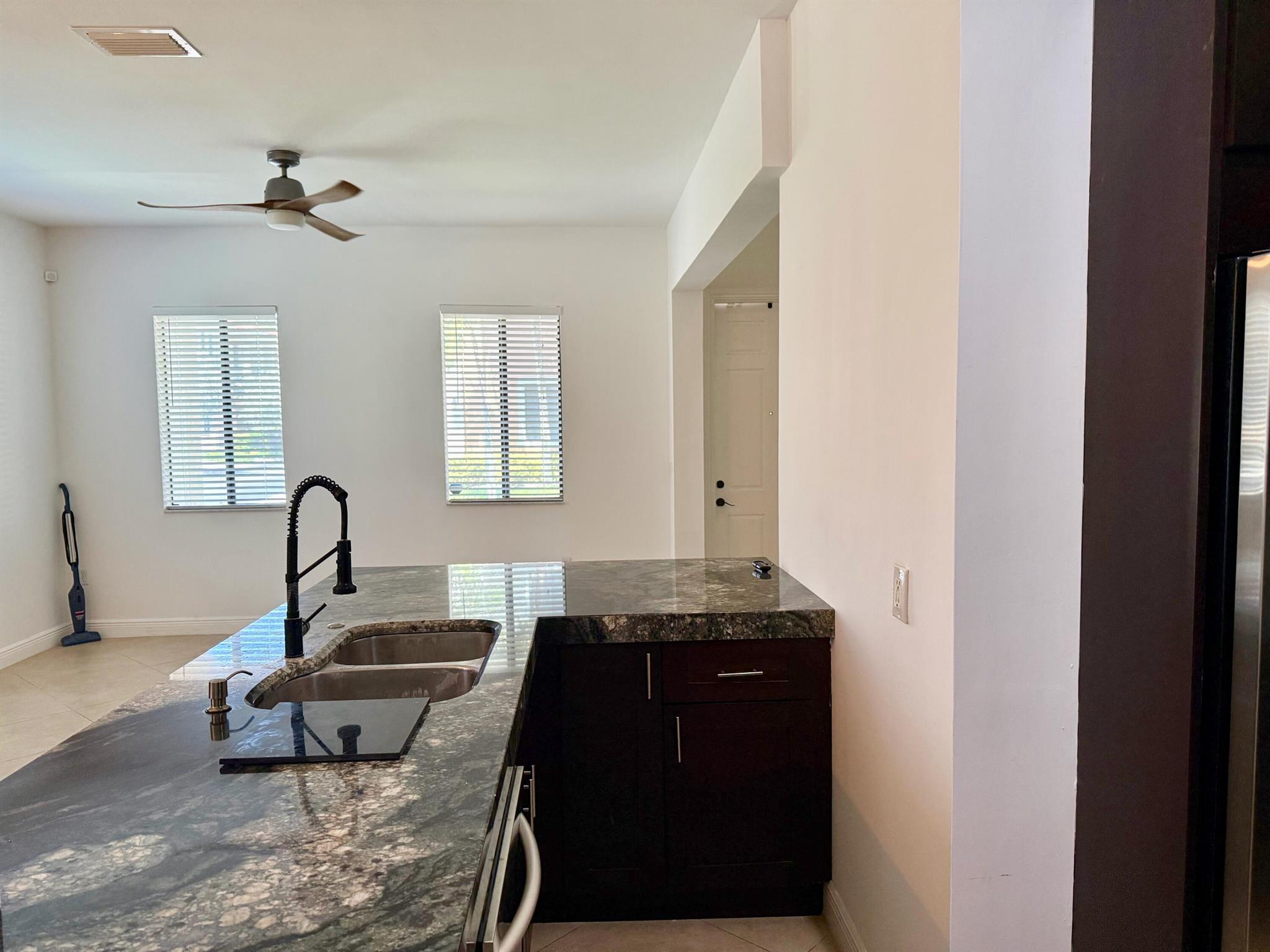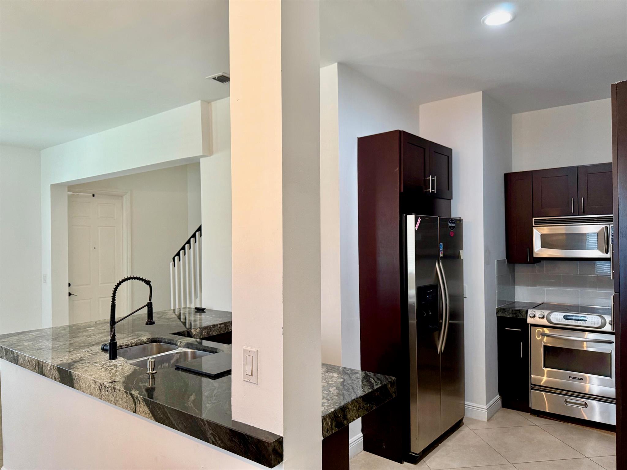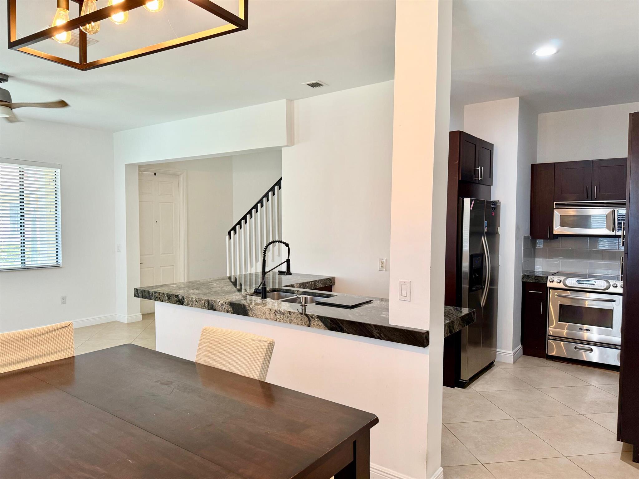 RARE - Potentially Assumable FHA Loan ** Welcome to this beautiful CORNER 3 bedroom, 2.5 bath townhouse in gated PET FRIENDLY Venetian Villas. The renovated kitchen has been opened to the living & dining areas, stainless steel Kitchen Aid Appliances, and exotic granite counters. Tile floors on 1st level and engineered wood floors on 2nd level. Large 2nd floor Landing/Loft area, Newer Water heater and Carrier A/C. Separate laundry room is upstairs. The primary bedroom has a private balcony (with views to pool), 2 walk-in closets. High ceilings (10ft), spacious 2 car garage. The HOA covers Cable TV, NEW Roof/Gutters installed (12/2024), convenient pool and lush landscaping. Well located community moments to all the shopping, restaurants and beaches, I95 and TPKE and close to downtown Delray