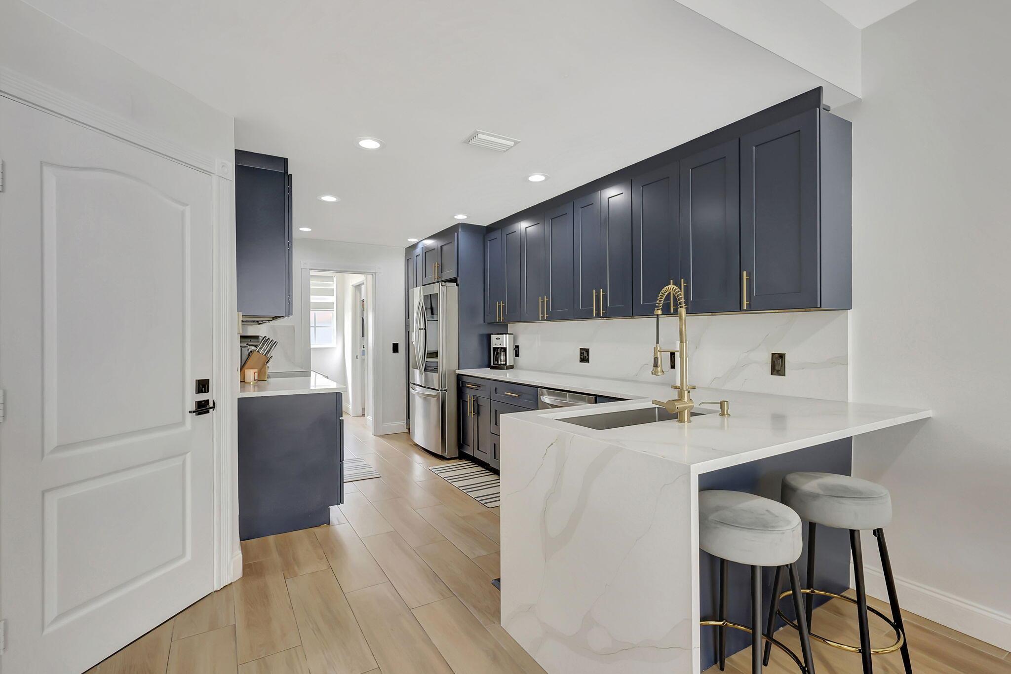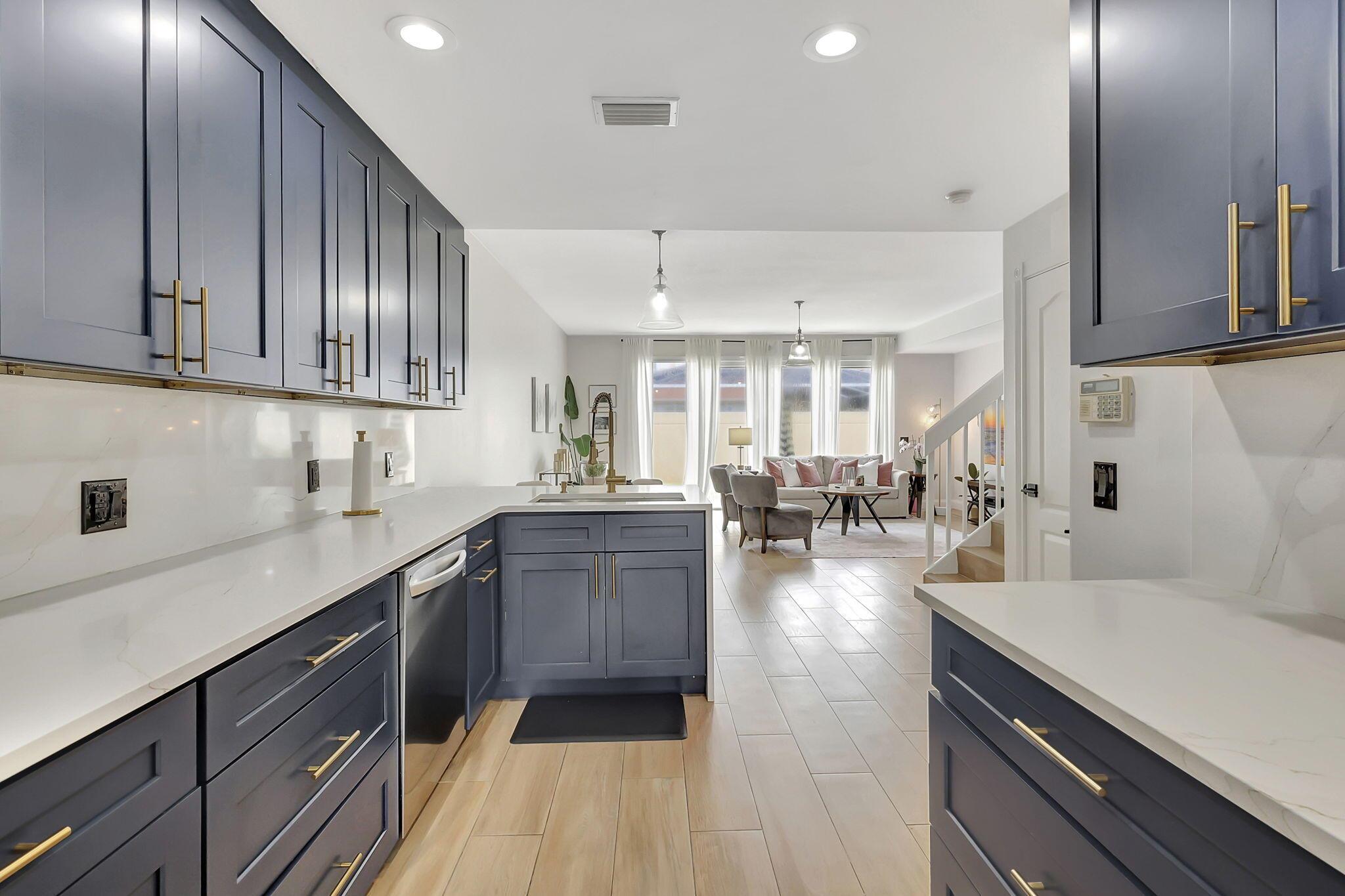 Beautifully updated 3 bedroom 2 bath townhouse with 1 car garage in Riverwalk in West Palm Beach! Wood-look tile floors throughout, gourmet kitchen with white marble countertops, fenced yard with open patio, custom lighting, all white paint, end unit that is full of light and bright. Community offers 3 pools, tennis, pickleball, gym, clubhouse space, walking paths and more. HOA fee includes internet and WiFi! Quick access to I95, Turnpike, Palm Beach Airport the areas best beaches. A short drive to lively downtown West Palm Beach, Palm Beach Island, great restaurants. See it today! AC is 2018.
