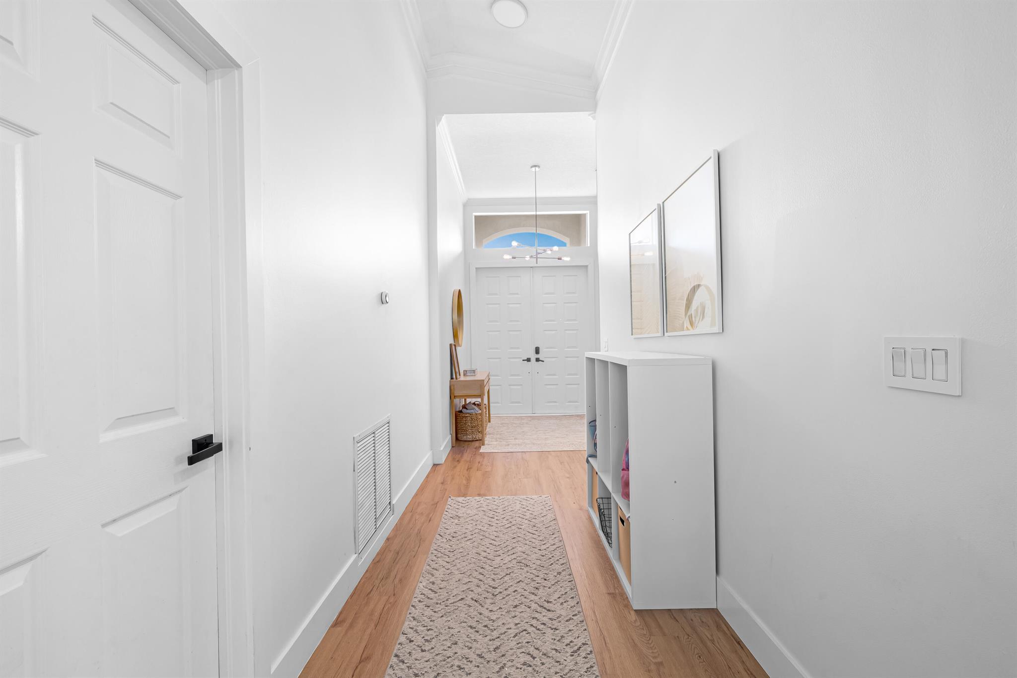 Check out one of the rarely available fully remodeled 3 bed 2 bath single story home in the community of Andros Isle. This CBS home features an open concept living and split floor plan. The kitchen features white cabinetry, quartz counters, and newer stainless steel appliances. Vinyl plank flooring runs seamlessly throughout the home. The primary bedroom has two custom built walk in closets. Impact windows and shutters provide complete protection from storms. The 2 stall garage features a FPL EV Charger. Enjoy the screened in patio recently screened with a special no- see-em screening with views of the 23 mile grassy waters preserve. This home is located close to shops and dining such as Target, Starbucks, Bimini Twist and more.