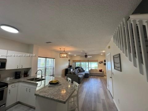 MOTIVATED SELLER!! Gorgeous CORNER Townhouse, 3 Bedrooms and 2.5 Baths. Share a "Jack & Jill" bathroom with dual sinks. Backyard with peaceful lake views, one single covered garage with Automatic Door Opener. 1st floor and 2nd floor with laminate floors. Kitchen granite countertop, stainless steel appliances. Partial Accordion Shutters. Pelican Pointe is a gated community that is conveniently located near shopping Mall, restaurants, Supermarket, parks.