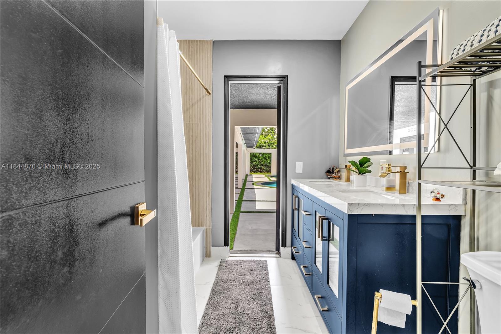 A MUST SEE!!! Come and check out this beautifully renovated home in a quiet neighborhood with A+ schools and NO HOA! Entering this gorgeous 4 bed 4.5 bath home you will find an open floor plan. This pool home has a gorgeous back yard and walk-in laundry room with TWO washers and dryers! The kitchen is updated with quartz counter tops, stainless steel appliances, and new soft close cabinets. The AC, electrical, and flat roof were all replaced in 2024! This home also has new PVC piping as well as new flooring and all updated bathrooms. There is a 2 car garage and automatic sprinkler system. This home also features a circle drive way and long drive way that can fit up to 8 cars.